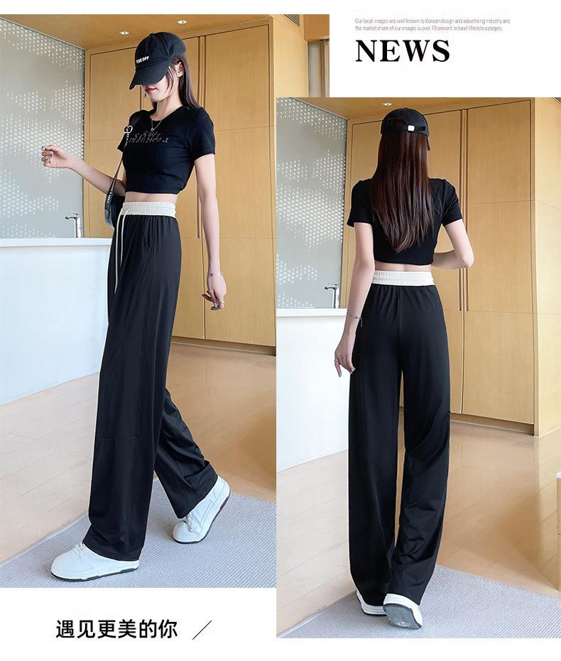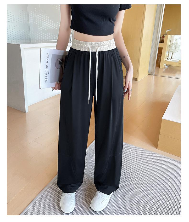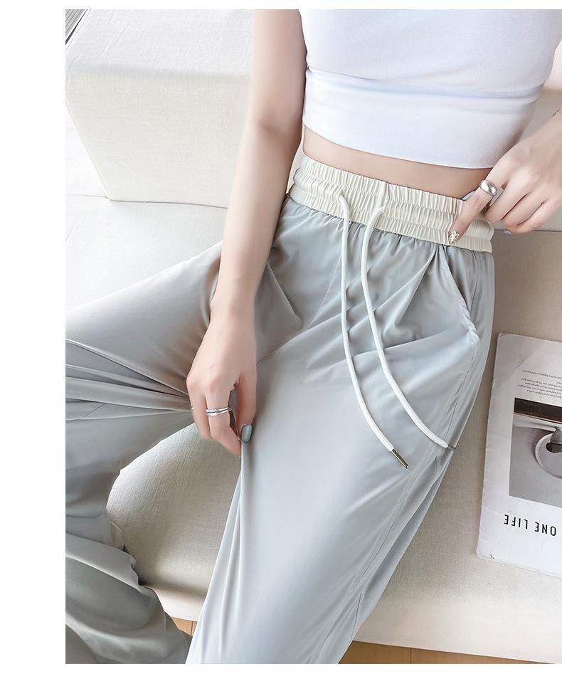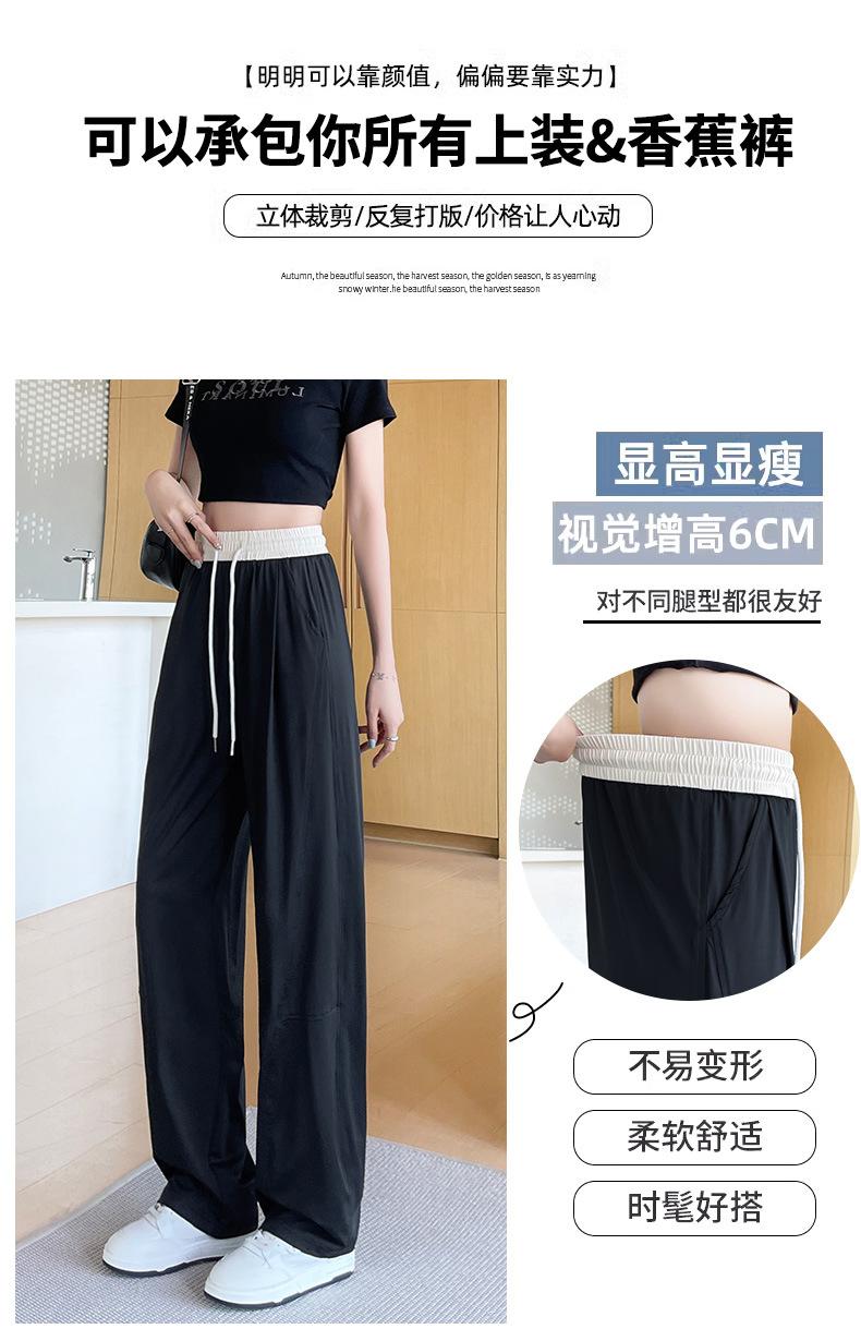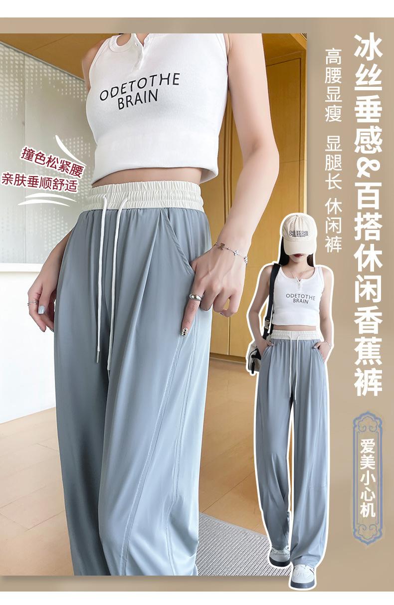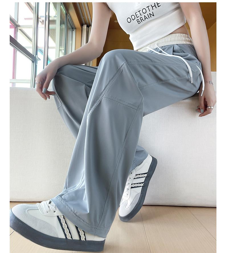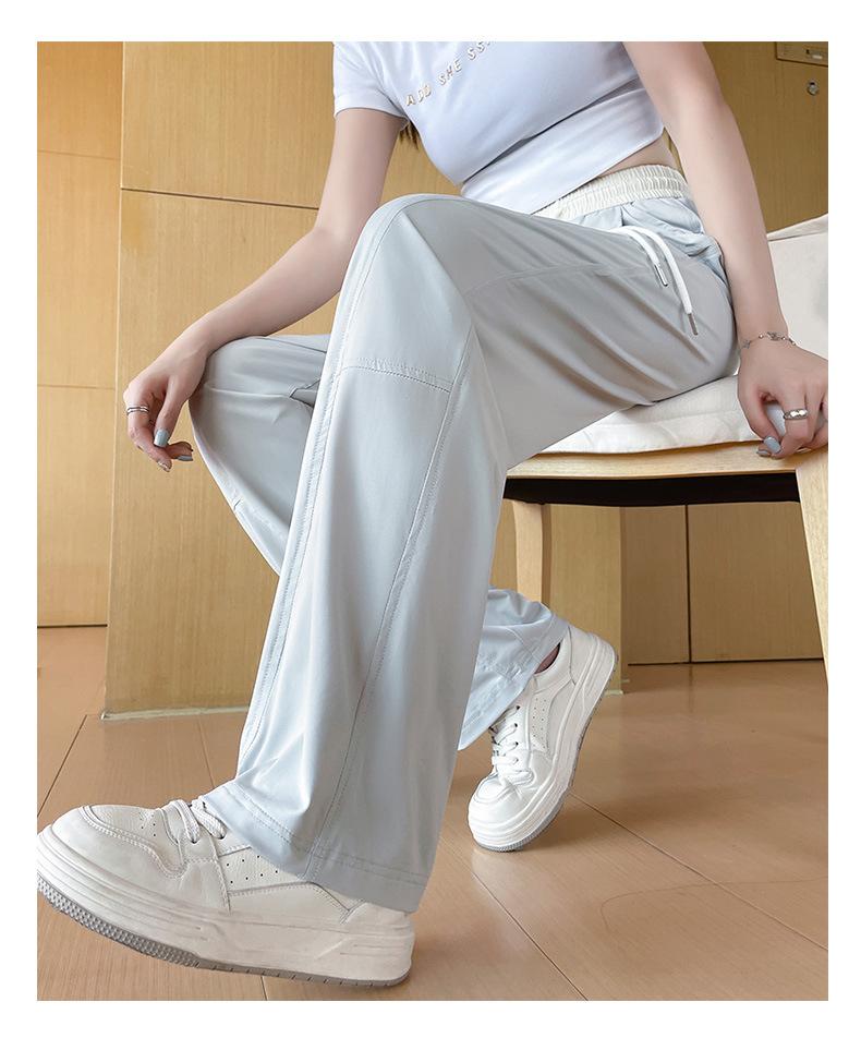 Pantalones de Pierna Ancha de Seda Helada Fresca y Fina de Verano para Mujer Protección Solar Casual Sueltos Drapeados Mascarilla Pantalones Rectos 2025 Nuevo Estilo