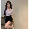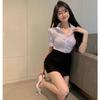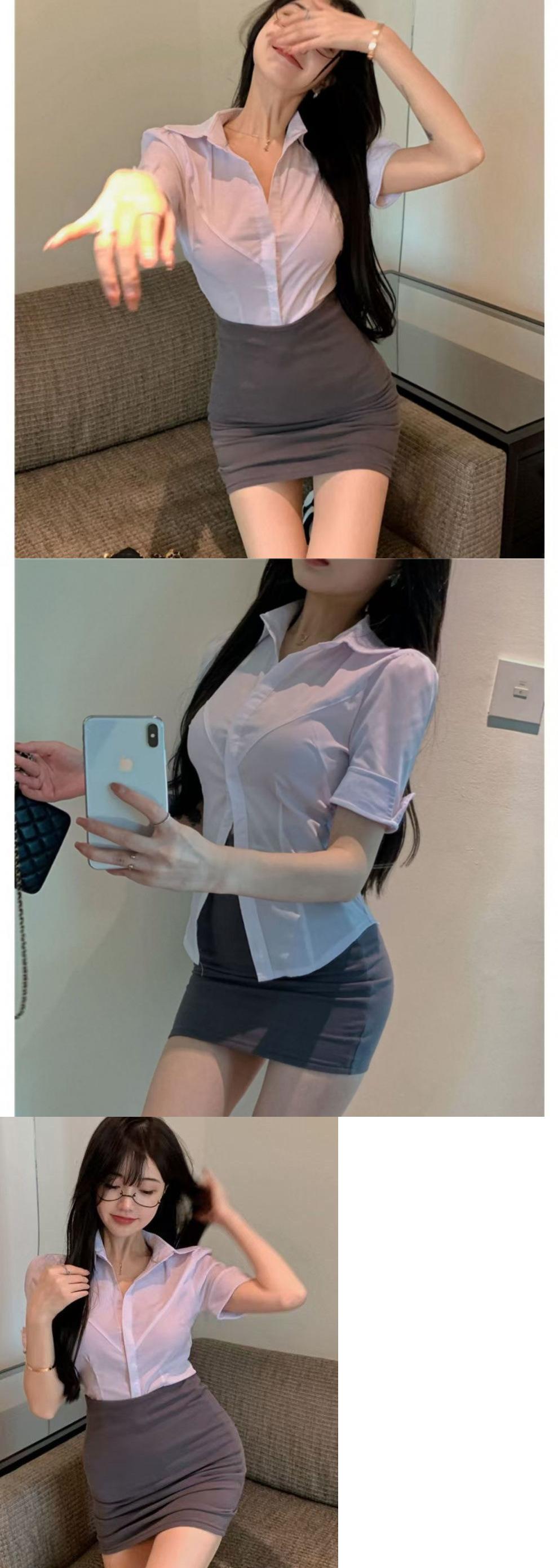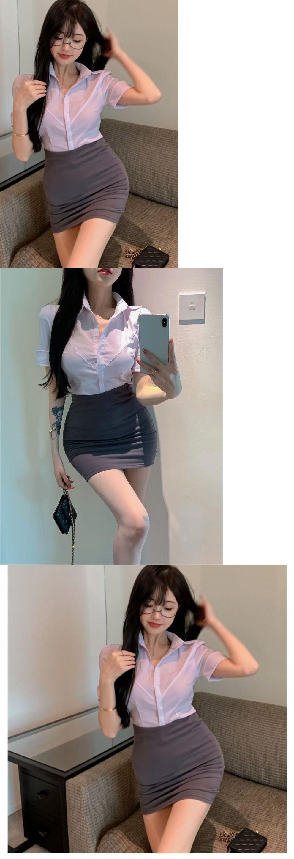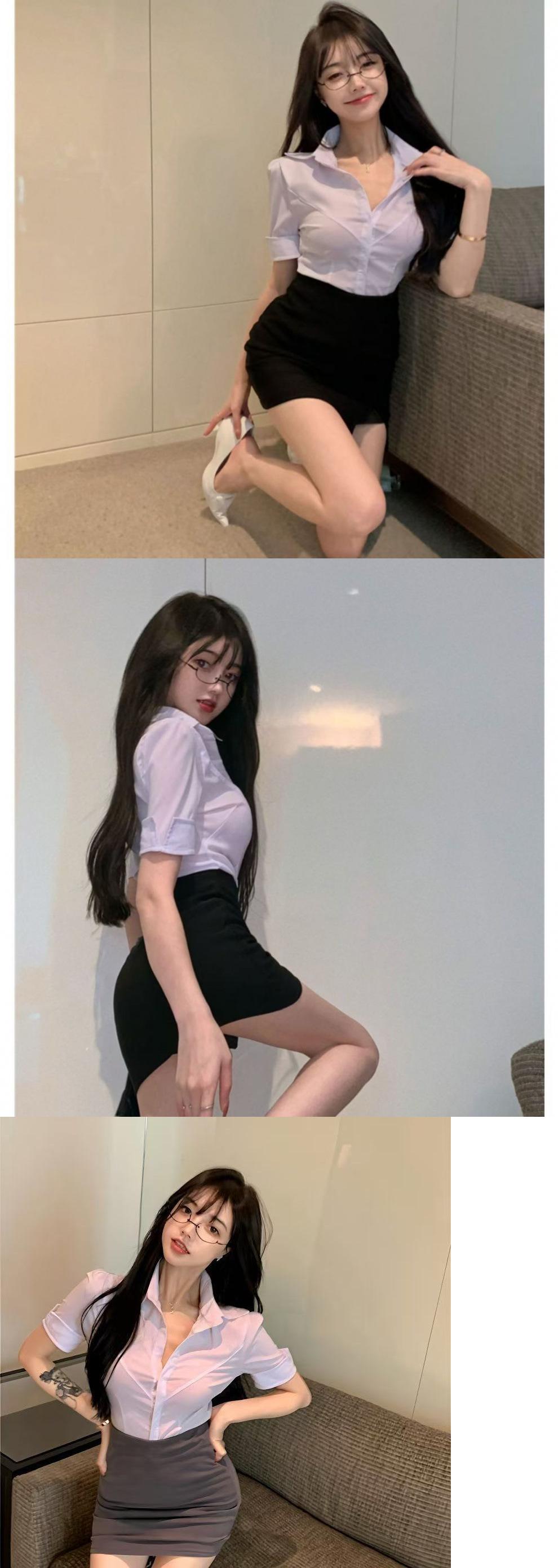 Black skirt, Gray skirt, Black skirt + white shirt, Gray skirt + white shirt, White shirt