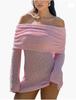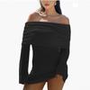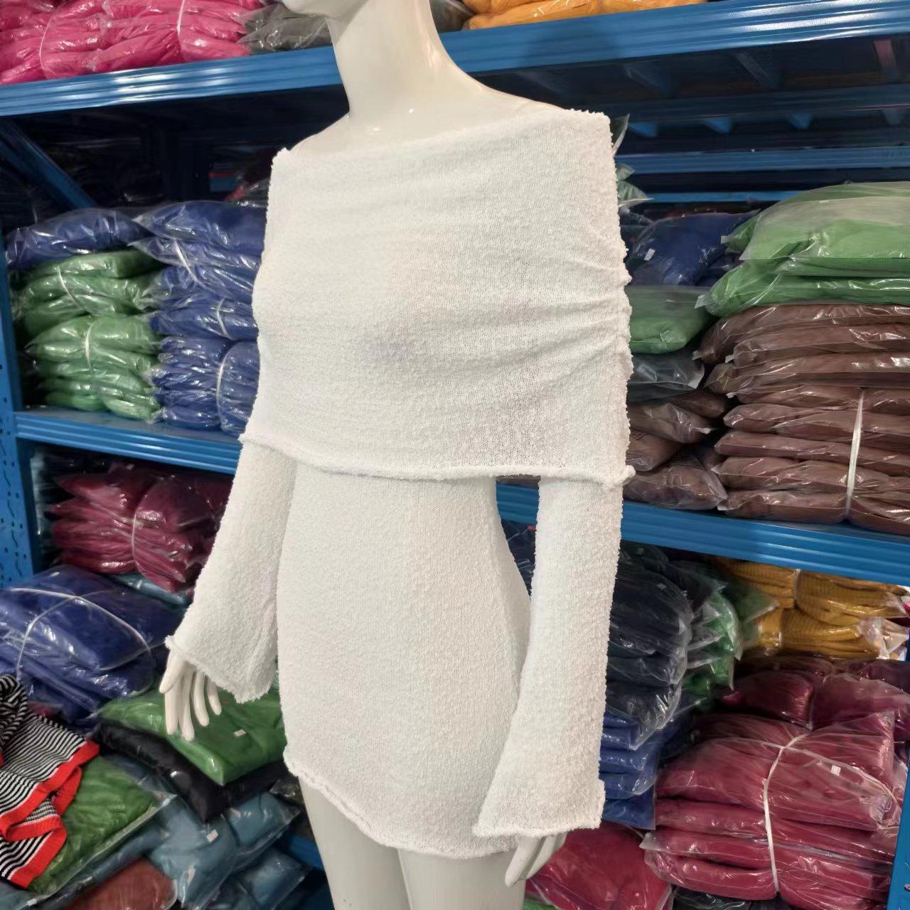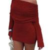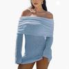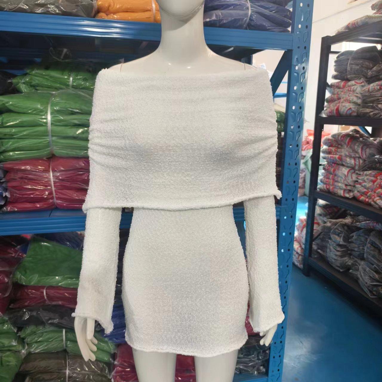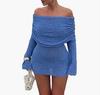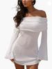 2025 Nuevo Vestido Corto de Playa para Mujer de Punto Europeo y Americano Transfronterizo Vestido Sexy Transparente de Manga Larga con Hombros Descubiertos
