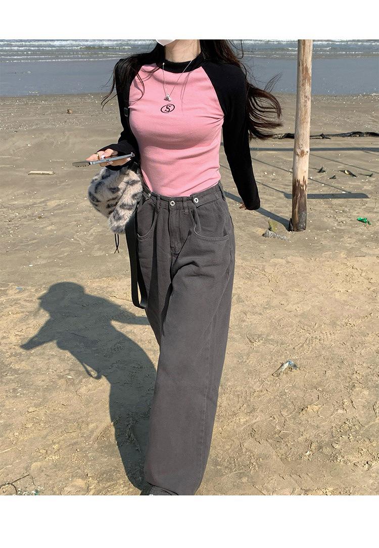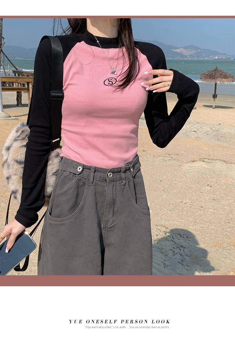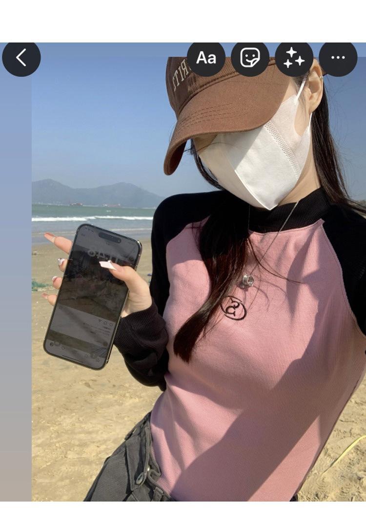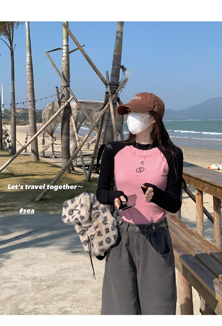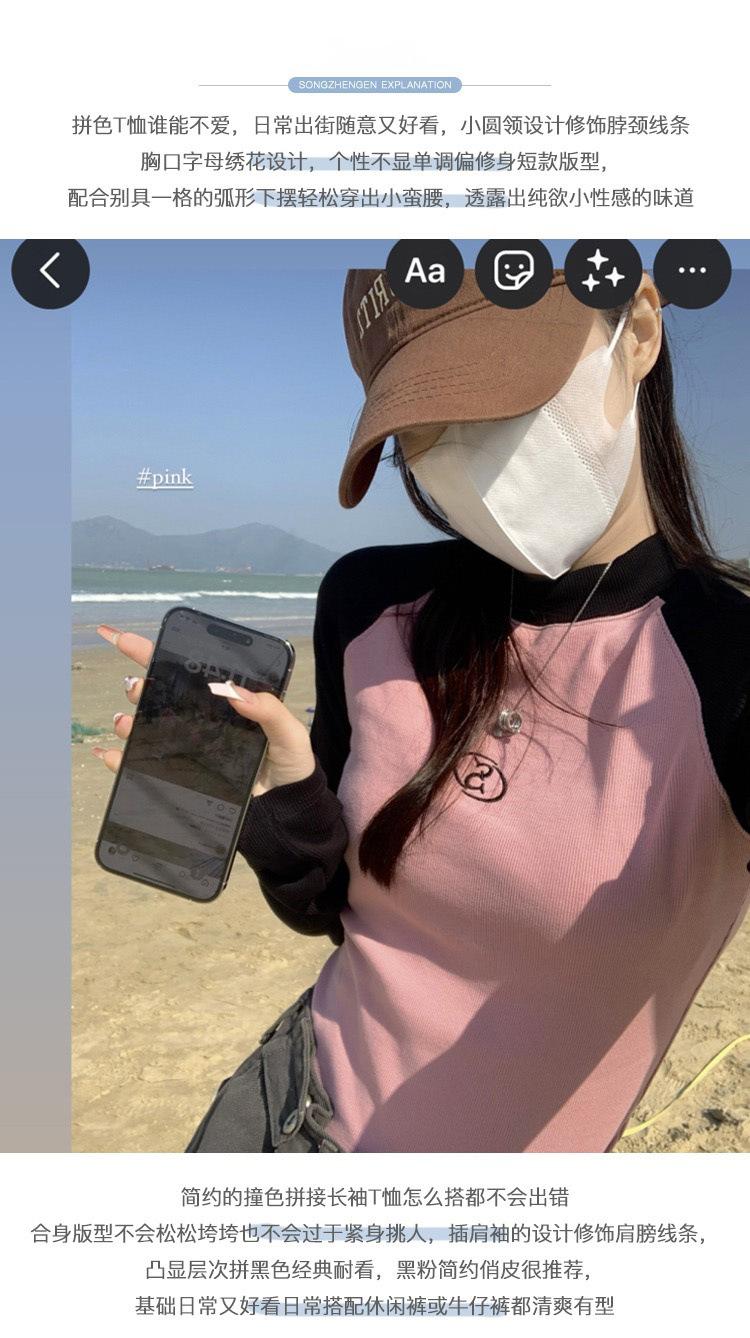 Playera de Algodón Puro de Manga Larga para Mujer Primavera y Otoño Ropa Exterior 2025 Nuevo Estilo Camiseta Base Ropa Interior Top Manga Raglán Chica Americana Hot