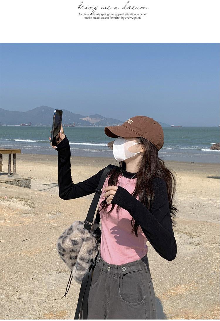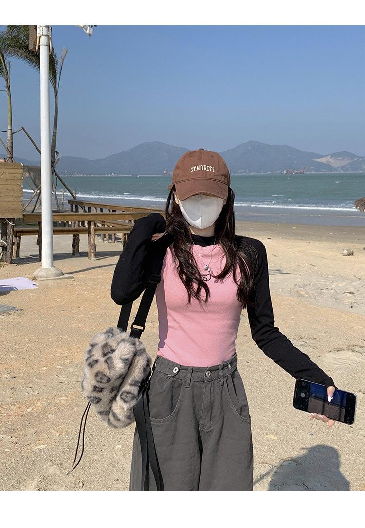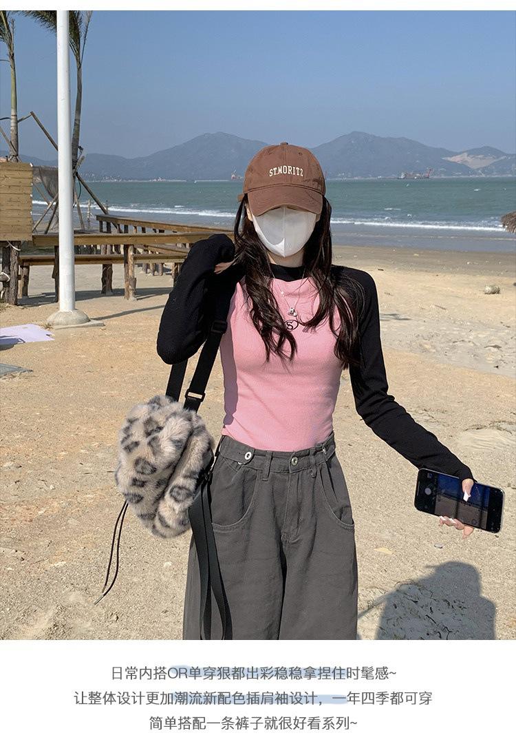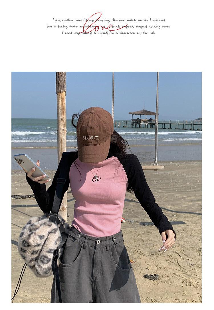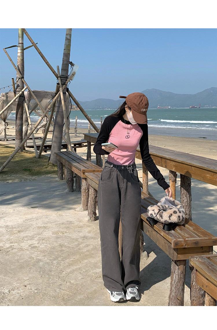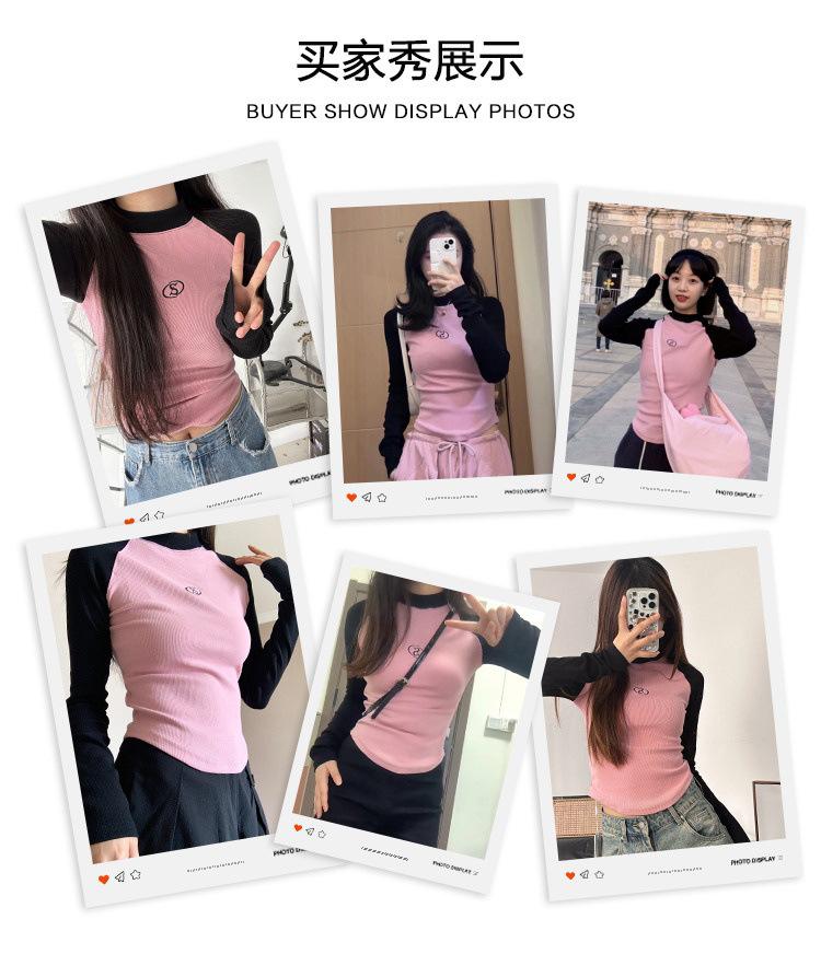 Playera de Algodón Puro de Manga Larga para Mujer Primavera y Otoño Ropa Exterior 2025 Nuevo Estilo Camiseta Base Ropa Interior Top Manga Raglán Chica Americana Hot