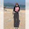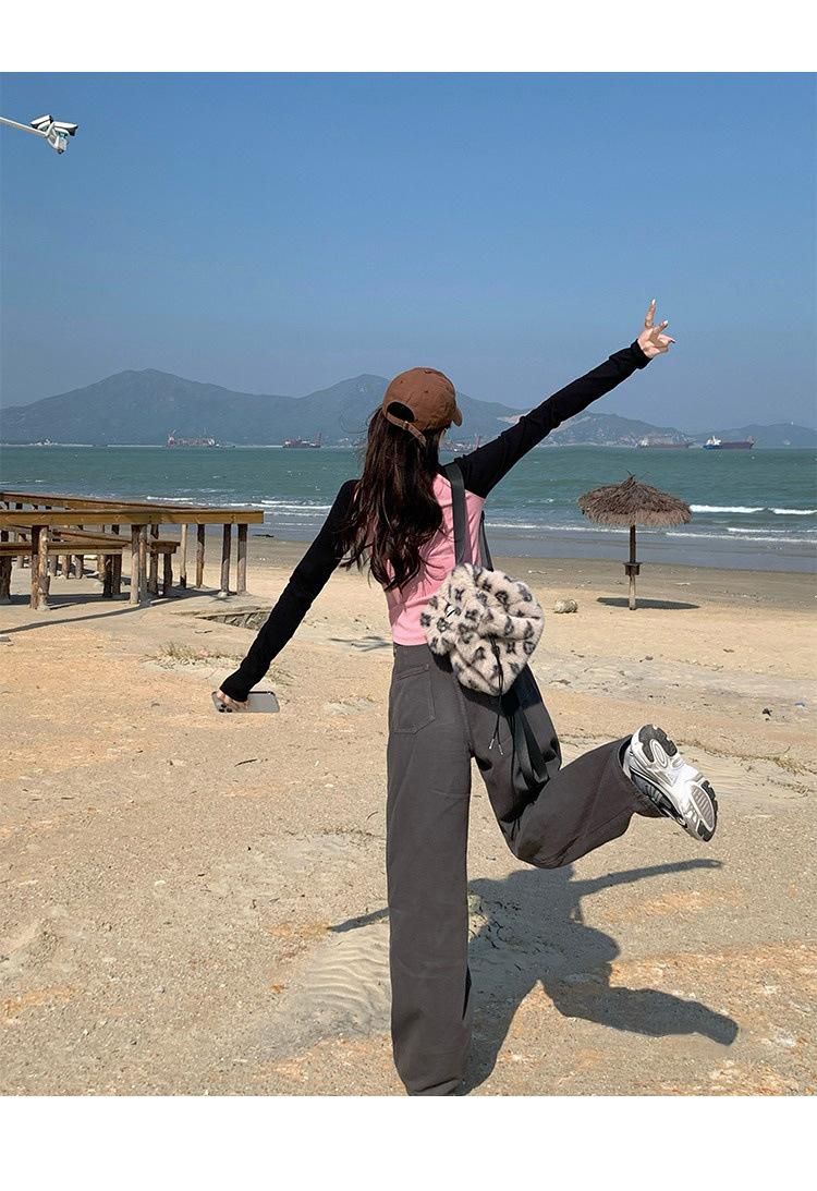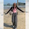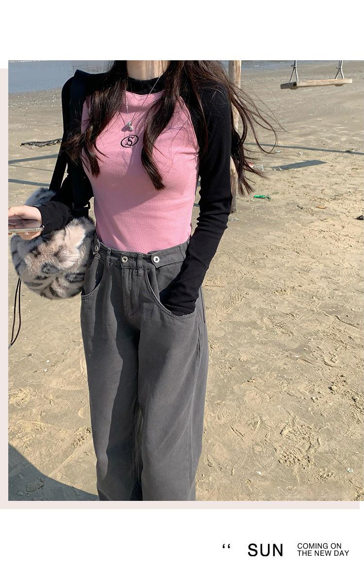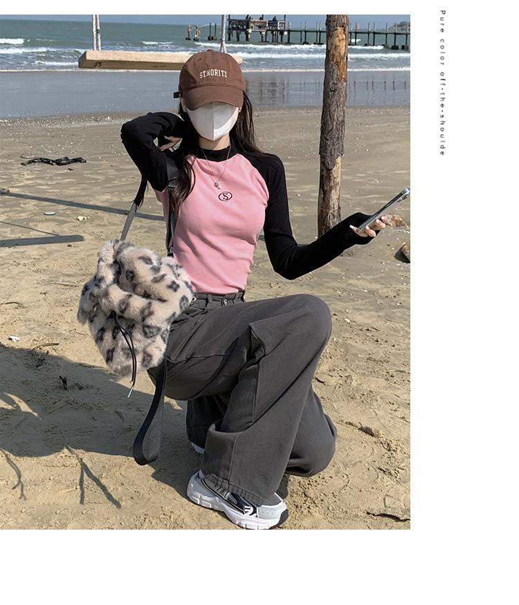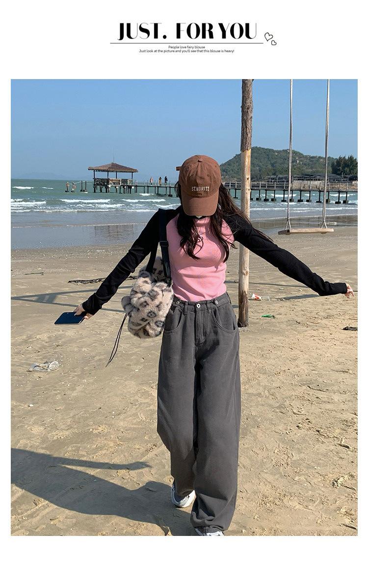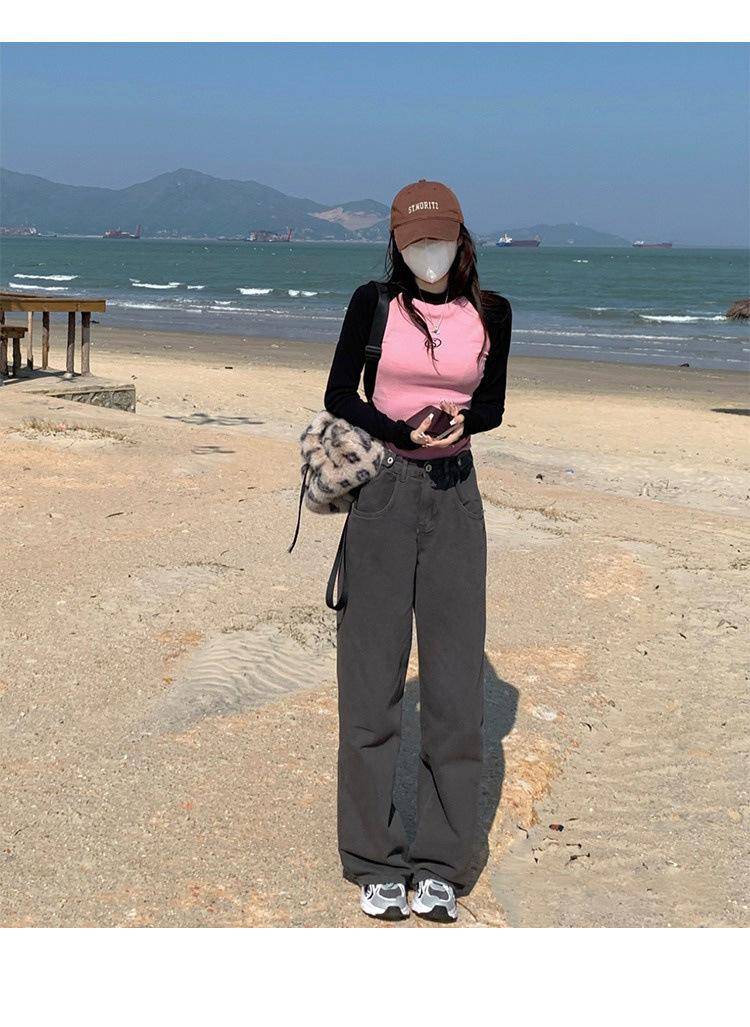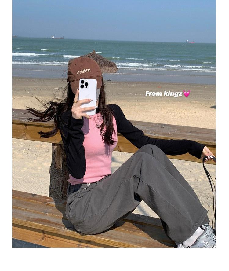Playera de Algodón Puro de Manga Larga para Mujer Primavera y Otoño Ropa Exterior 2025 Nuevo Estilo Camiseta Base Ropa Interior Top Manga Raglán Chica Americana Hot