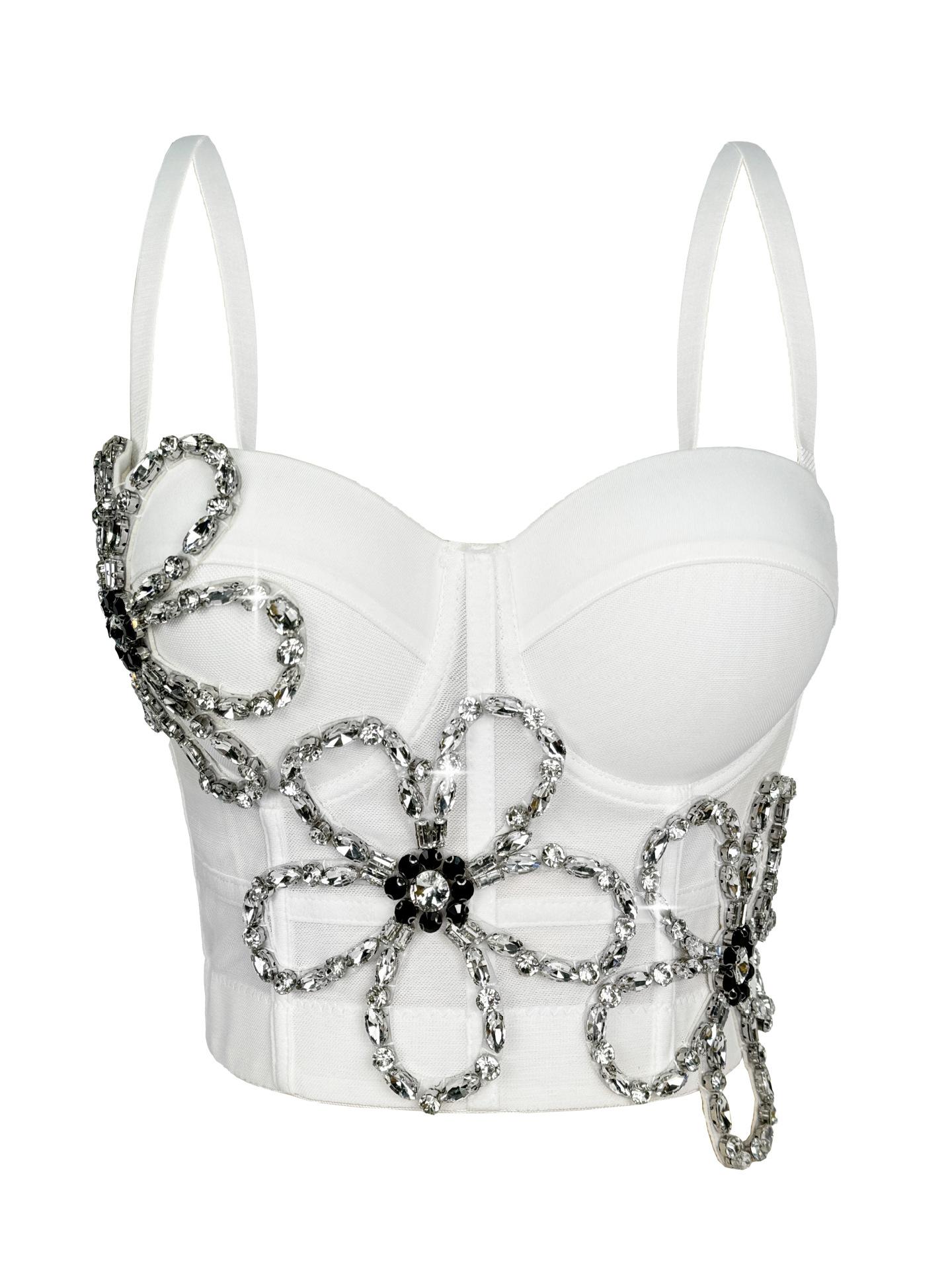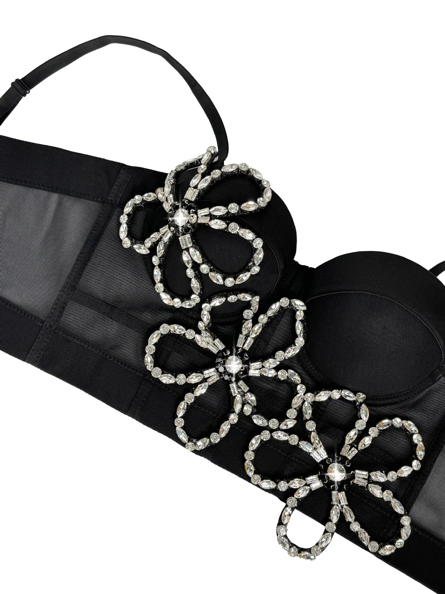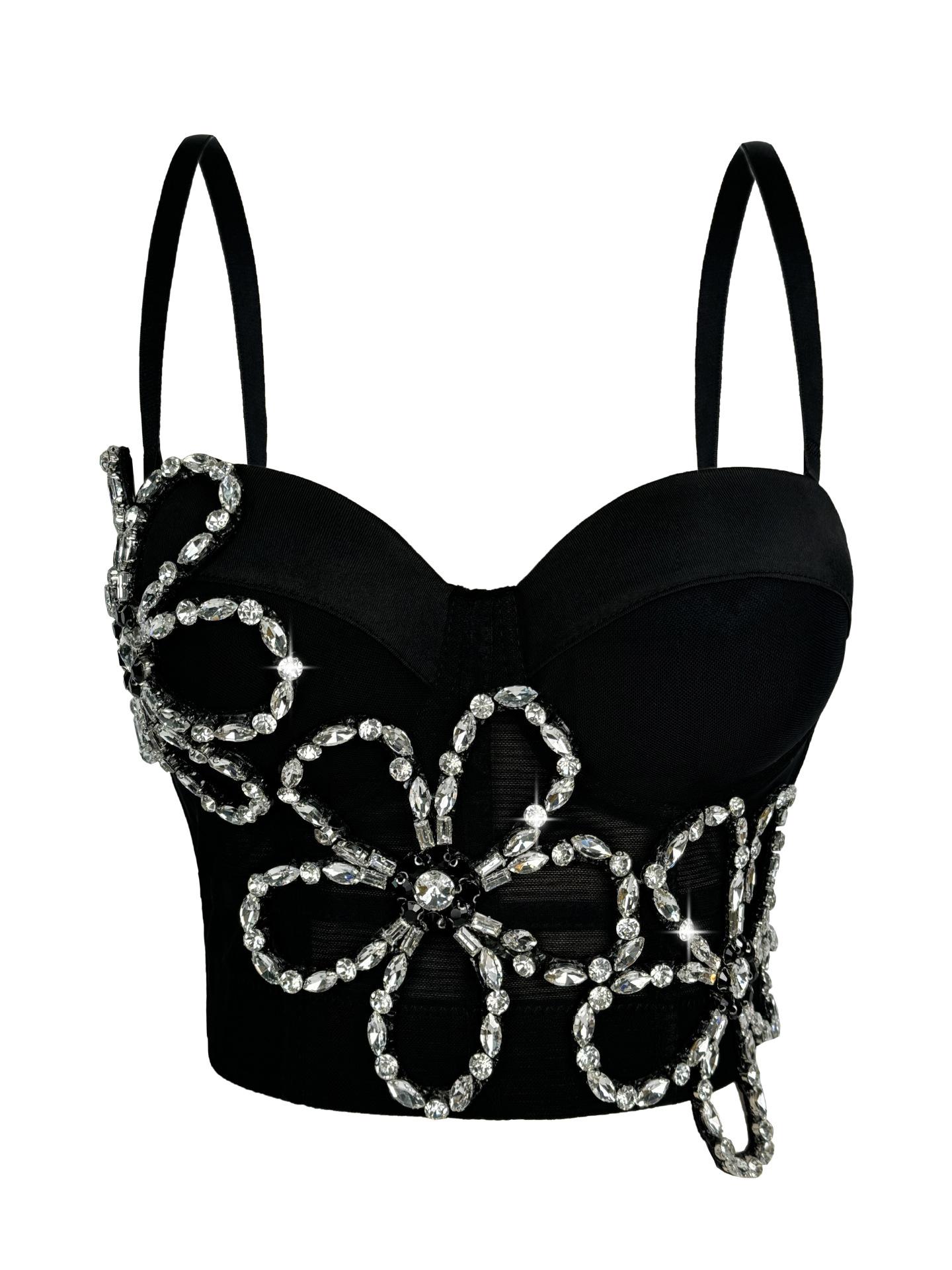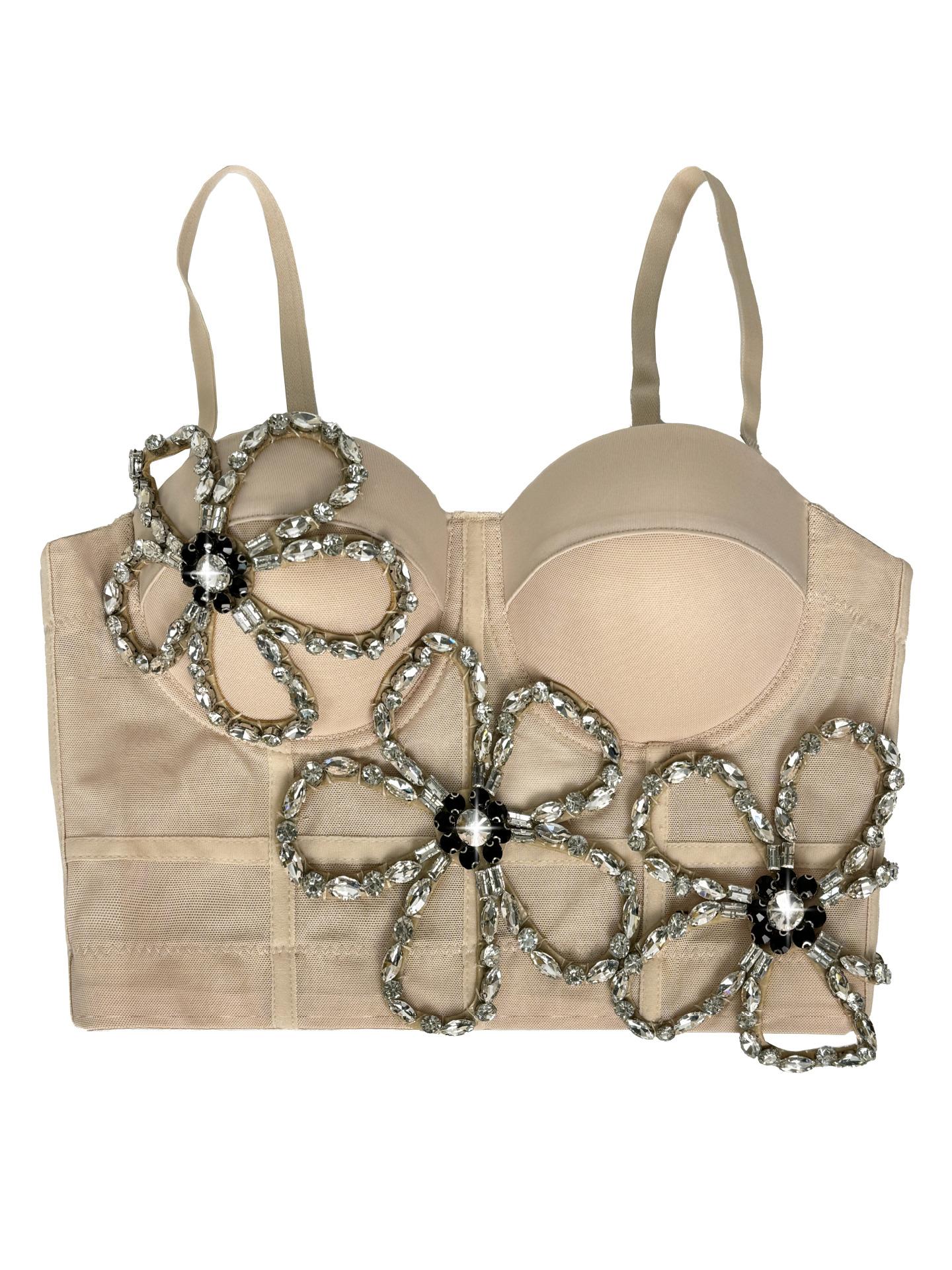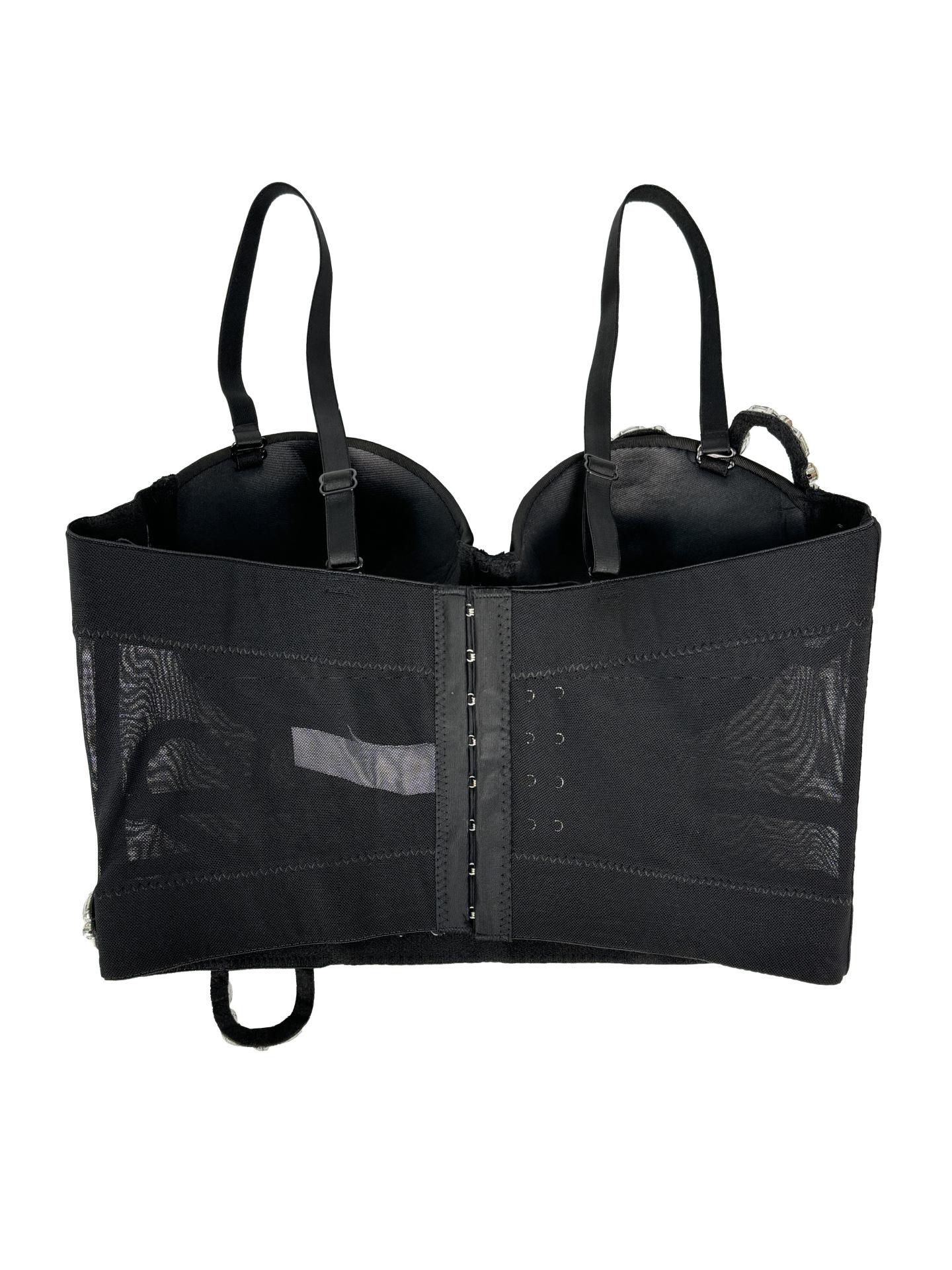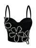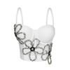 Nuevo corsé de espina de pescado con flores de diamantes transfronterizo con copas acolchadas, prenda exterior, camisola ajustada, top de espina de pescado de malla semitransparente sin espalda