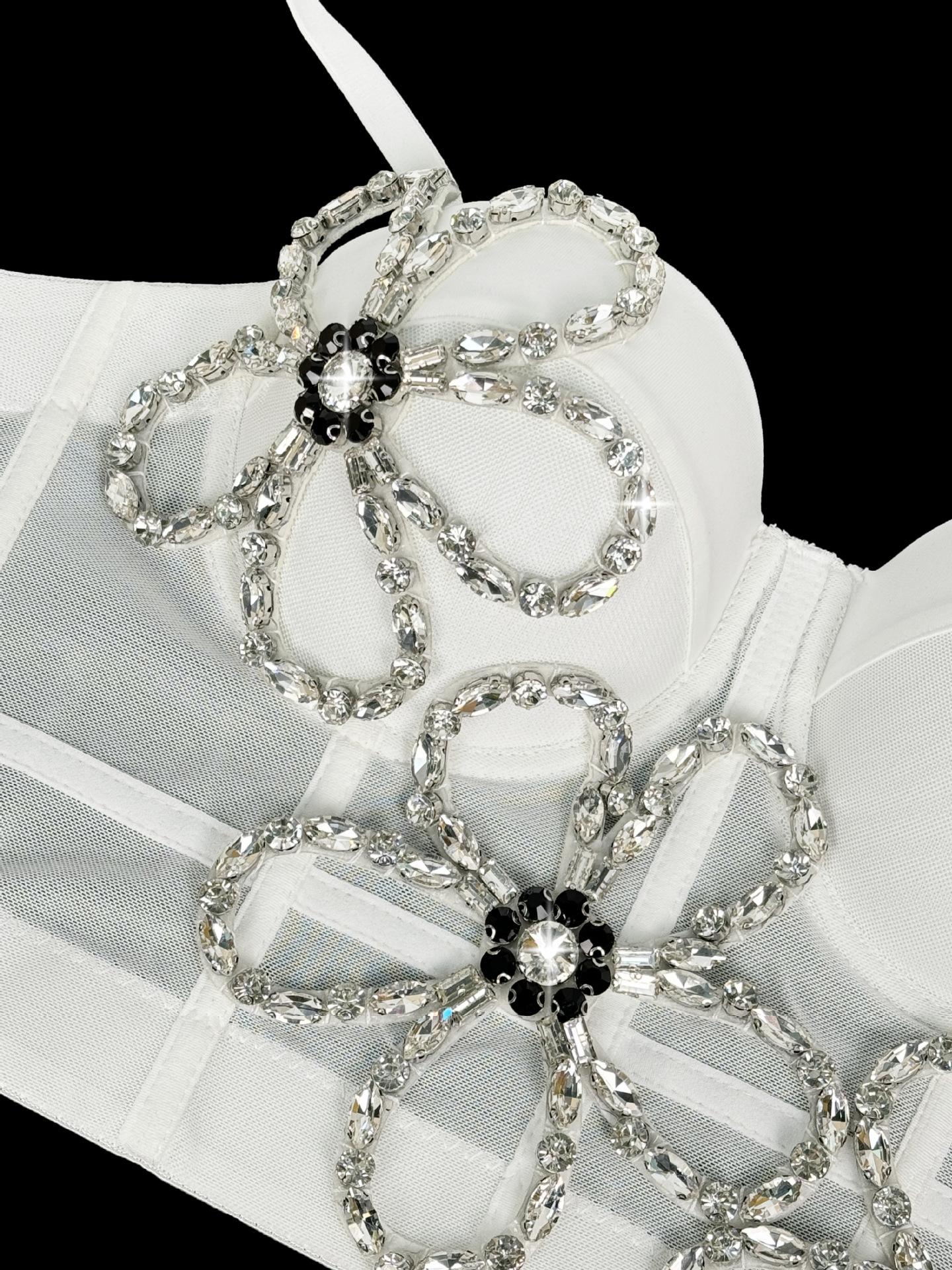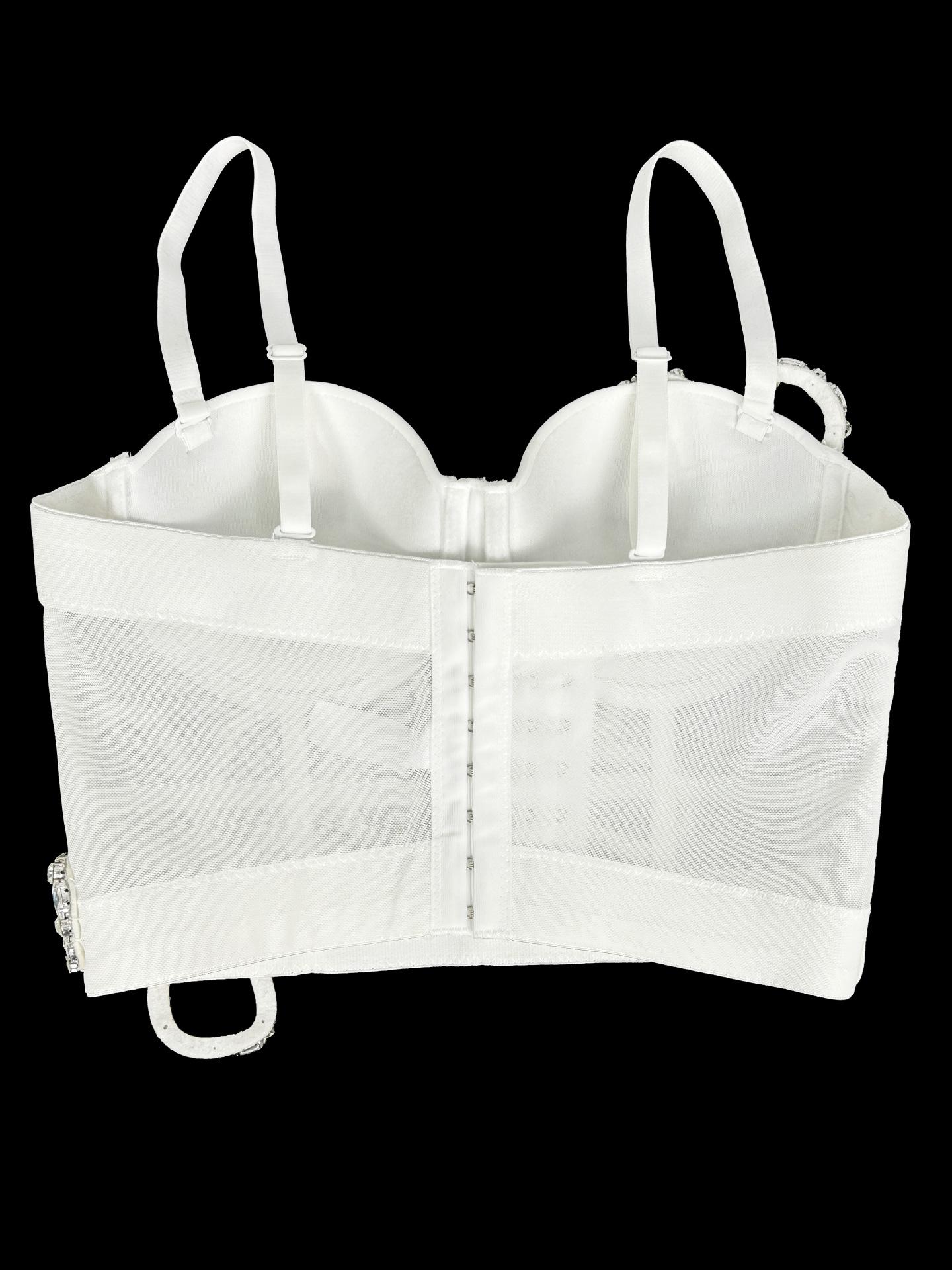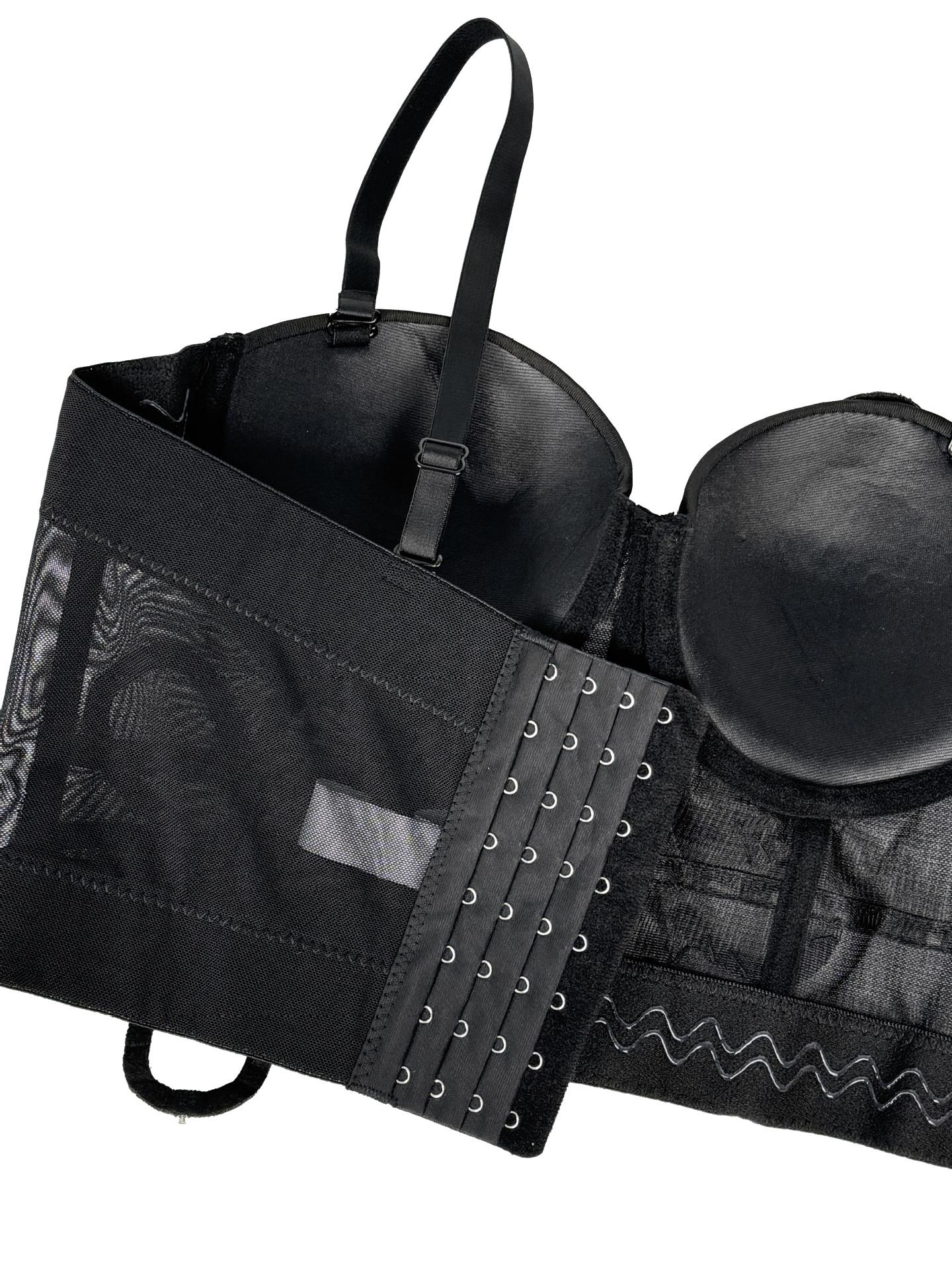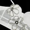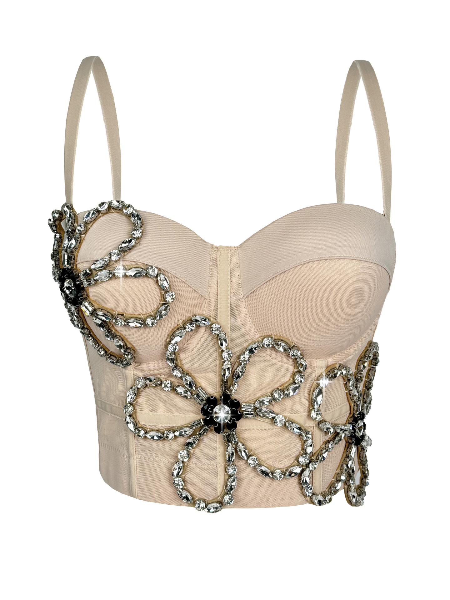Nuevo corsé de espina de pescado con flores de diamantes transfronterizo con copas acolchadas, prenda exterior, camisola ajustada, top de espina de pescado de malla semitransparente sin espalda