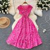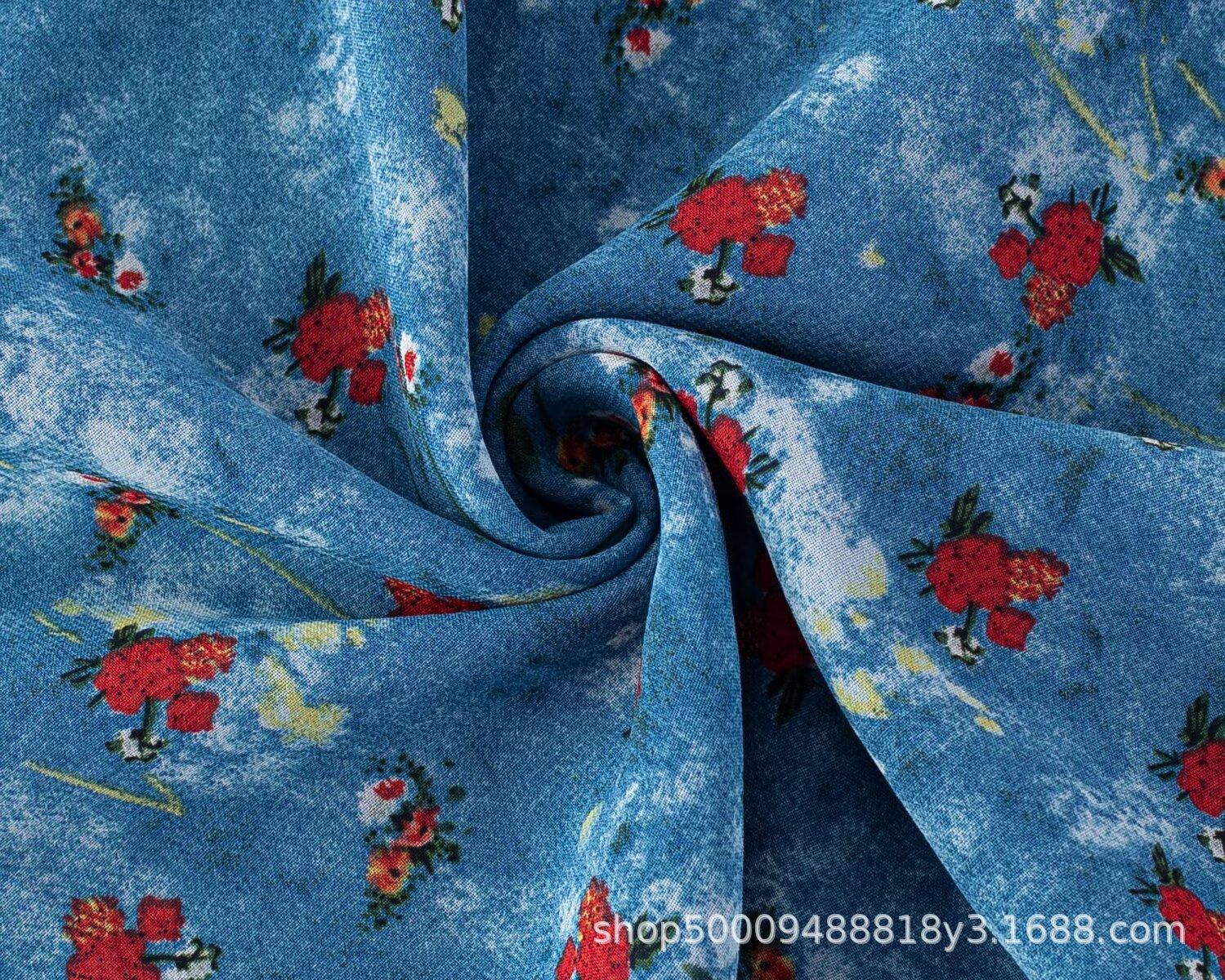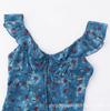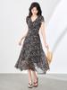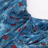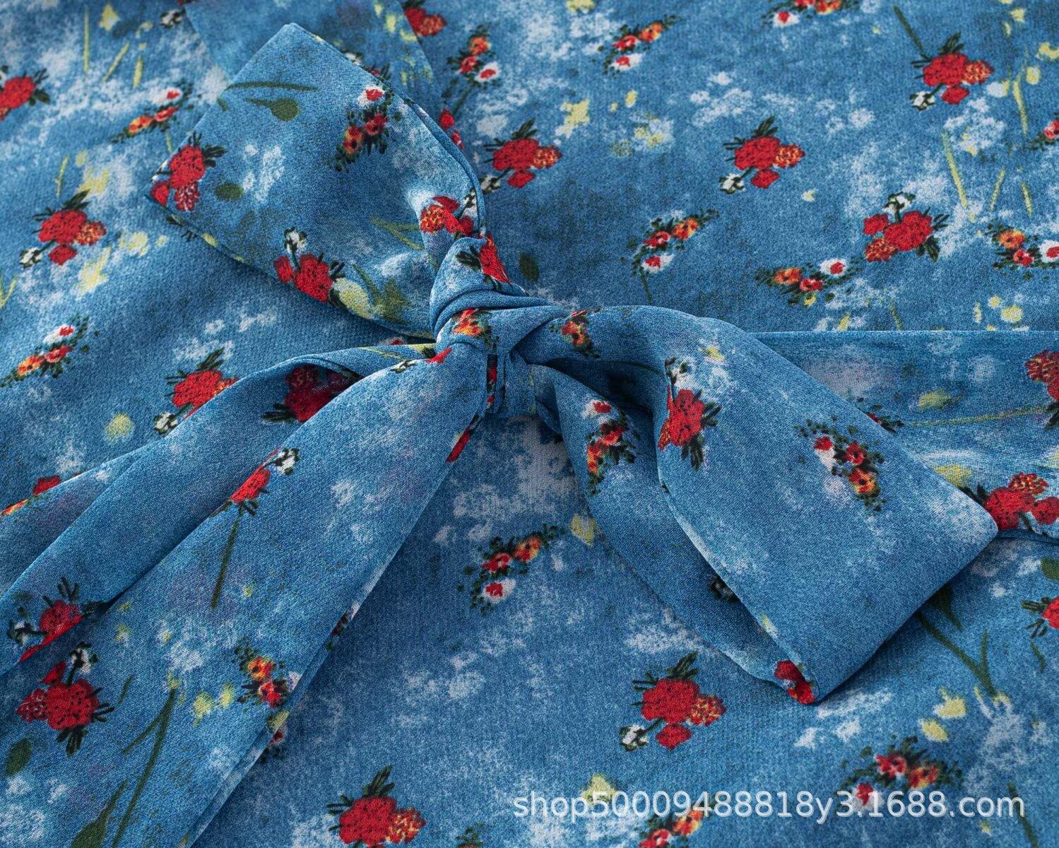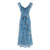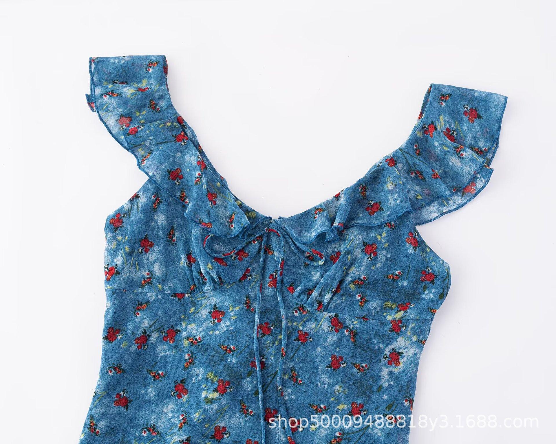 Vestido Azul Estilo Resort con Estampado y Cintura Fruncida para Mujer 2025 Nuevo Estilo Vestido Suave Cuello en V Francés Falda Larga