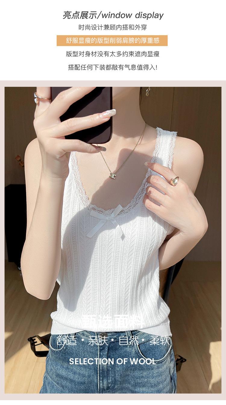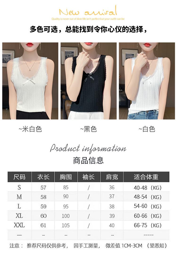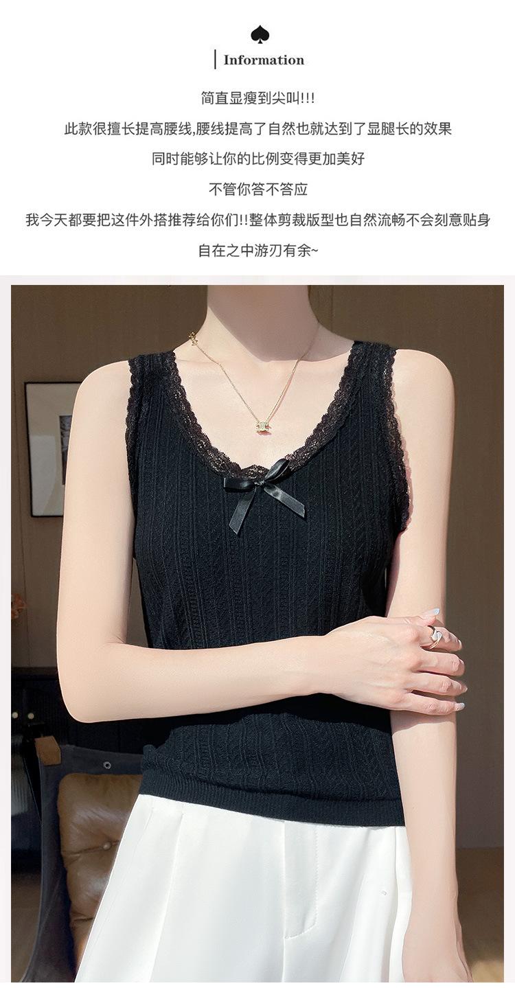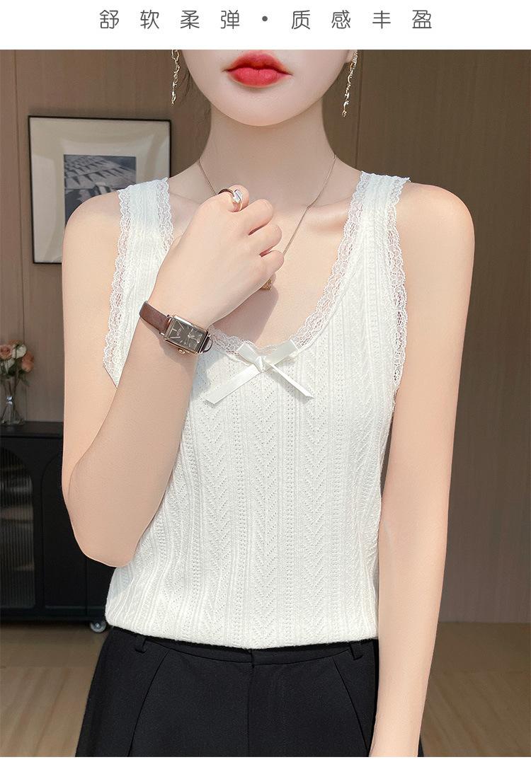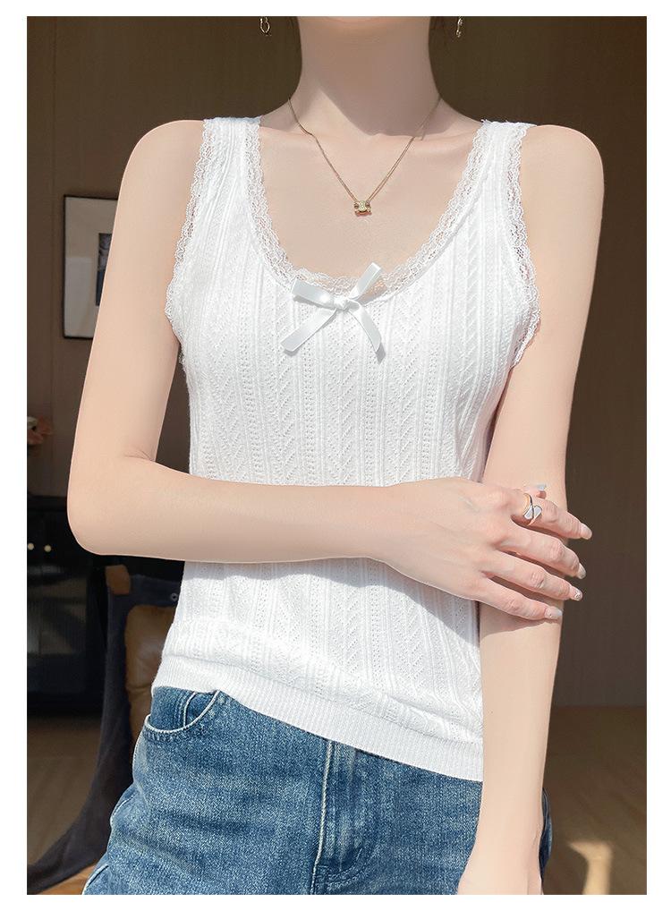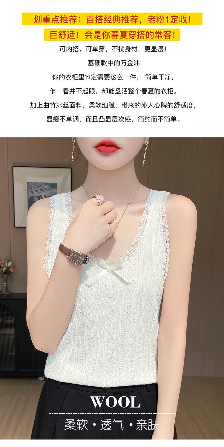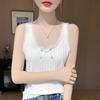 Primavera y Verano 2025 Nuevo Camisola de Encaje Calado de Seda de Hielo con Cuello U Hueco, Sin Mangas, Suelto, Top Pulóver