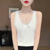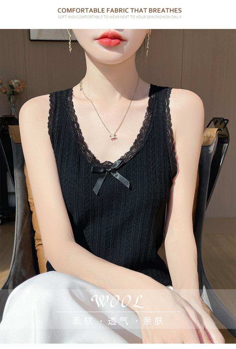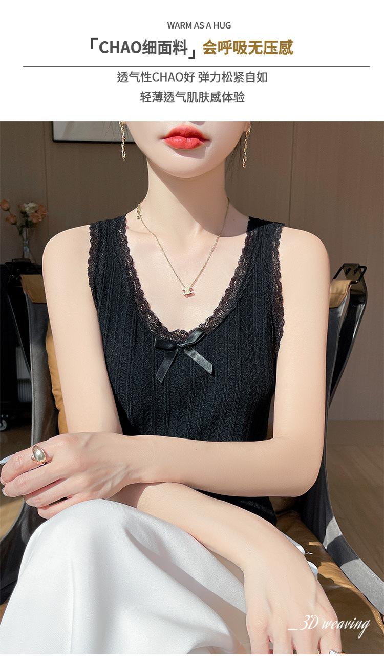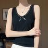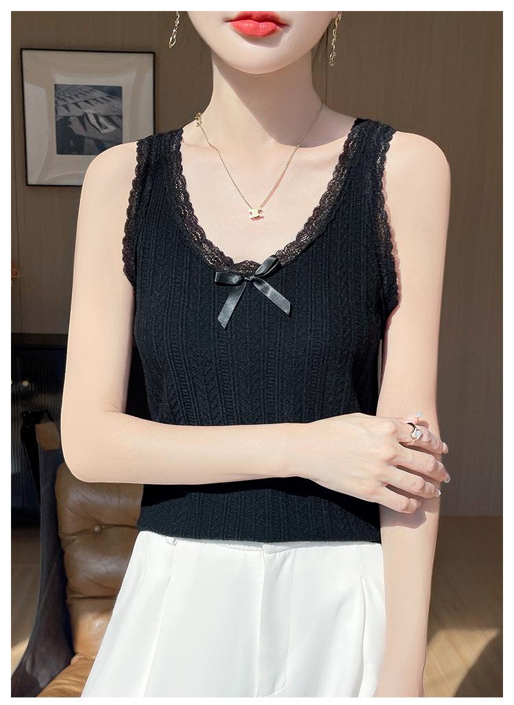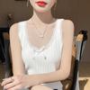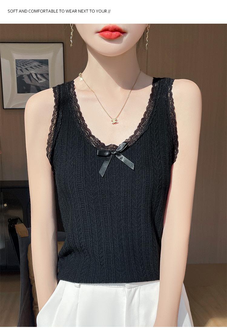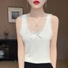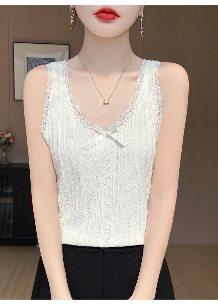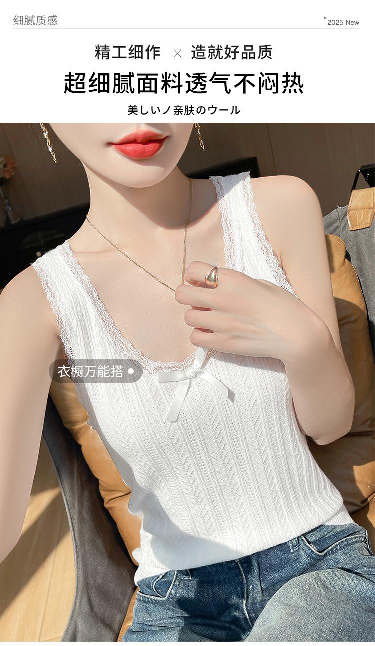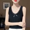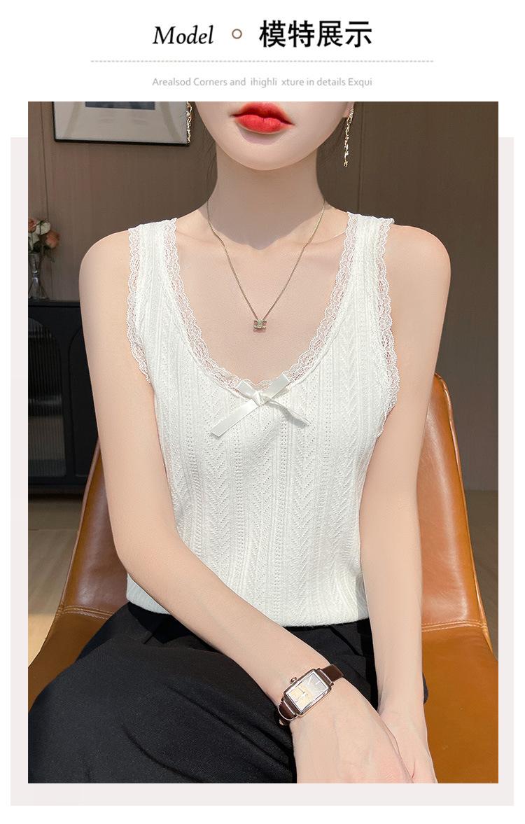 Primavera y Verano 2025 Nuevo Camisola de Encaje Calado de Seda de Hielo con Cuello U Hueco, Sin Mangas, Suelto, Top Pulóver