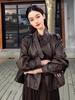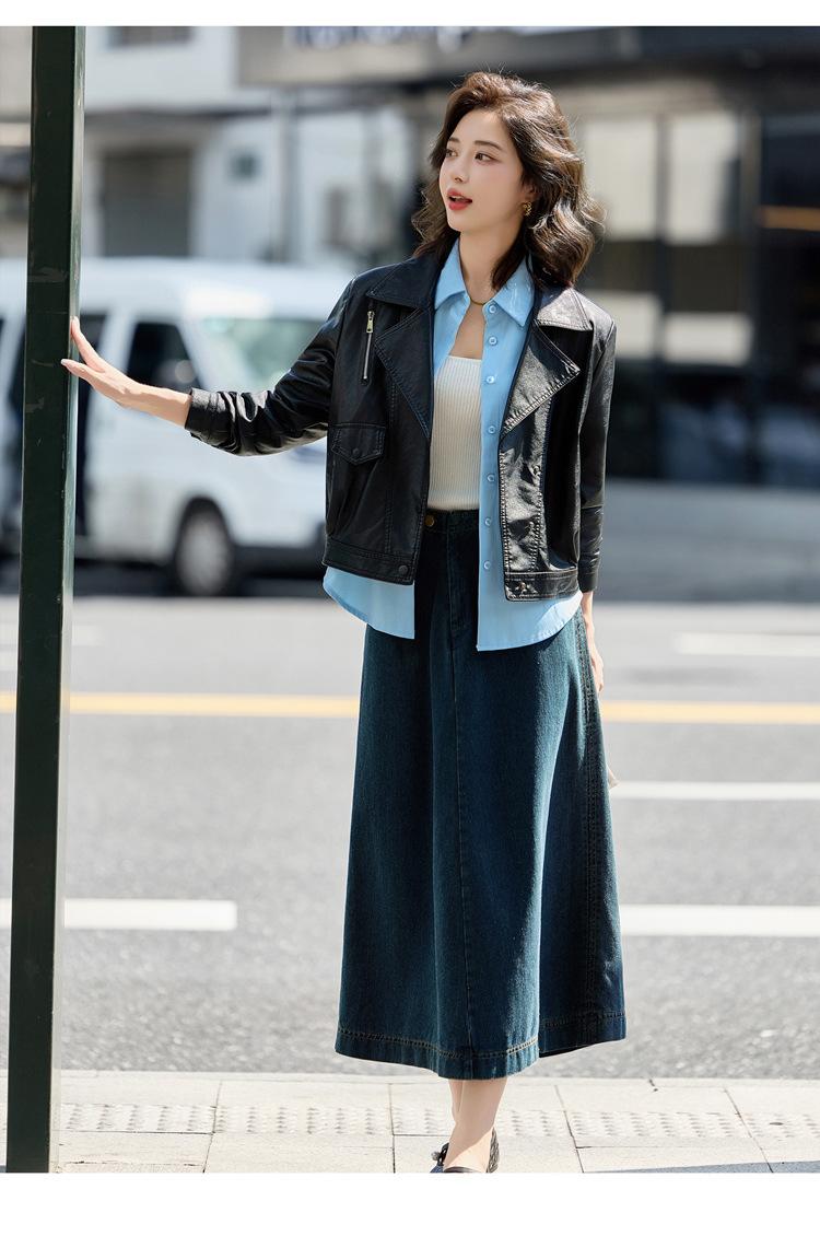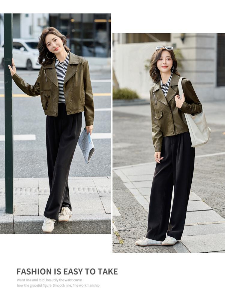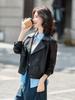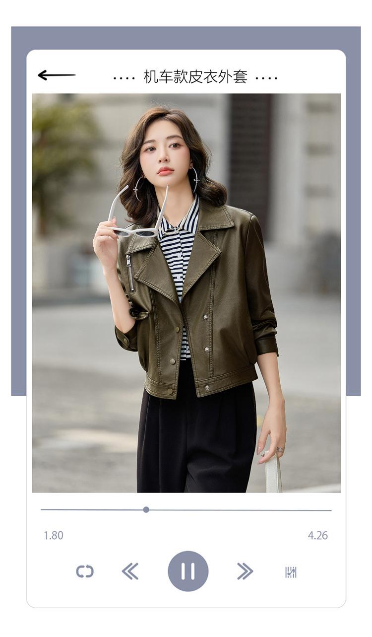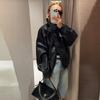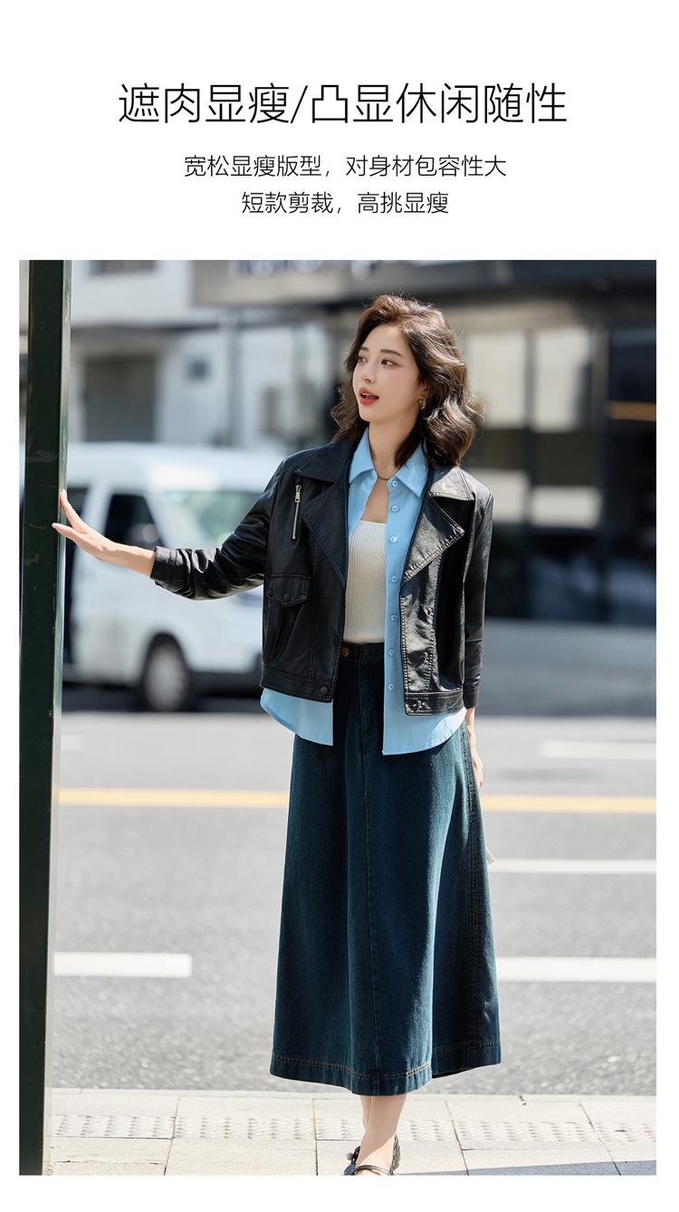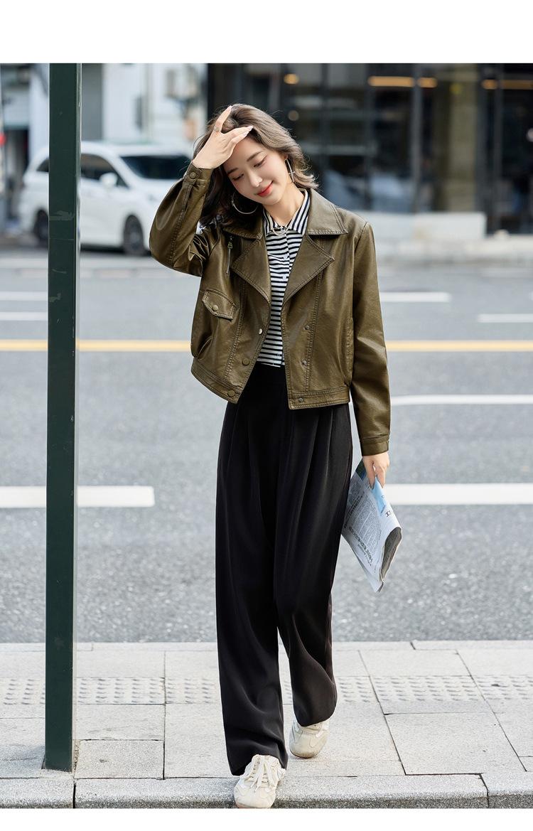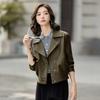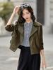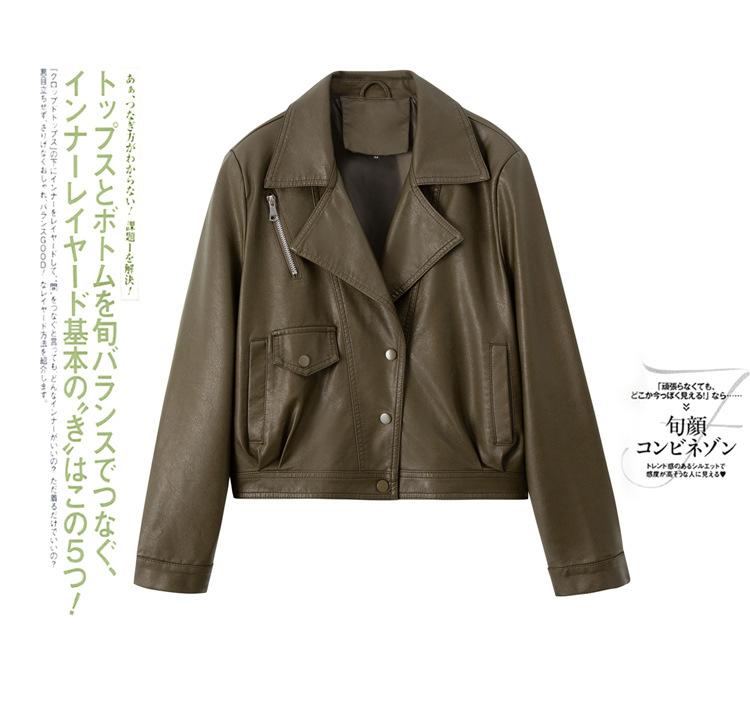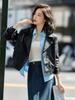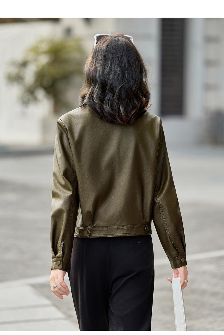 Chaqueta corta de cuero estilo europeo con cuello doblado para mujer 2025 primavera y otoño moda casual estilo callejero de motocicleta chaqueta de cuero petite