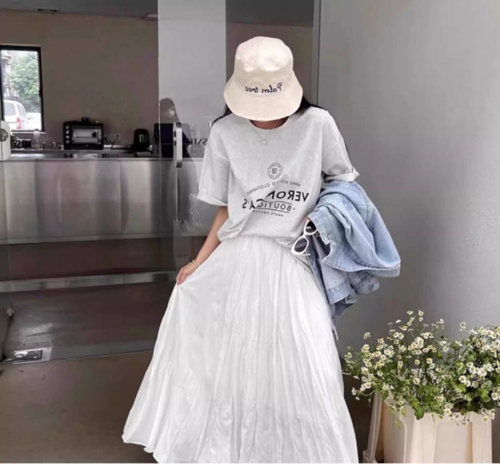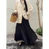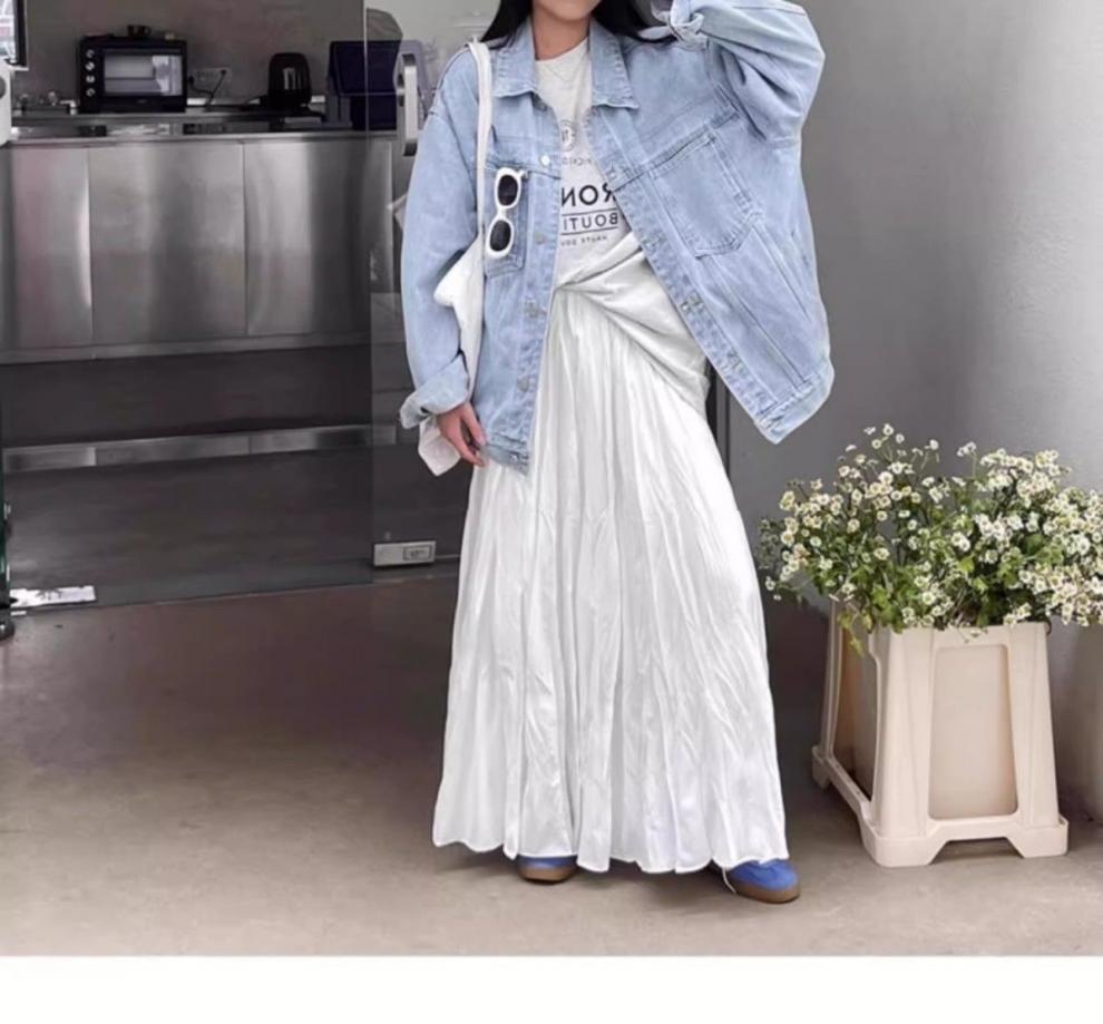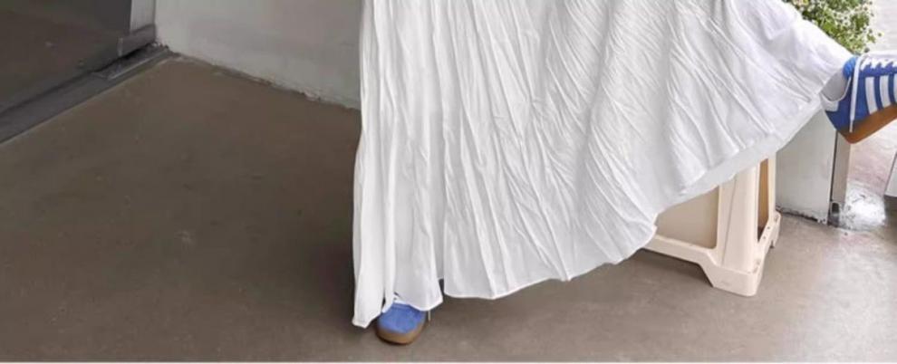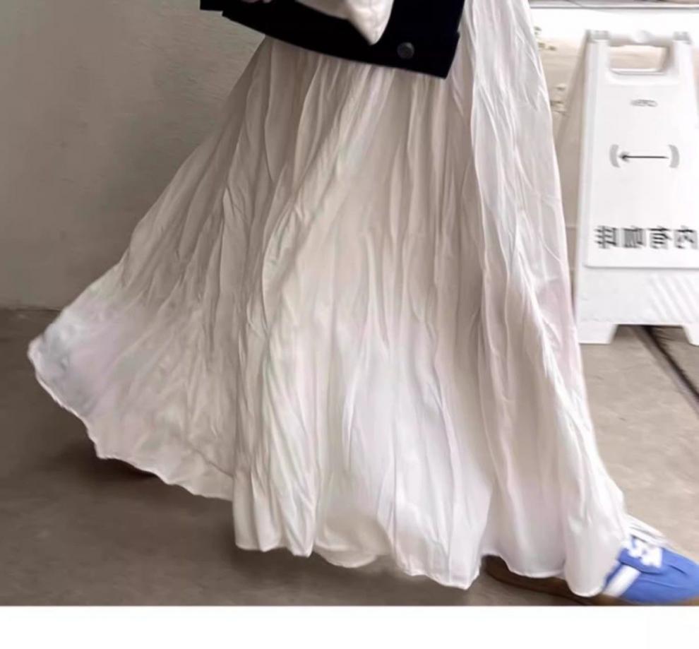 Falda Larga A-Line de Estilo Coreano de Cintura Alta con Diseño de Aspecto Adelgazante, Plisada, Drapeada, con Bajo Amplio para Mujer