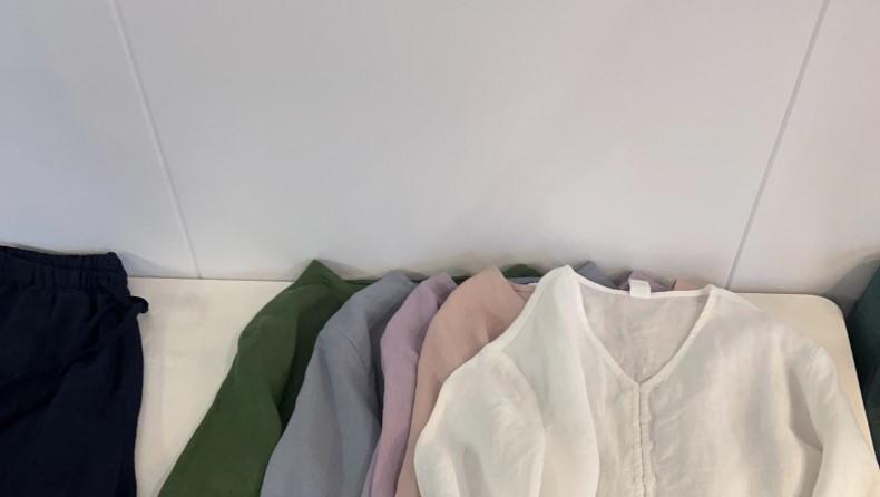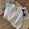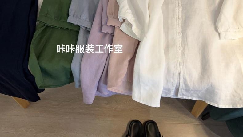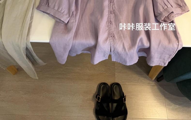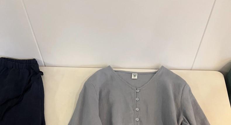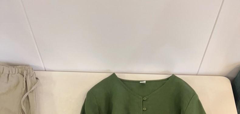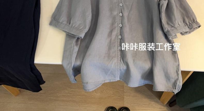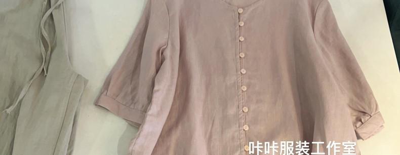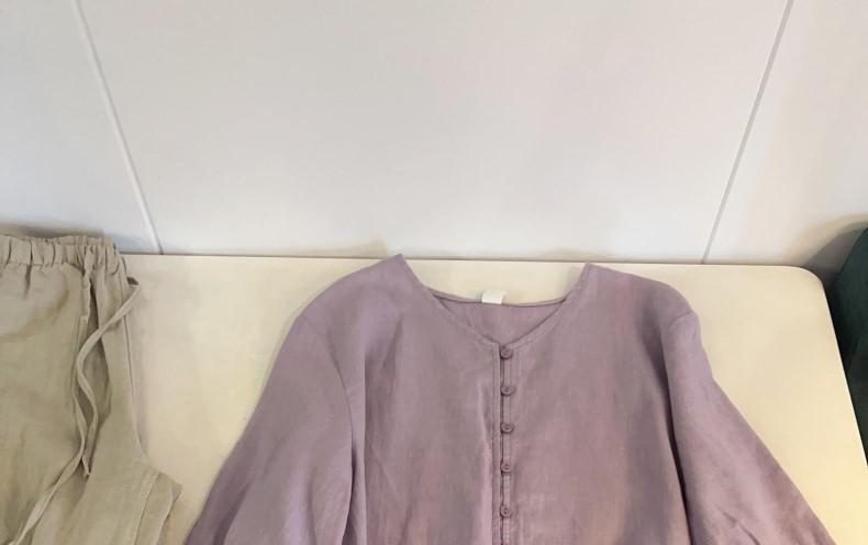 Lino Puro Verano Nuevo Estilo Coreano Look Adelgazante Estilo Literario Suelto Elegante Versátil Camisa Cuello V Fresca y Transpirable para Mujer