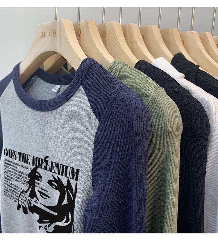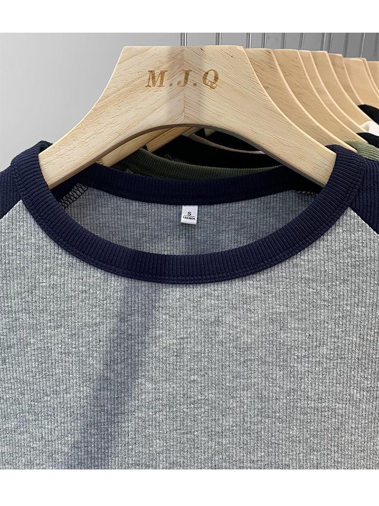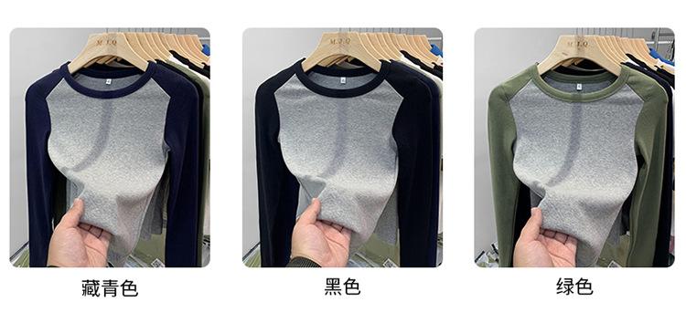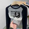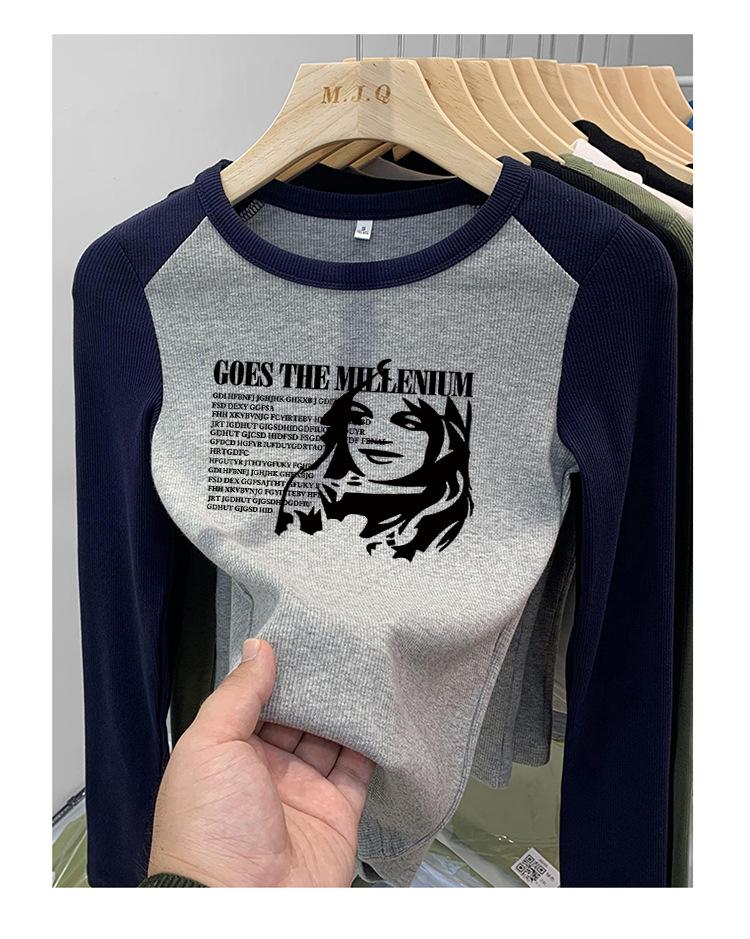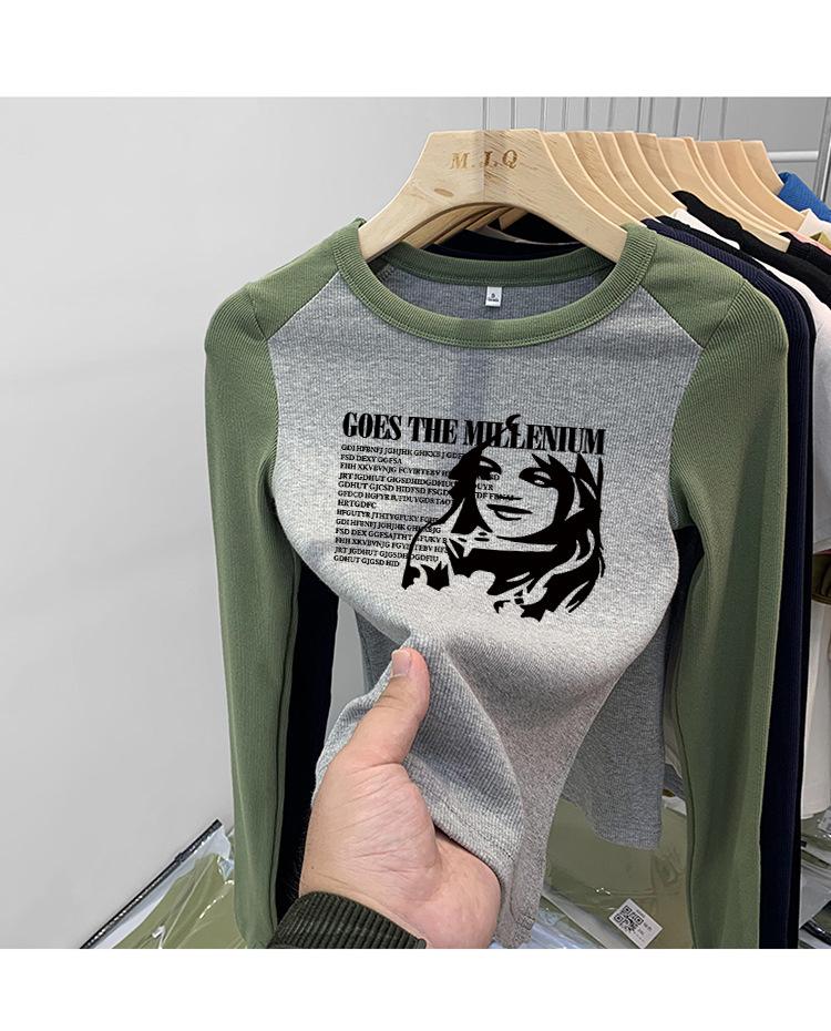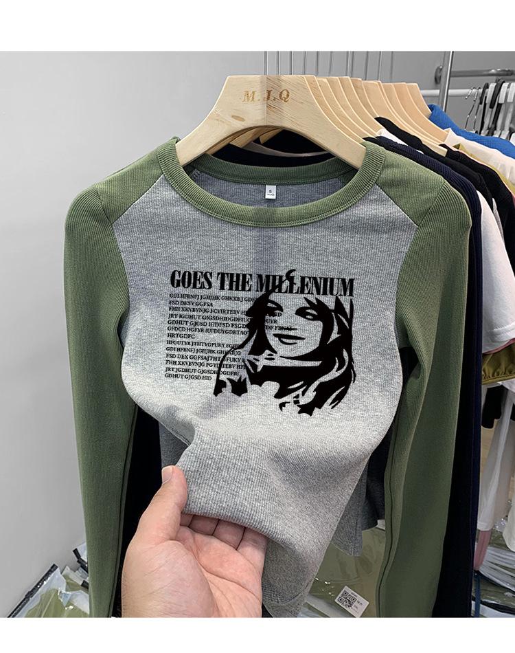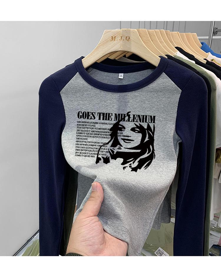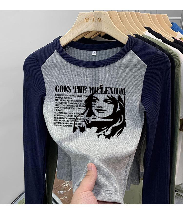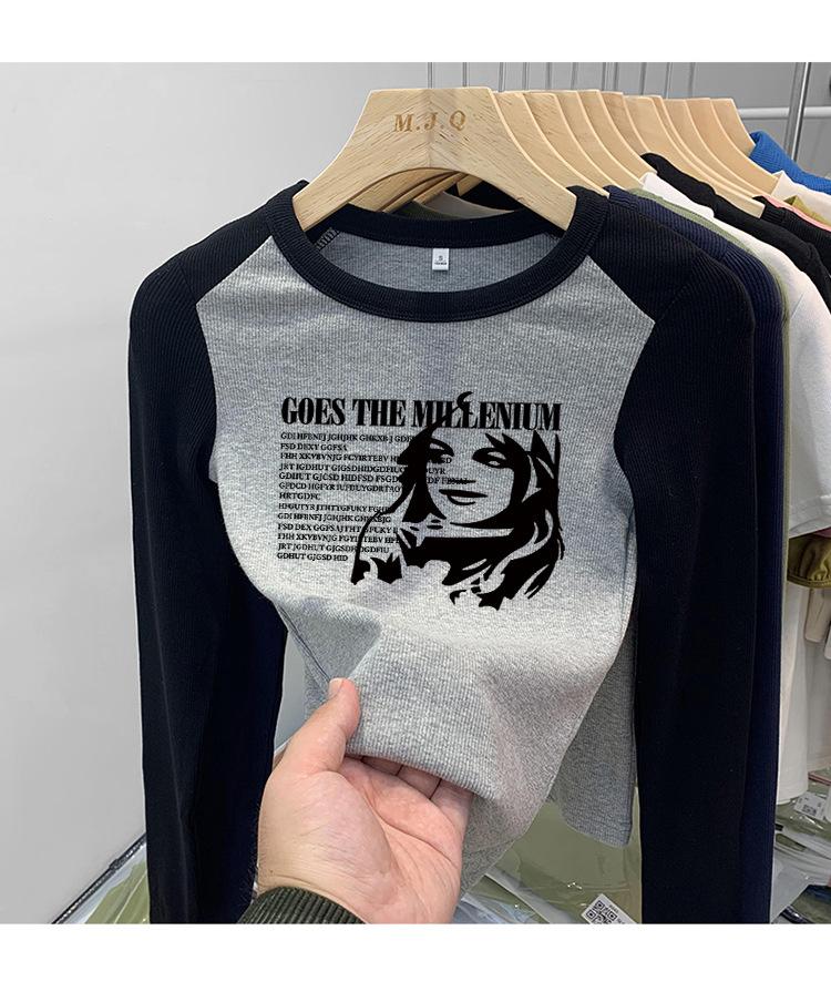 Algodón Puro Hombro Recto Diseño Corto Sentido Adelgazante y Adelgazante Ropa Camiseta Manga Larga Mujer 2025 Principios de Otoño Top Nuevo Primavera y Otoño