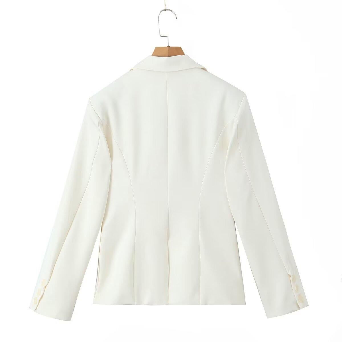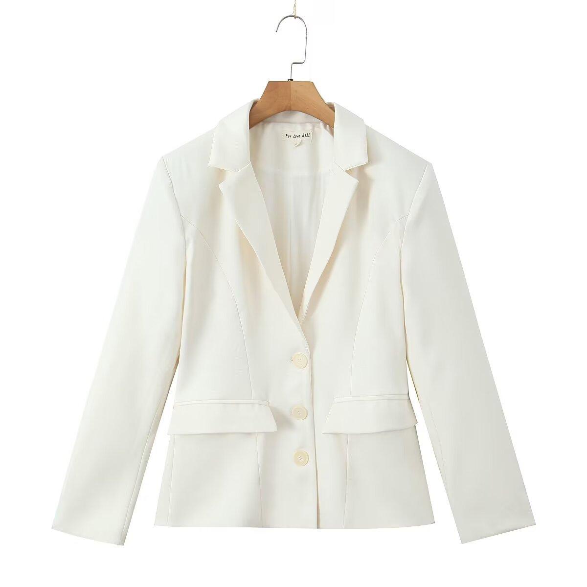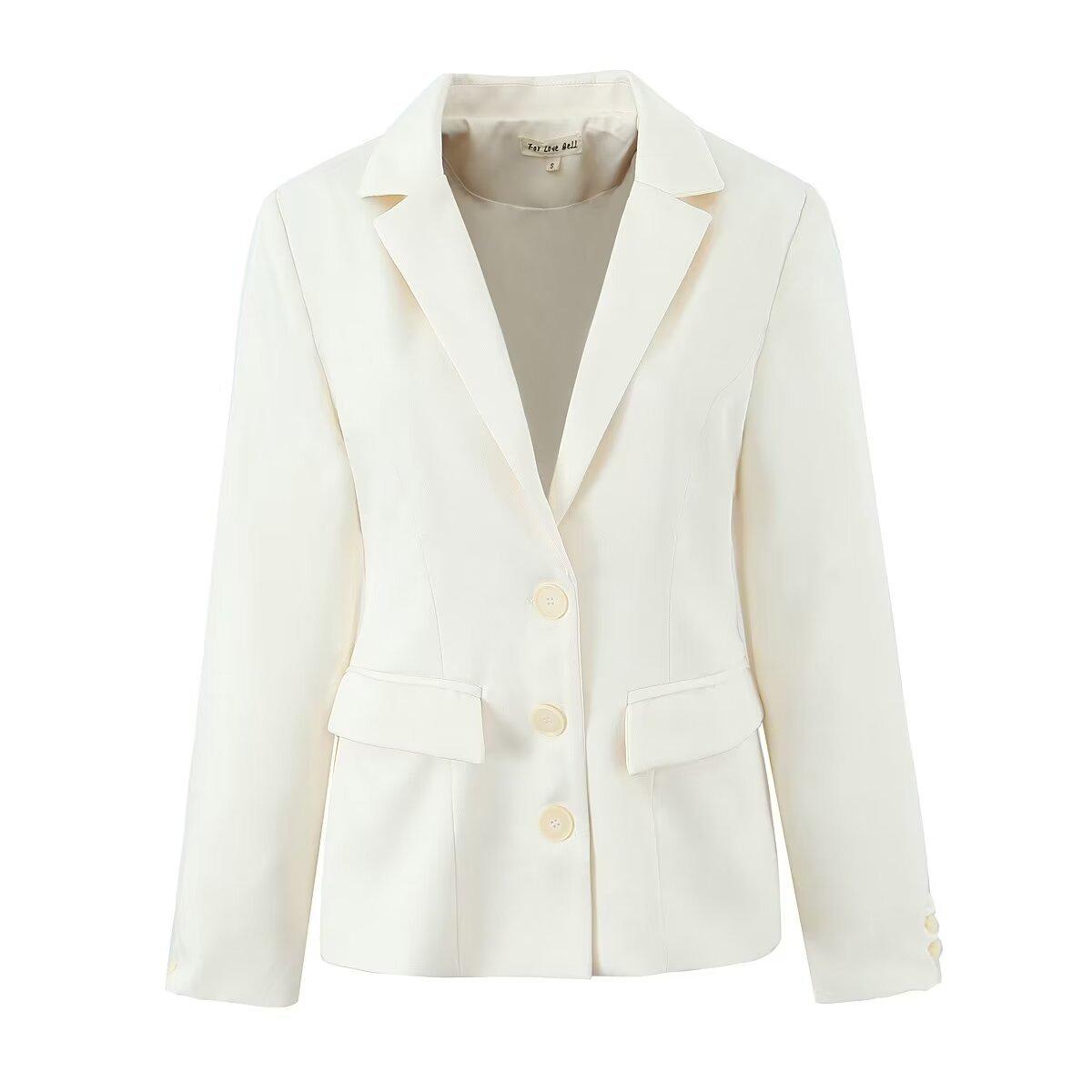Europeo y Americano de Alta Calidad Chaqueta de Traje Ajustada Entallada de Cintura Gruesa para Mujer Principios de Otoño Casual Estilo Occidental Top de Botonadura Sencilla