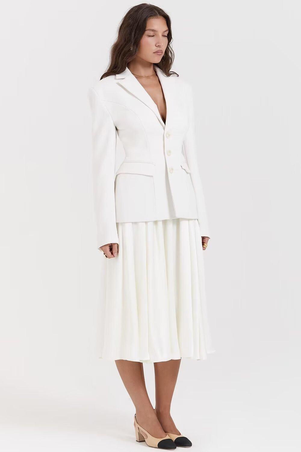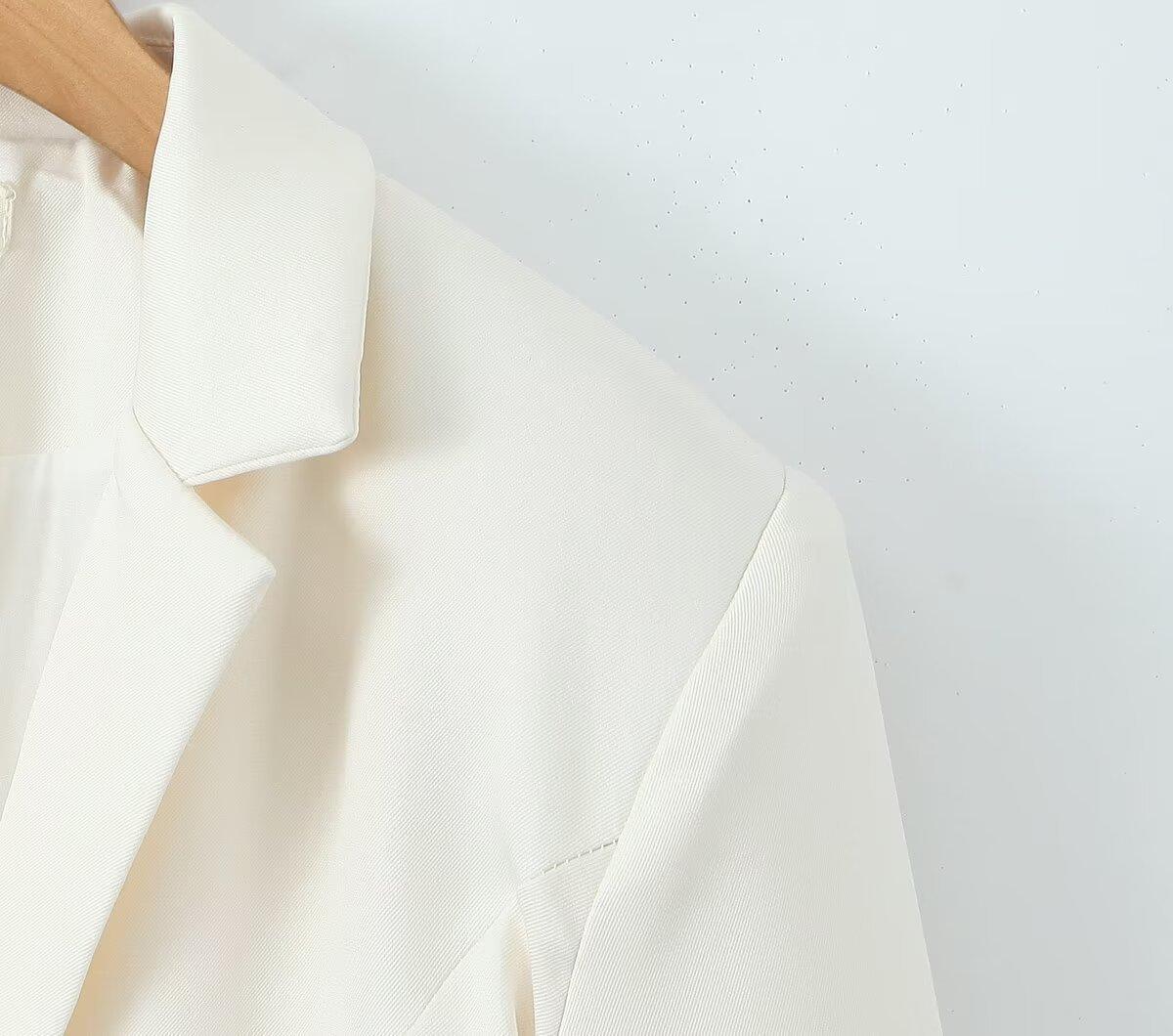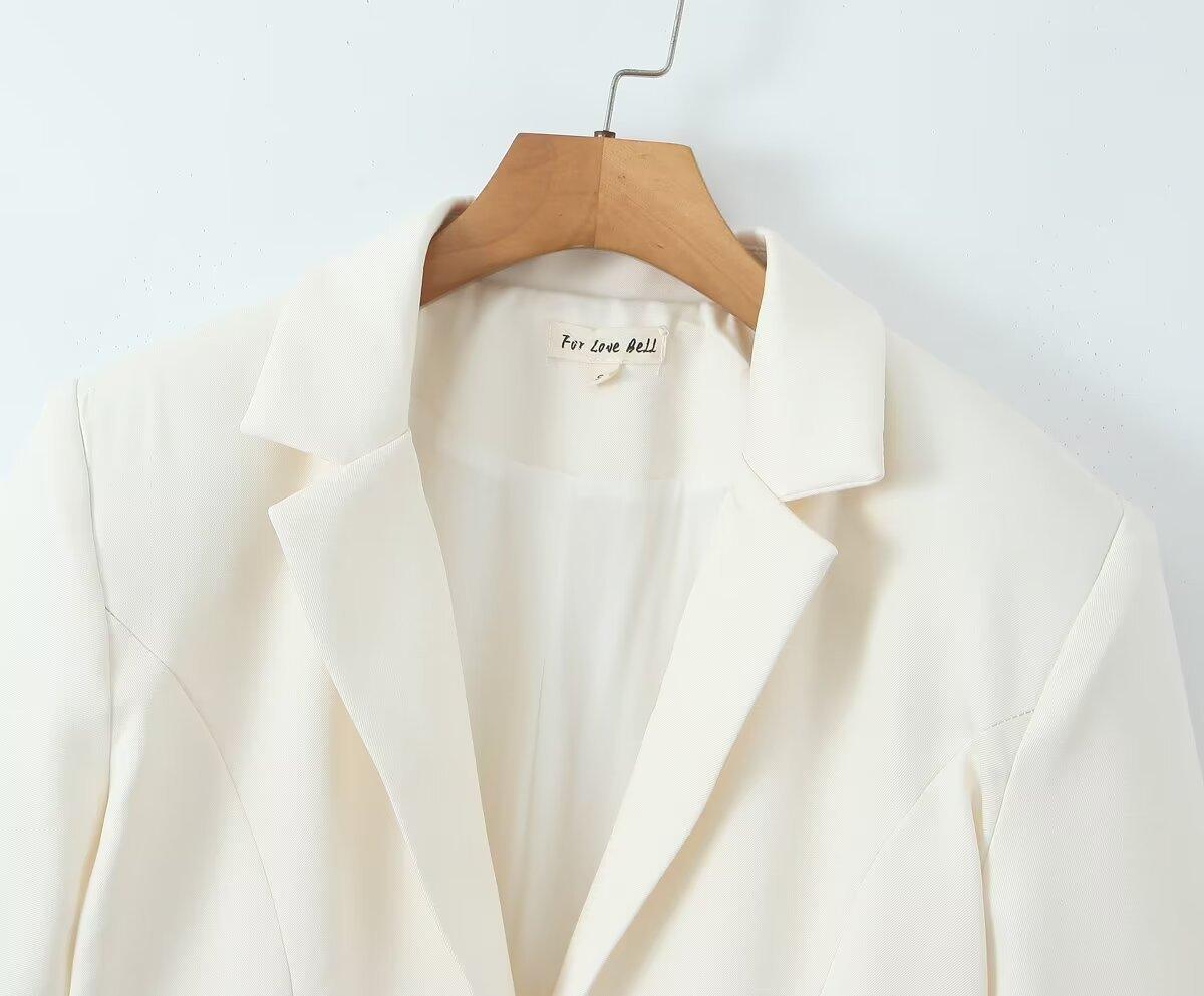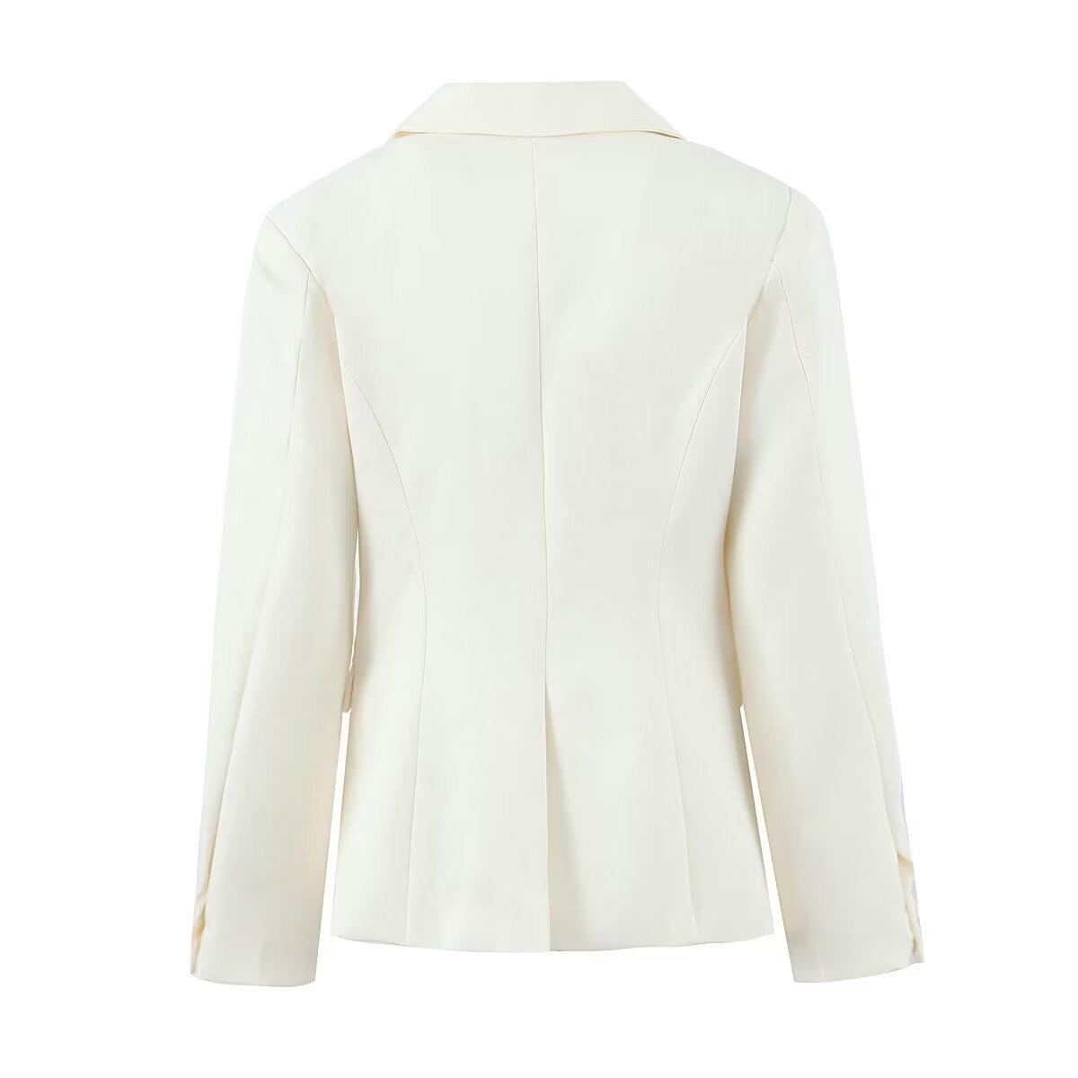 Europeo y Americano de Alta Calidad Chaqueta de Traje Ajustada Entallada de Cintura Gruesa para Mujer Principios de Otoño Casual Estilo Occidental Top de Botonadura Sencilla