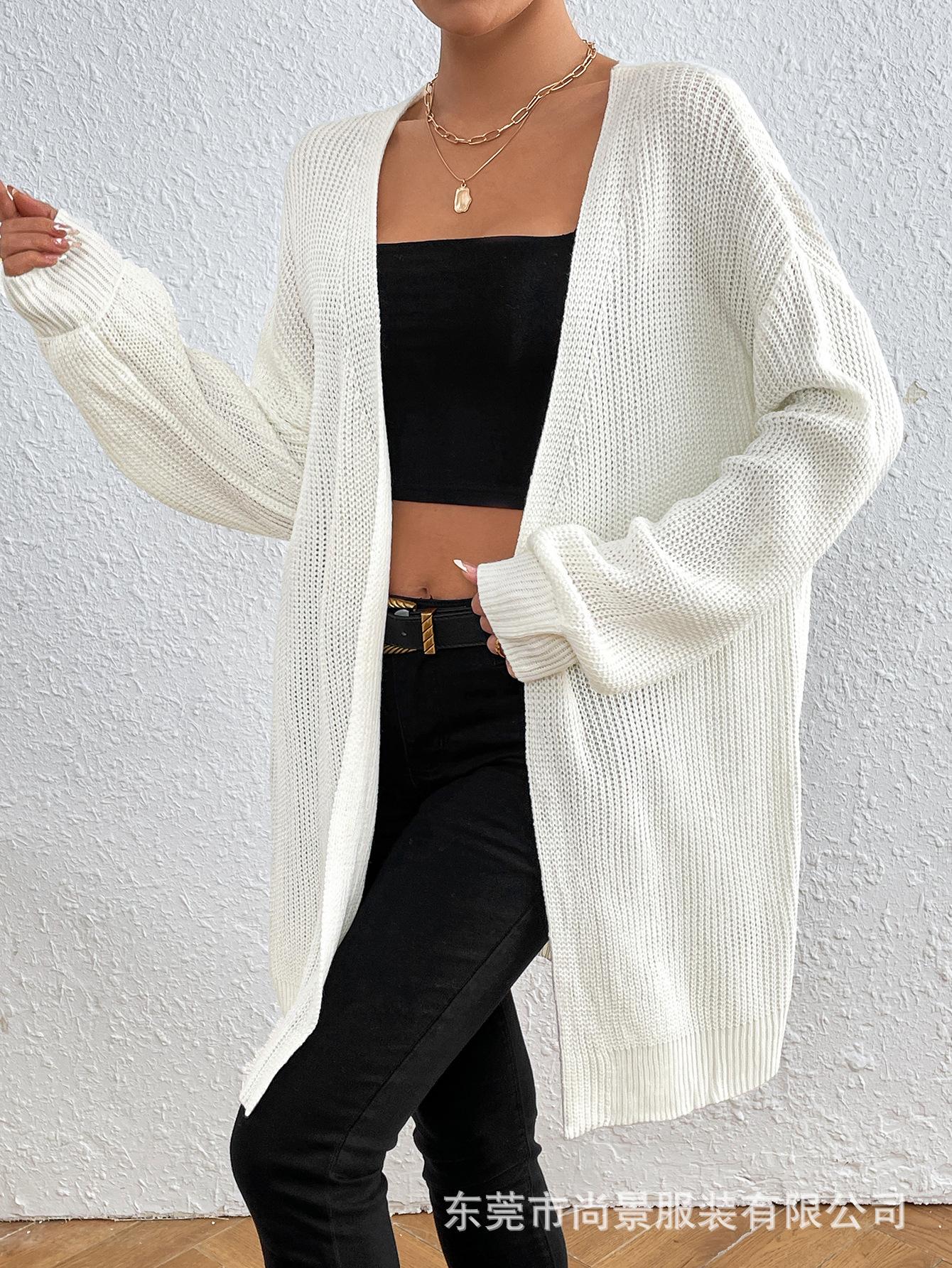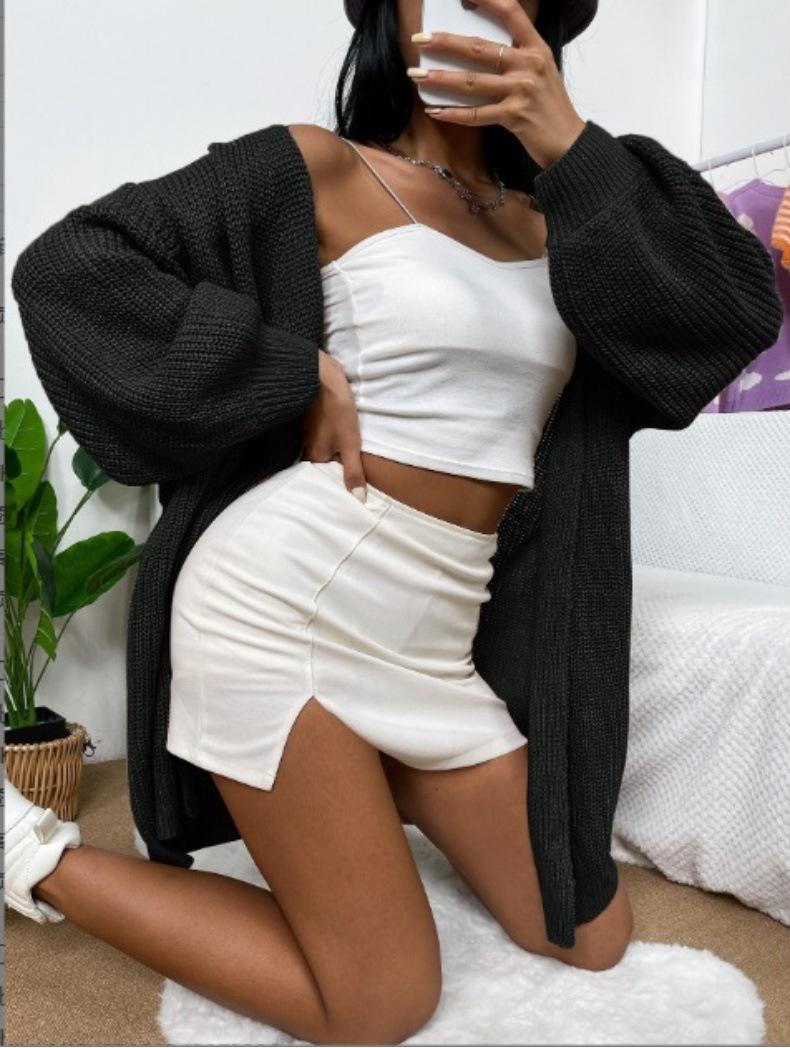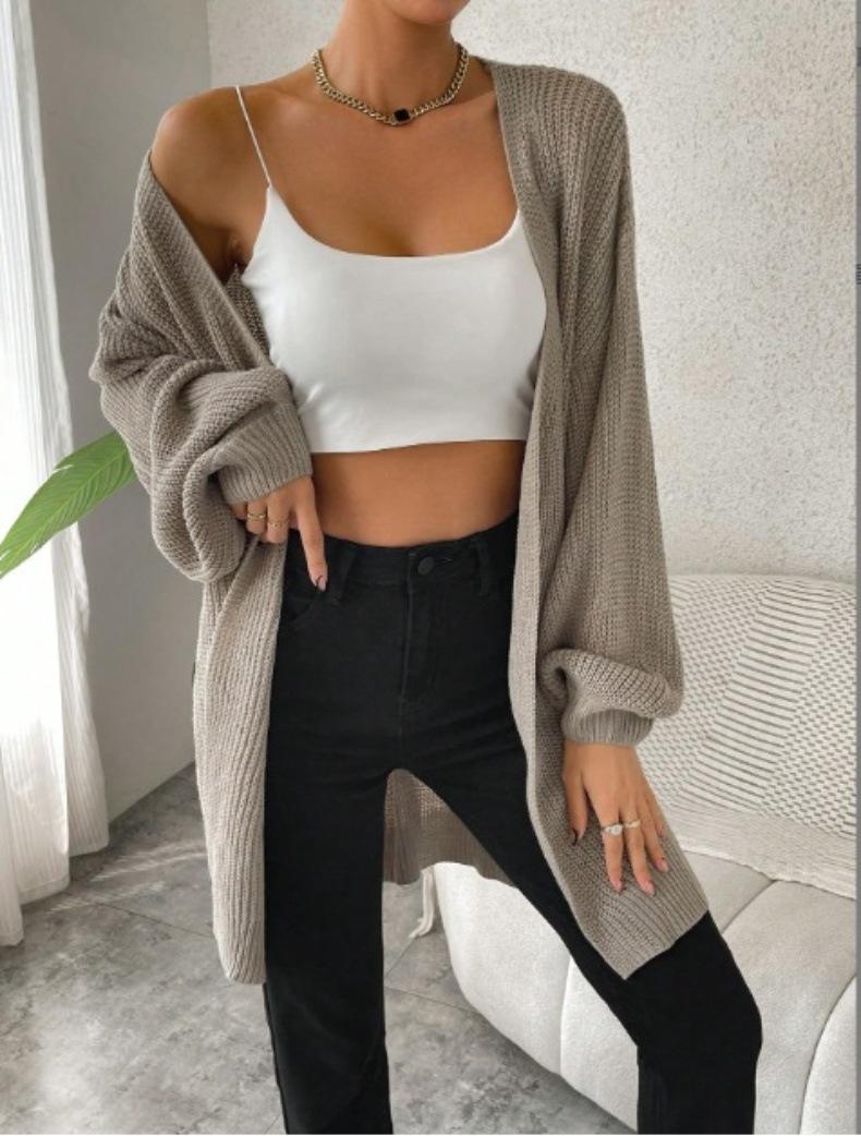 Cárdigans Europeos y Americanos de Primavera y Otoño, Nuevo Estilo, Sencillos y Casuales, Versátil Chaqueta Larga de Suéter Manga Linterna con Solapa para Ropa de Trabajo