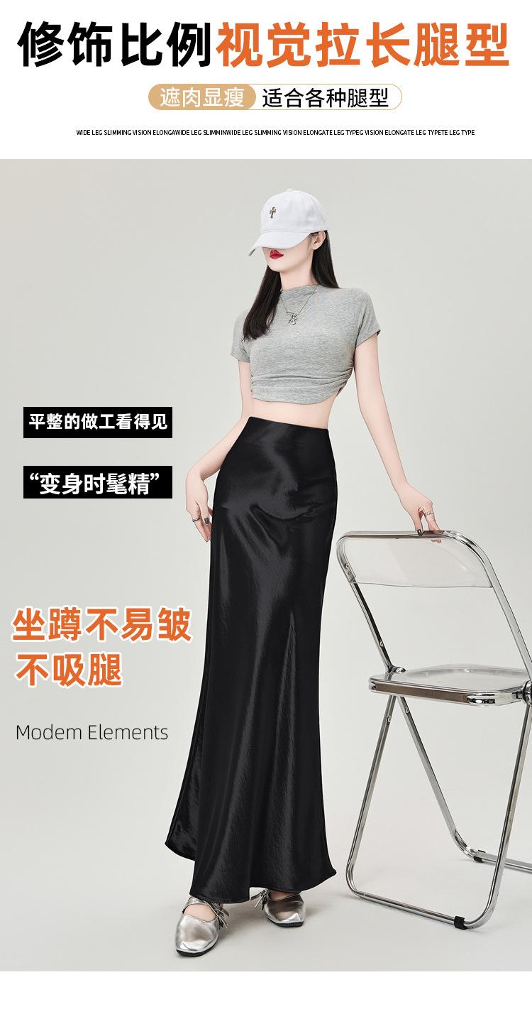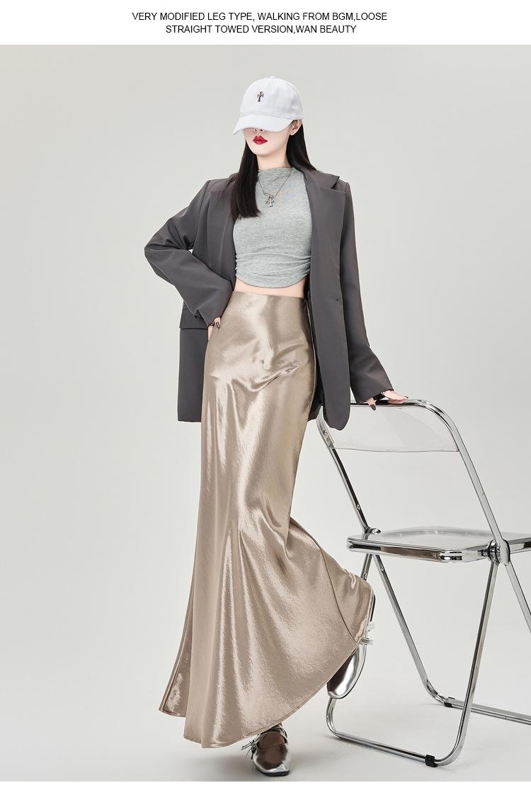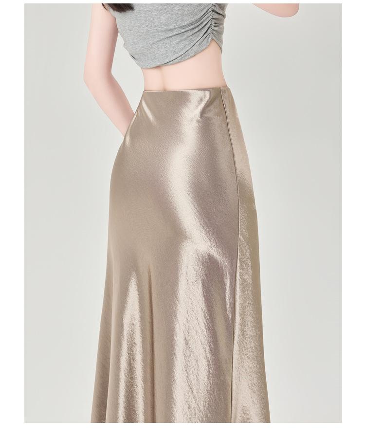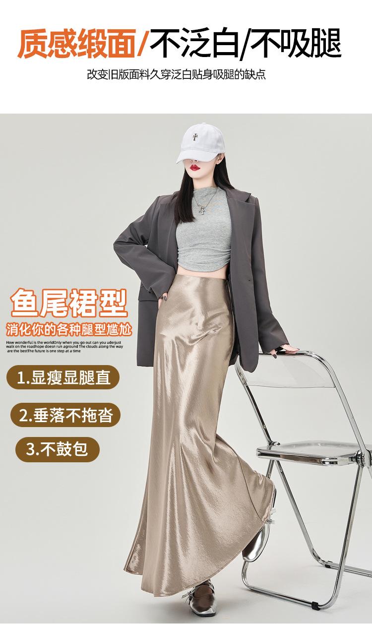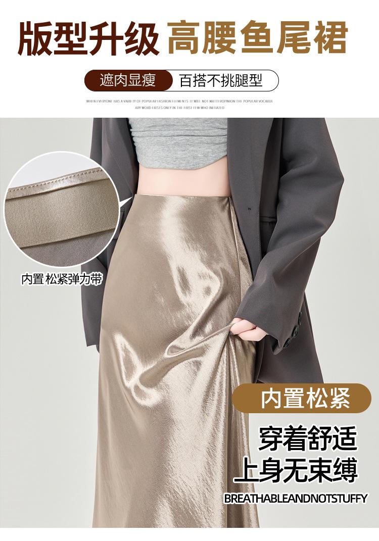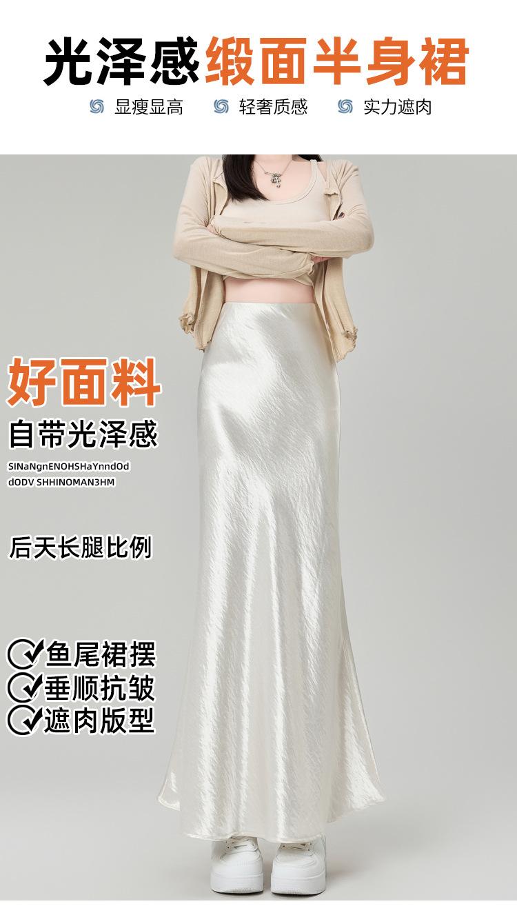 Falda Larga de Satén Acetato Falda Cola de Pez Falda para Mujer Primavera y Verano 2025 Cintura Alta Drapeado Forma A Cubre Caderas Cadera Falda Midi