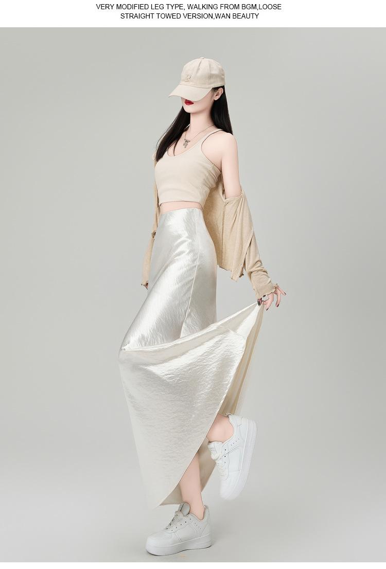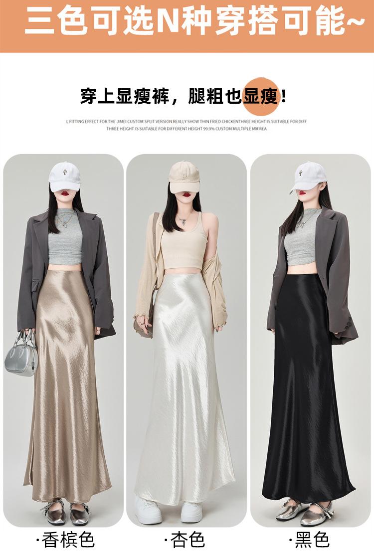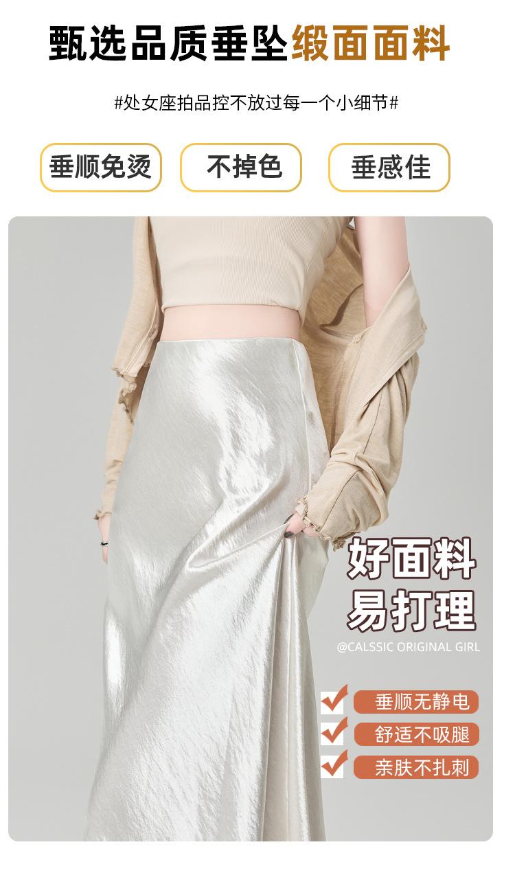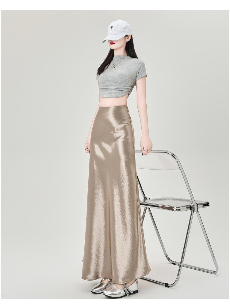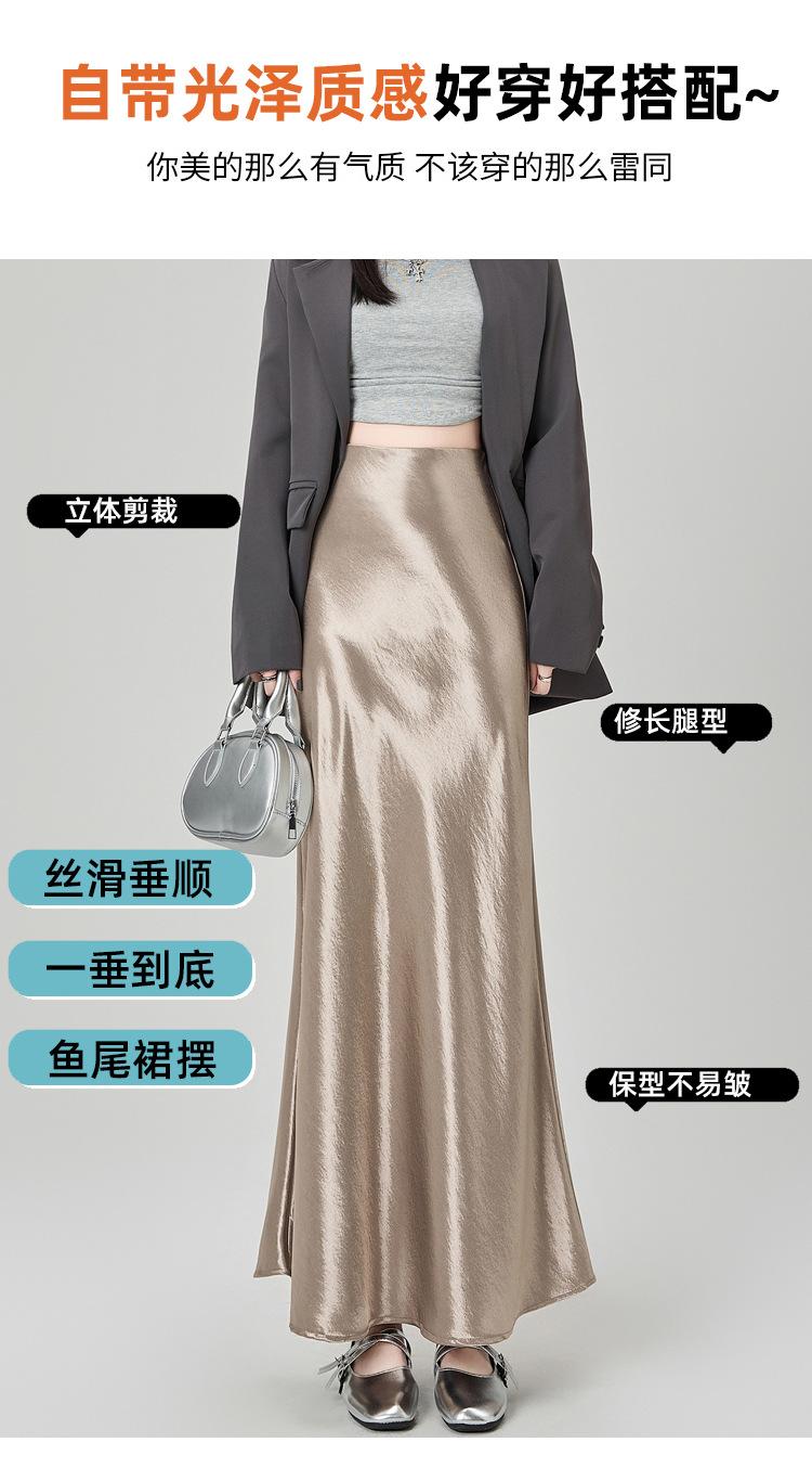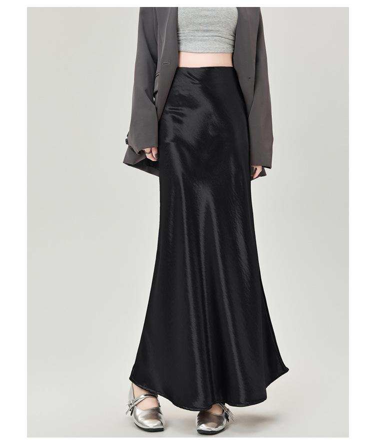 Falda Larga de Satén Acetato Falda Cola de Pez Falda para Mujer Primavera y Verano 2025 Cintura Alta Drapeado Forma A Cubre Caderas Cadera Falda Midi