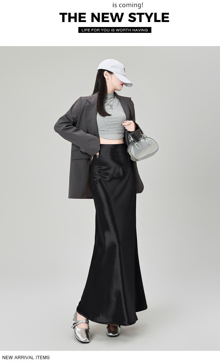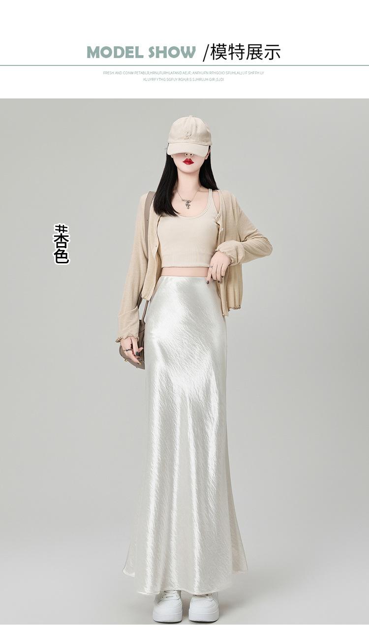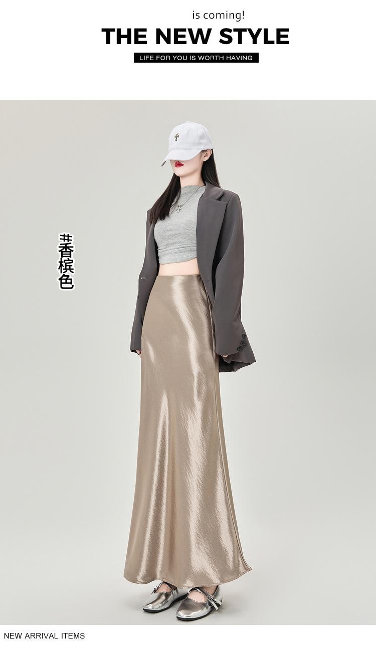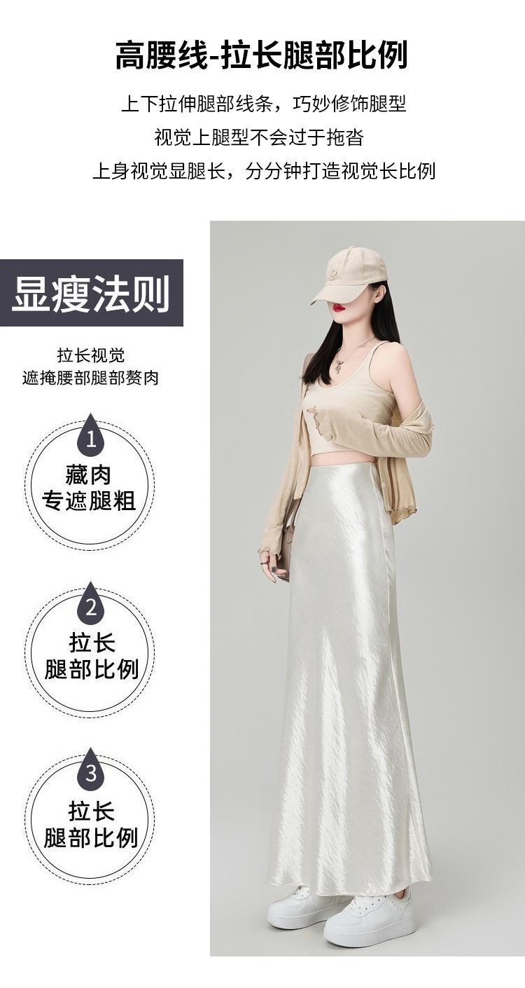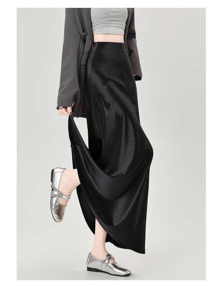 Falda Larga de Satén Acetato Falda Cola de Pez Falda para Mujer Primavera y Verano 2025 Cintura Alta Drapeado Forma A Cubre Caderas Cadera Falda Midi