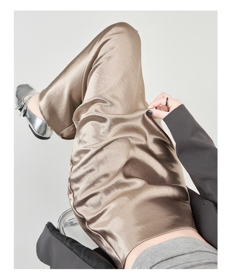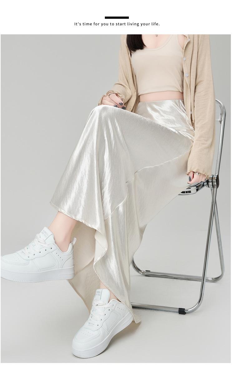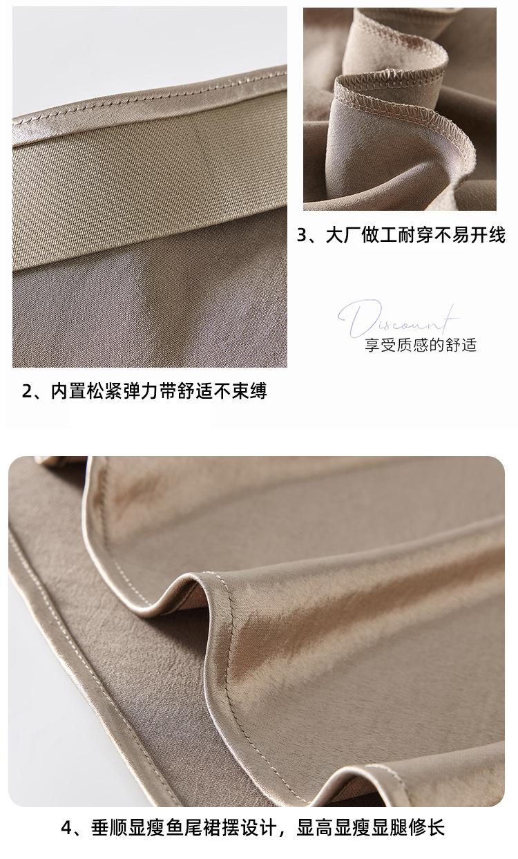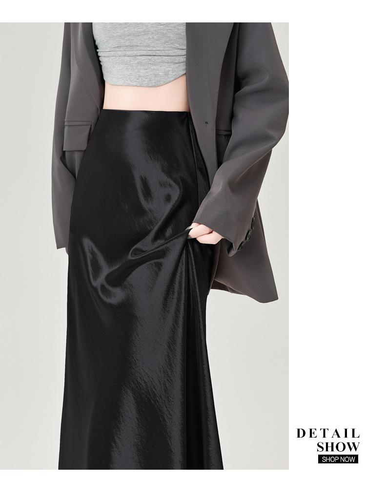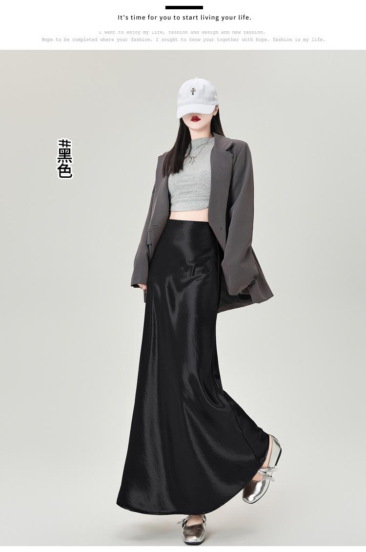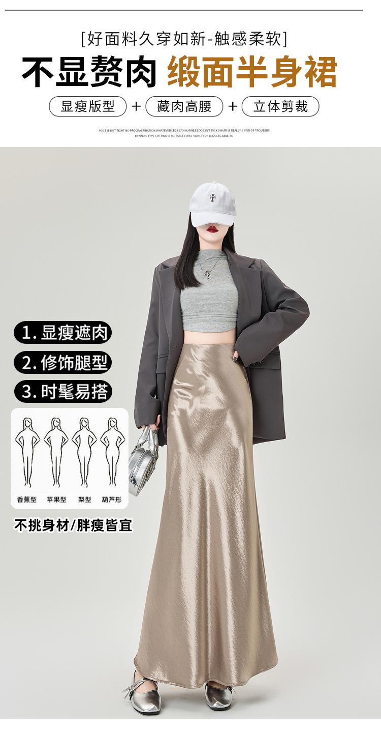 Falda Larga de Satén Acetato Falda Cola de Pez Falda para Mujer Primavera y Verano 2025 Cintura Alta Drapeado Forma A Cubre Caderas Cadera Falda Midi