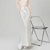Falda Larga Midi de Satén Acetato con Cola de Pez para Mujer Primavera Verano 2025 Cintura Alta Drapeada Corte A Cubre Caderas Ajustada Largo Medio