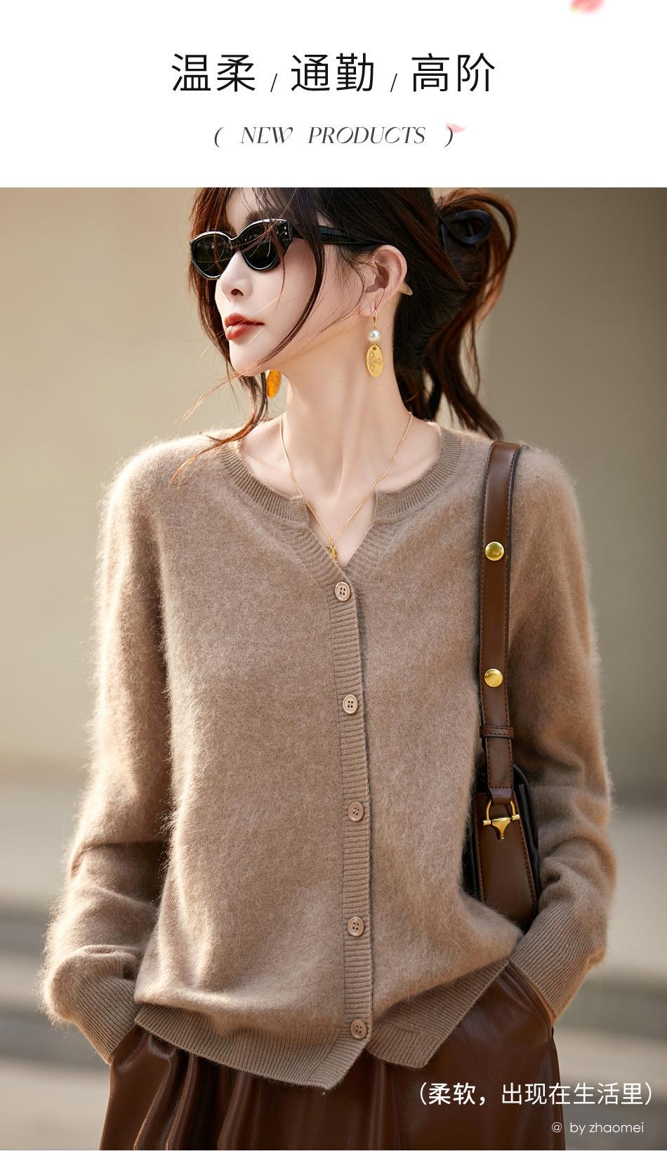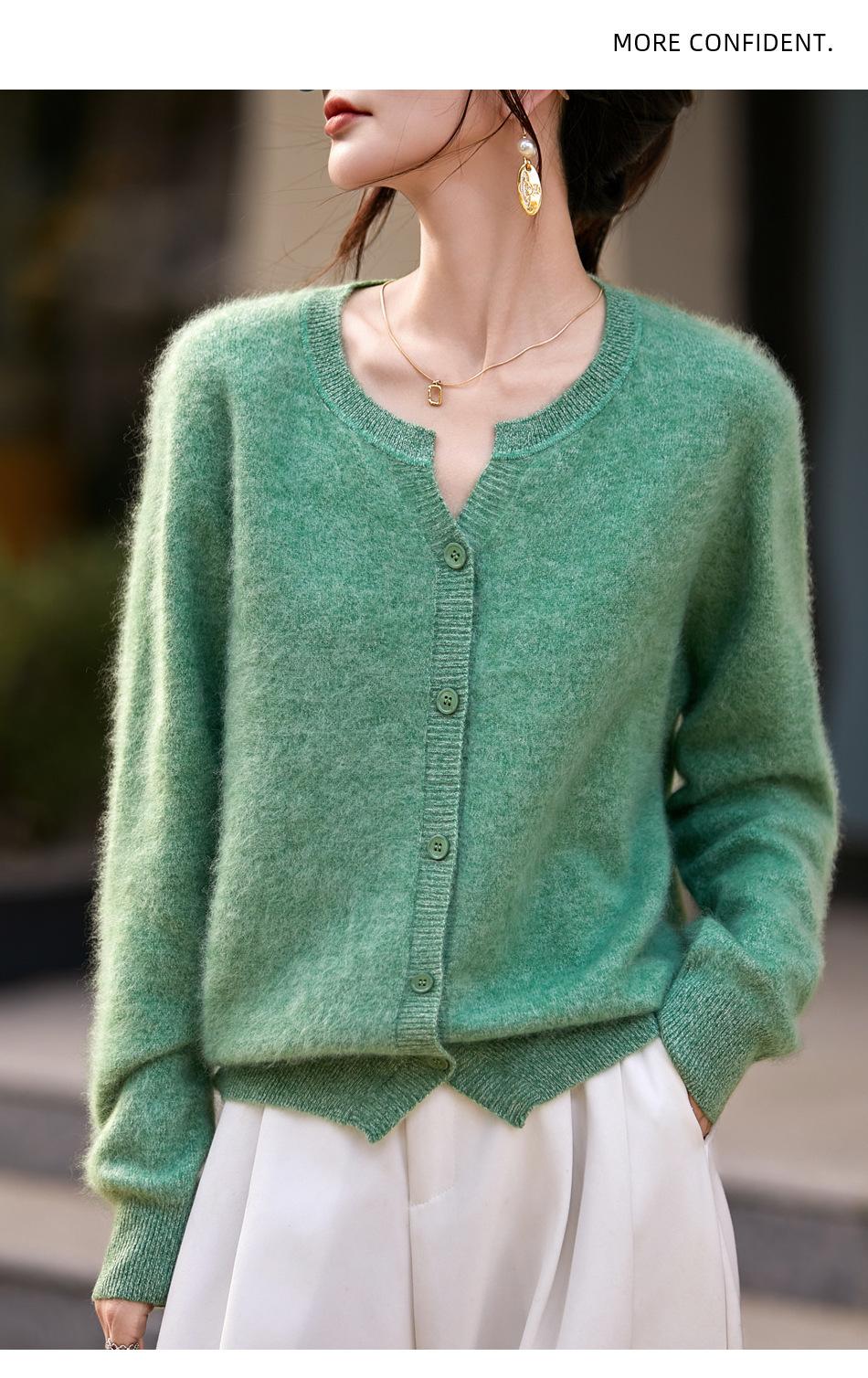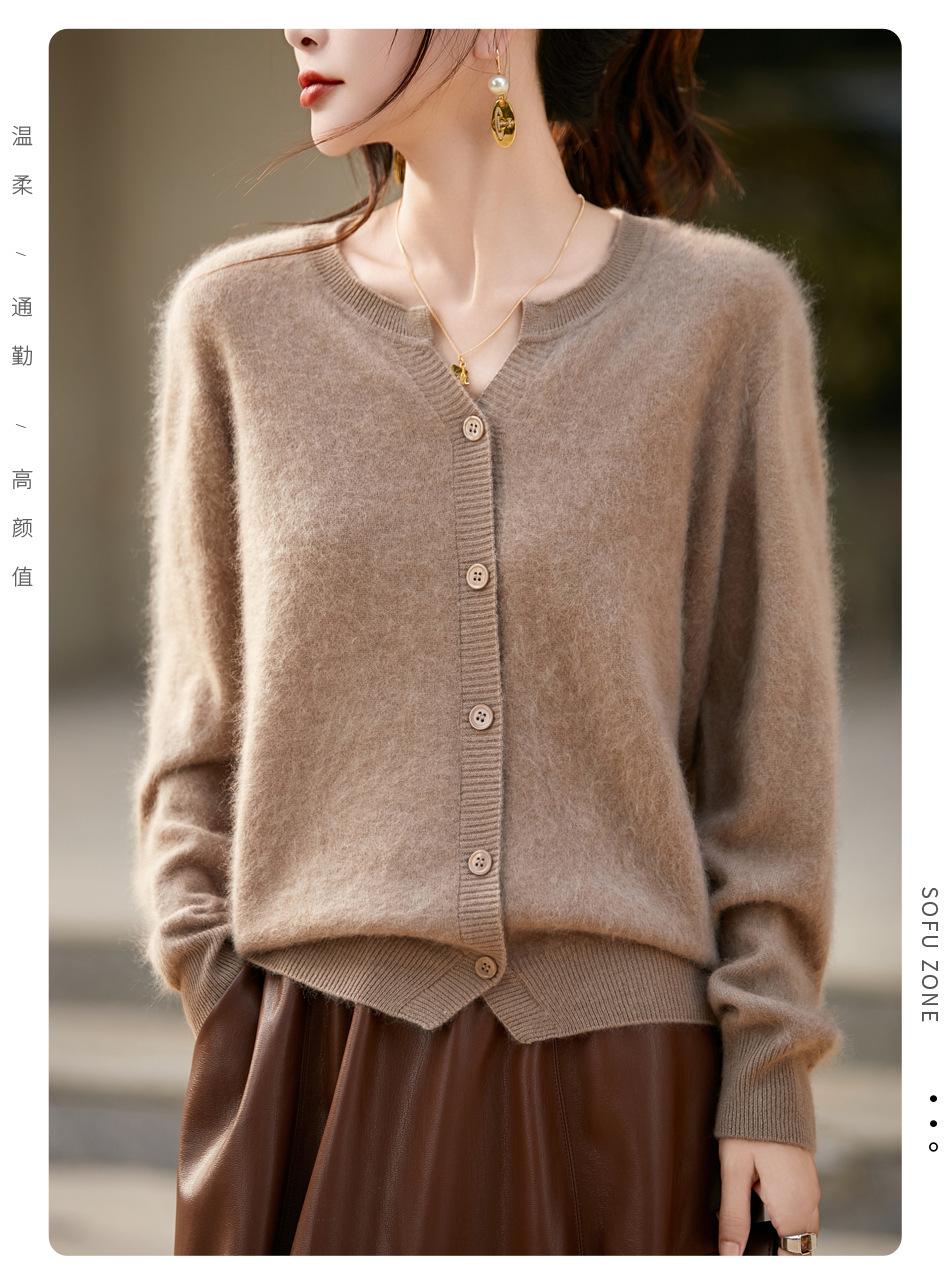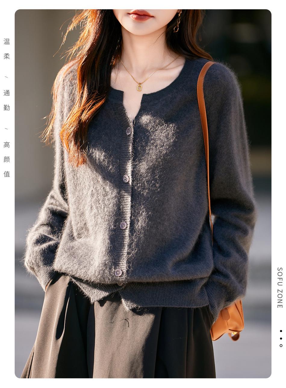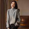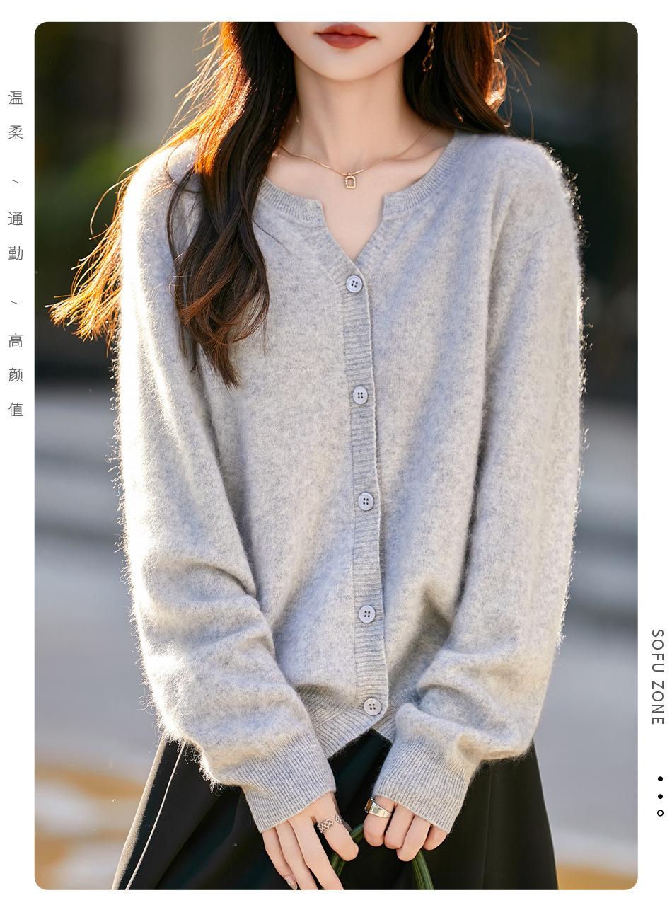 Suéter Cepillado Estilo Holgado y Perezoso Otoño e Invierno Nuevo para Mujer Cuello Redondo Sin Costuras de Una Pieza Cashmere Lana Cárdigan Tejido