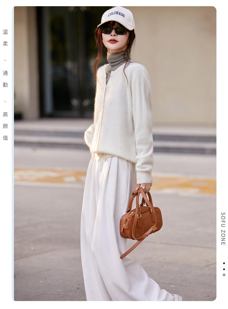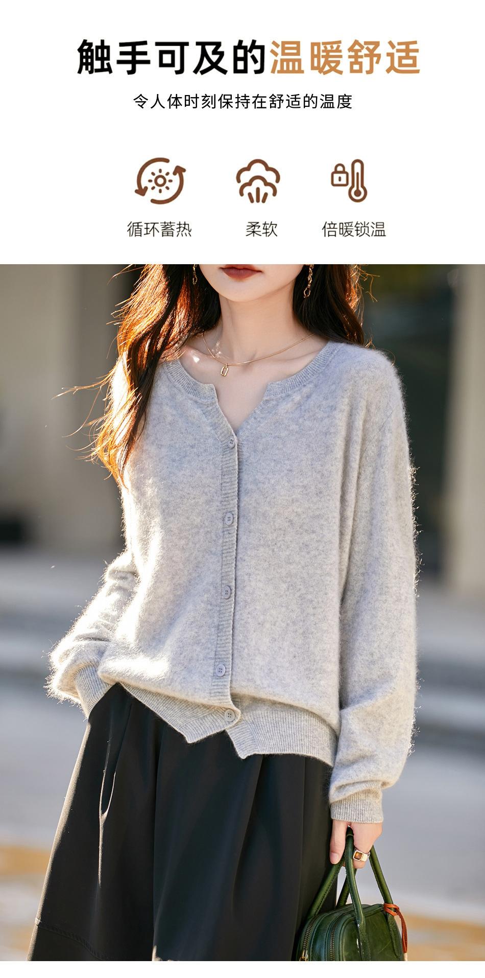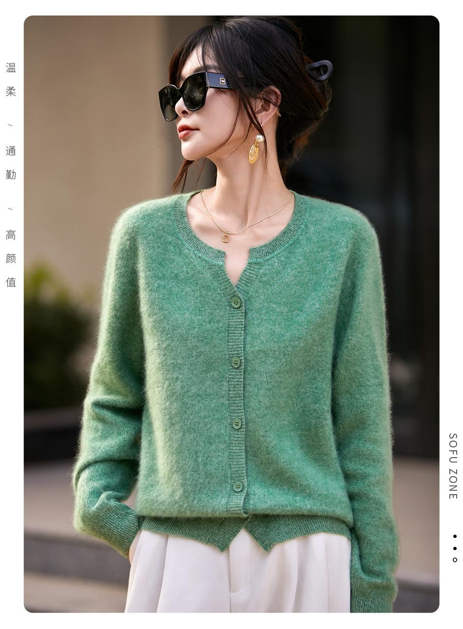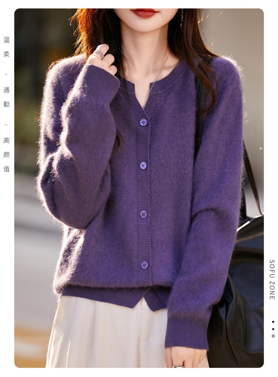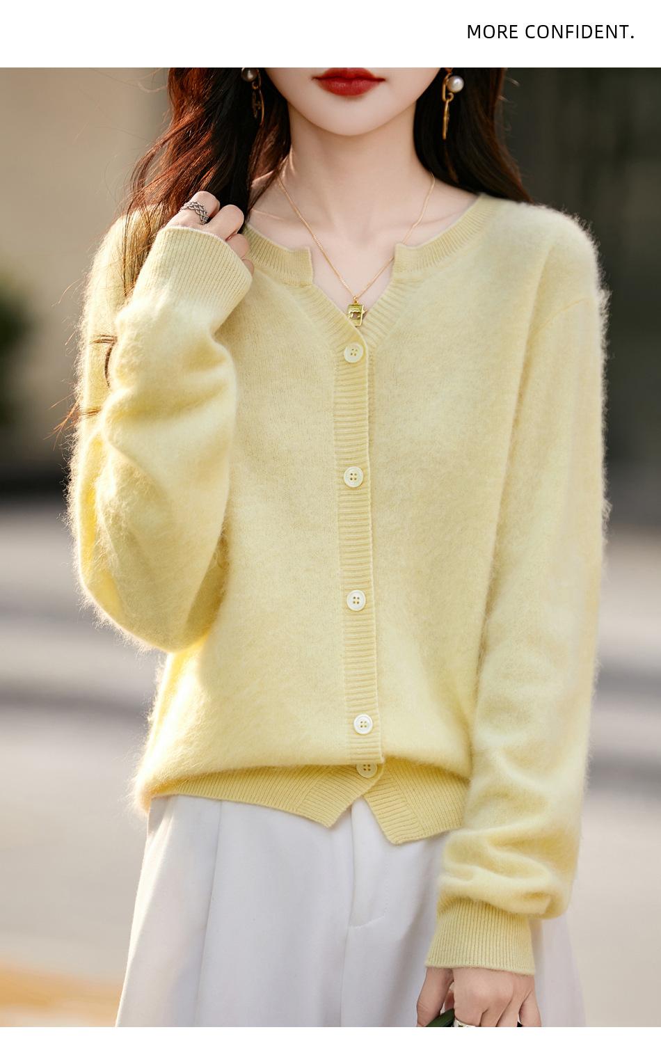 Suéter Cepillado Estilo Holgado y Perezoso Otoño e Invierno Nuevo para Mujer Cuello Redondo Sin Costuras de Una Pieza Cashmere Lana Cárdigan Tejido