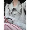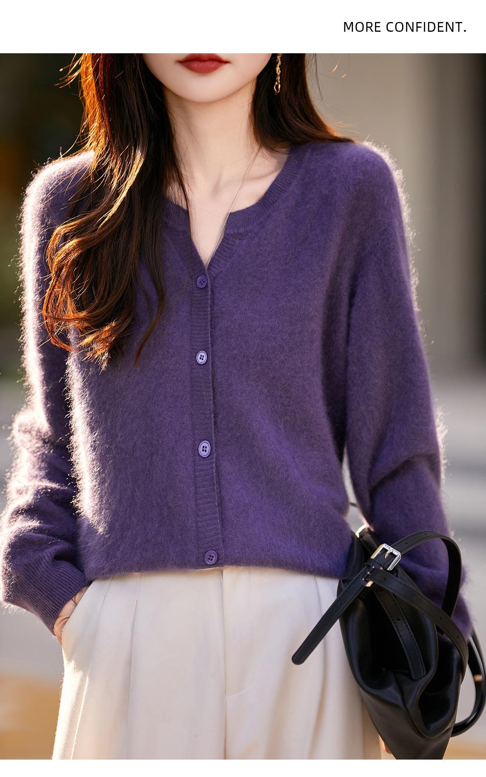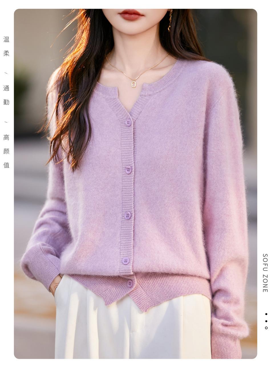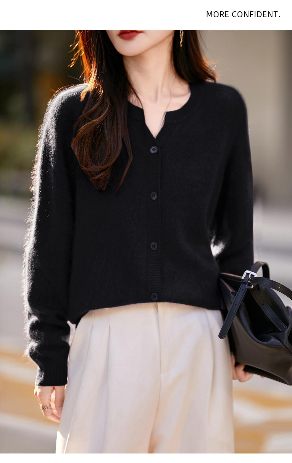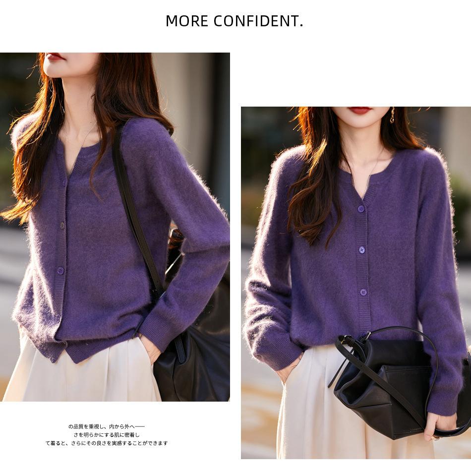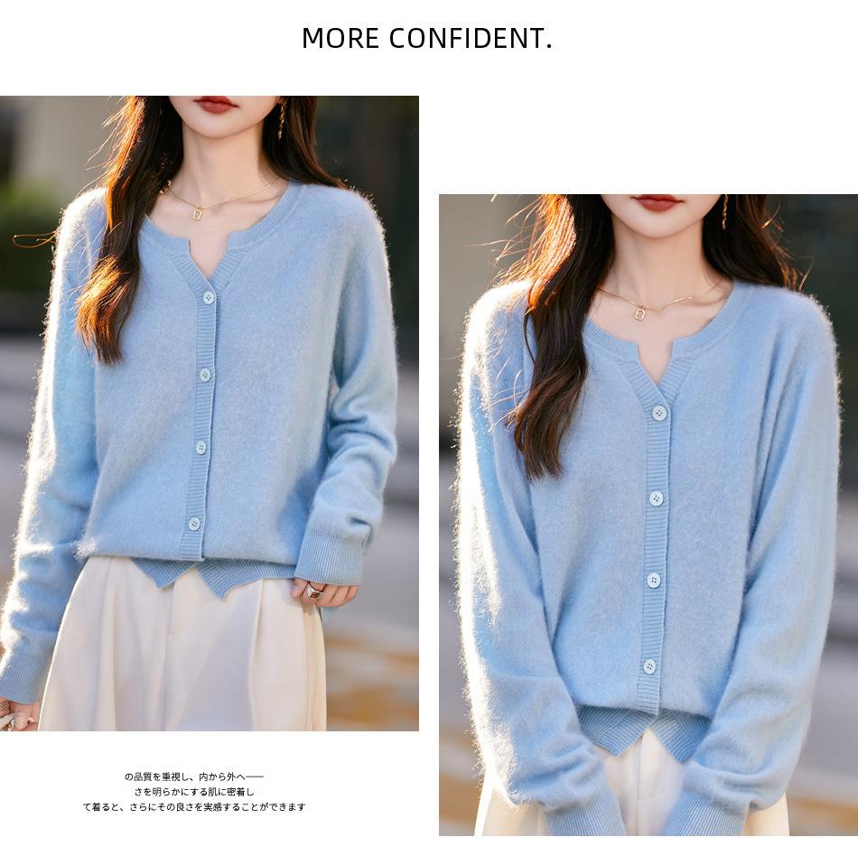 Suéter Cepillado Estilo Holgado y Perezoso Otoño e Invierno Nuevo para Mujer Cuello Redondo Sin Costuras de Una Pieza Cashmere Lana Cárdigan Tejido