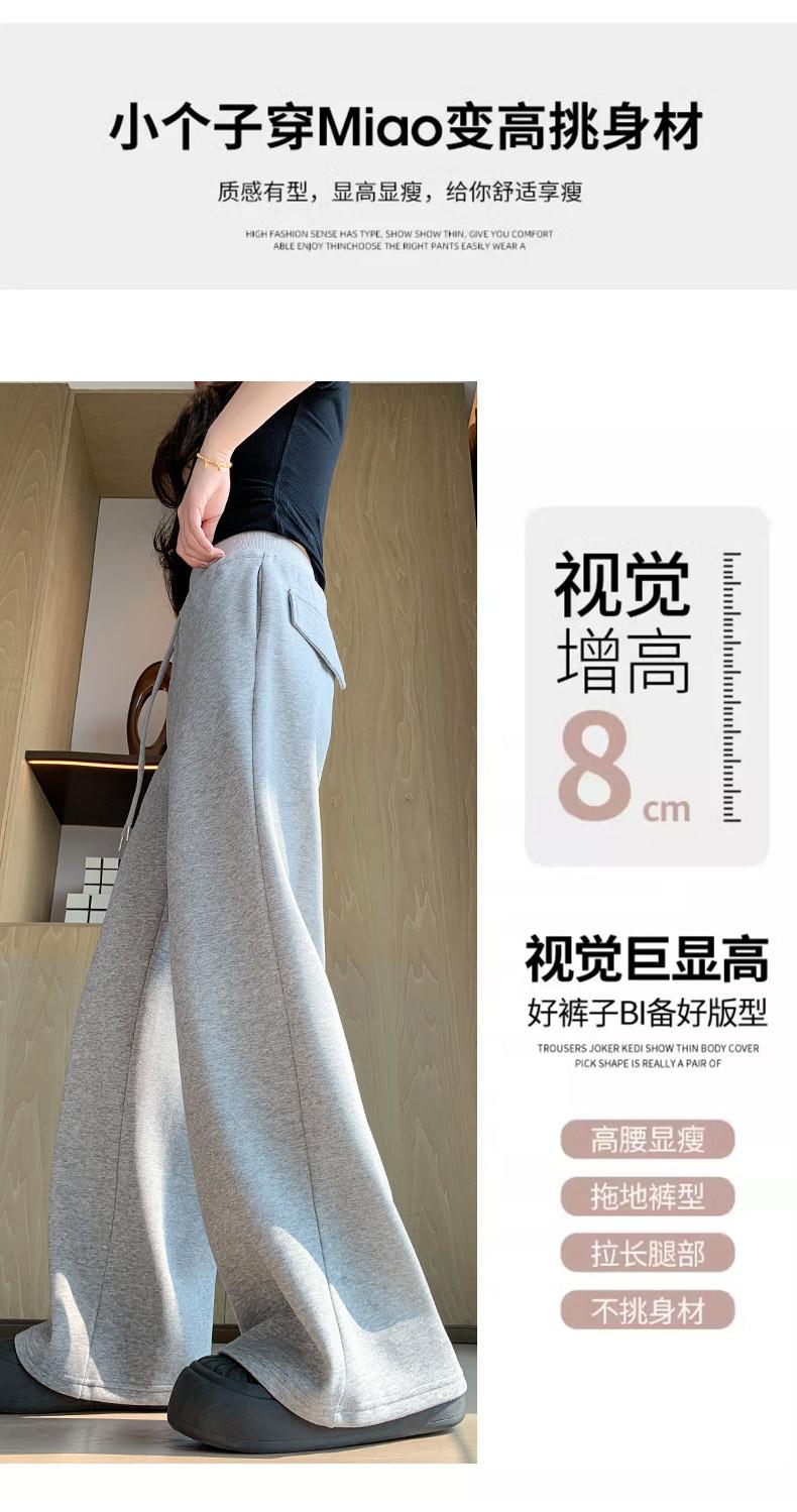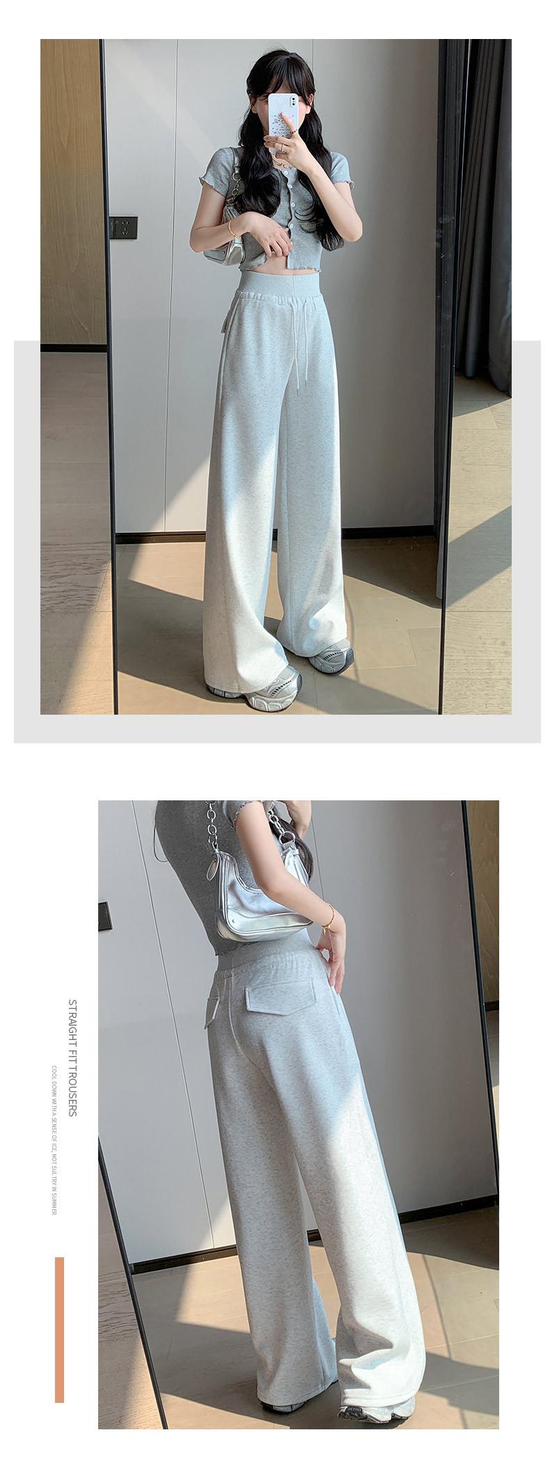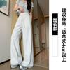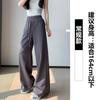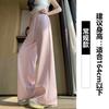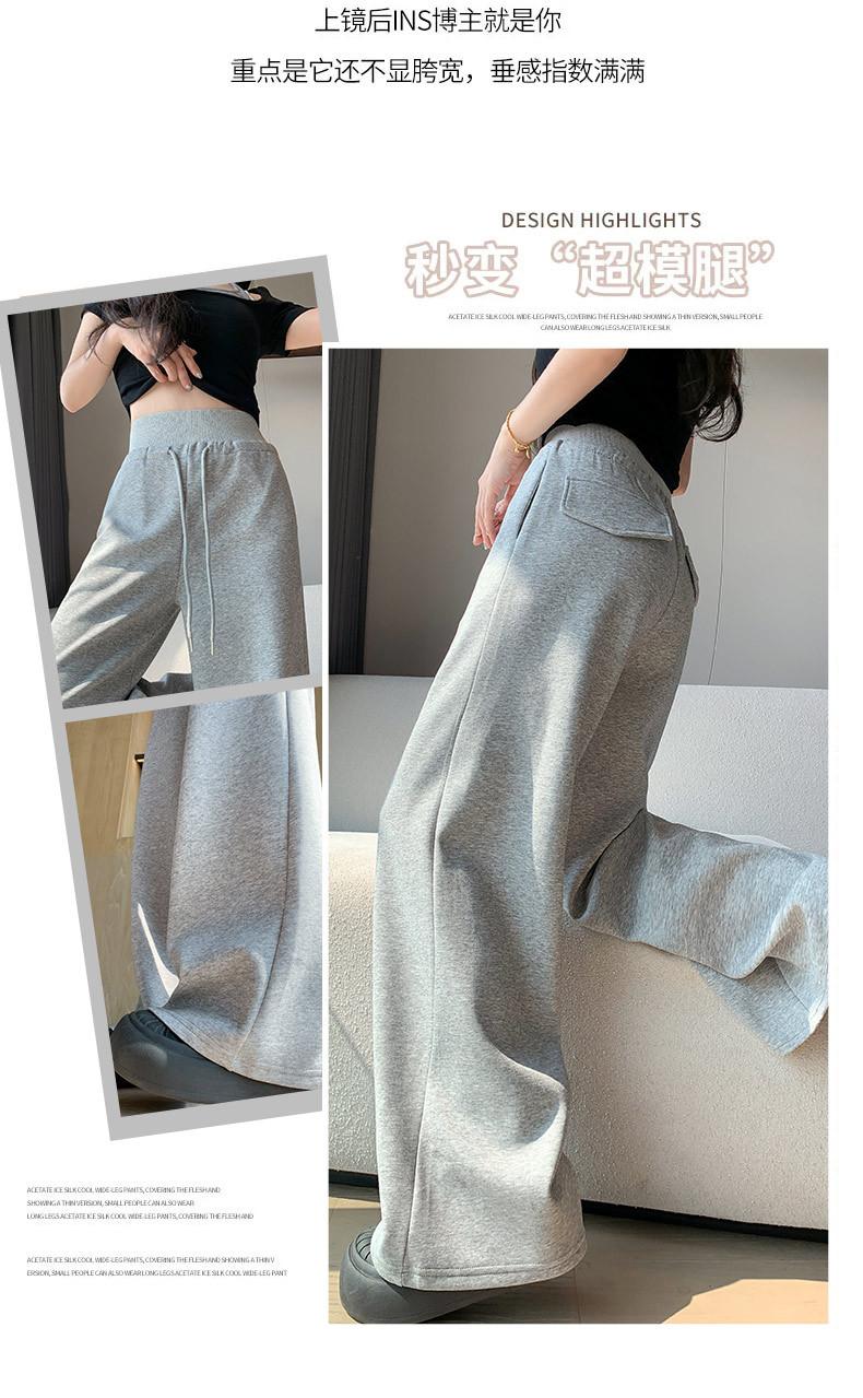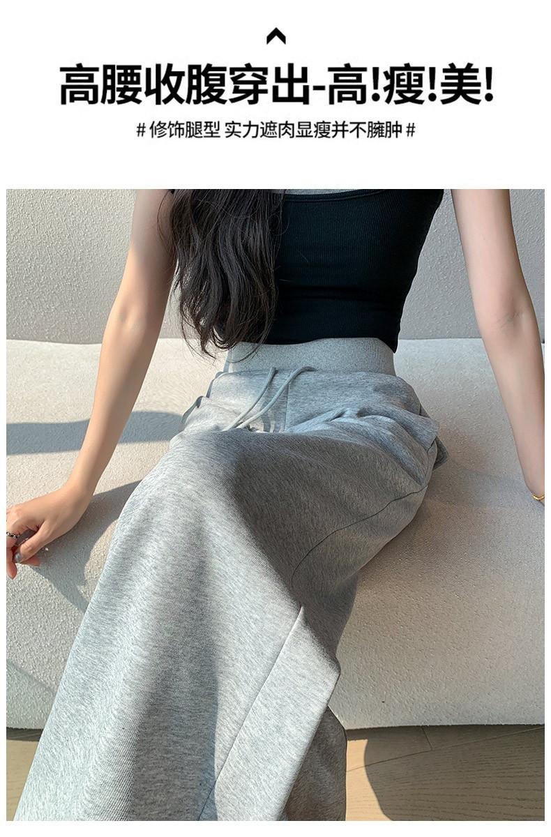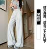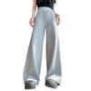 Pantalón de chándal recto blanco-gris para mujer estilo primavera y otoño 2025 cintura alta drapeado delgado talla pequeña casual joggers de pierna ancha