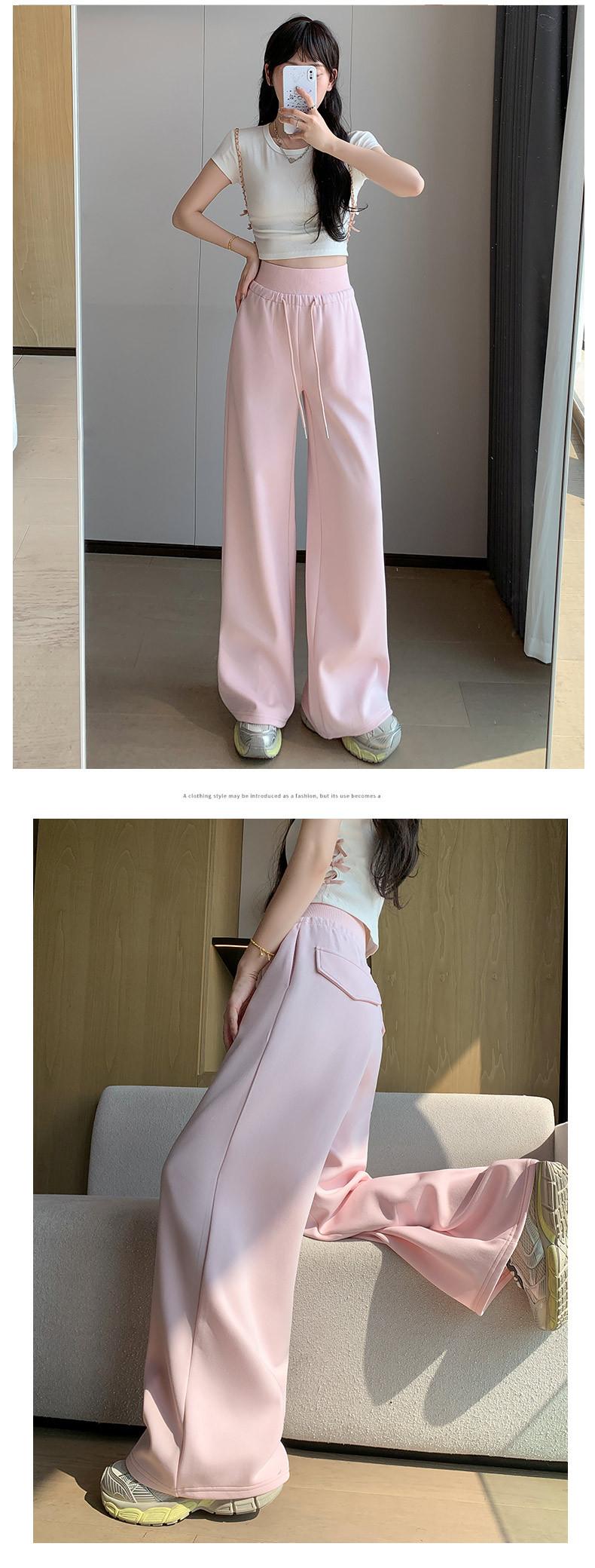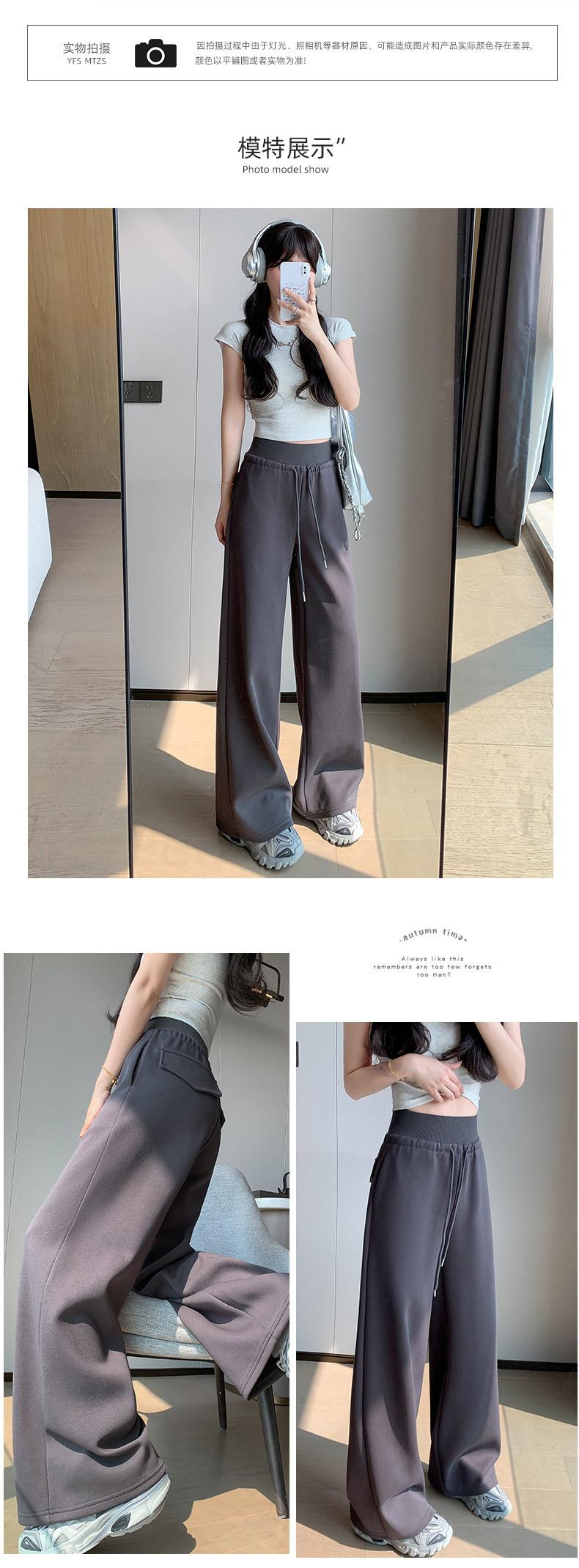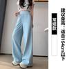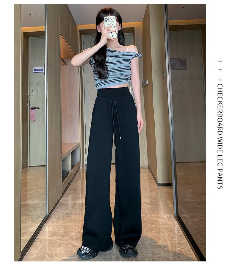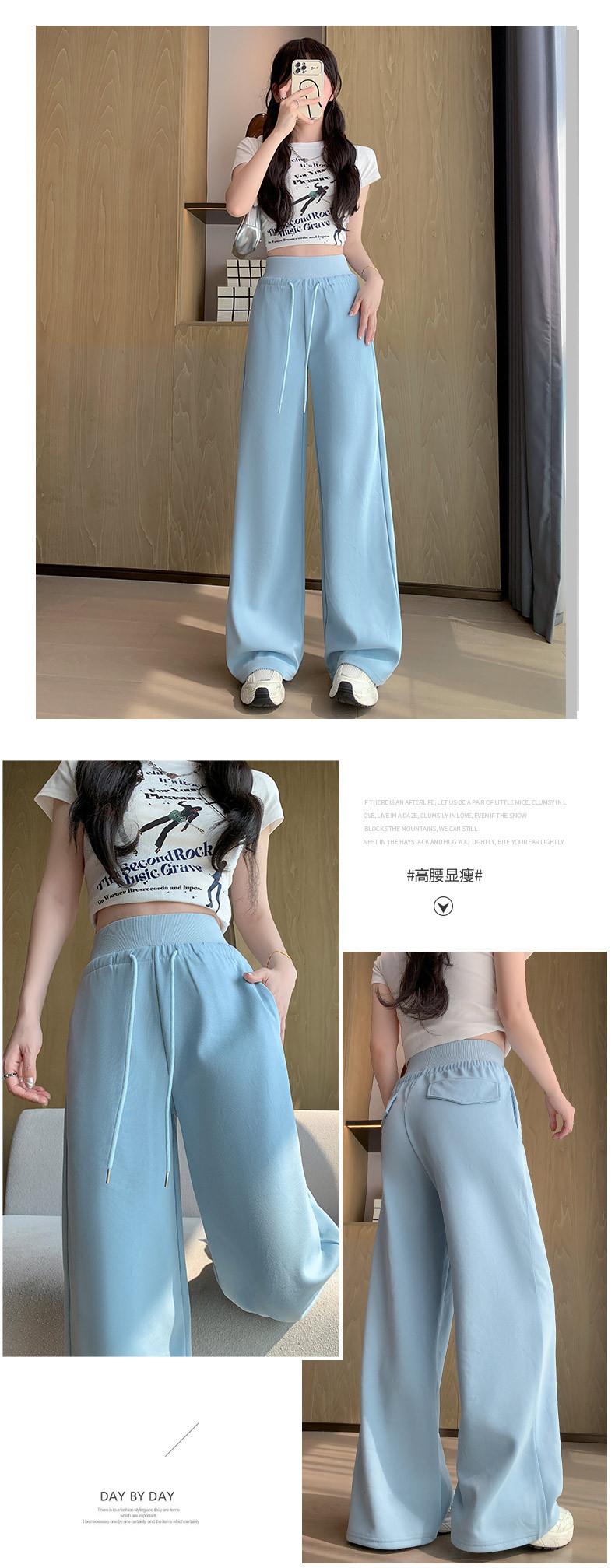 Pantalón de chándal recto blanco-gris para mujer estilo primavera y otoño 2025 cintura alta drapeado delgado talla pequeña casual joggers de pierna ancha