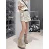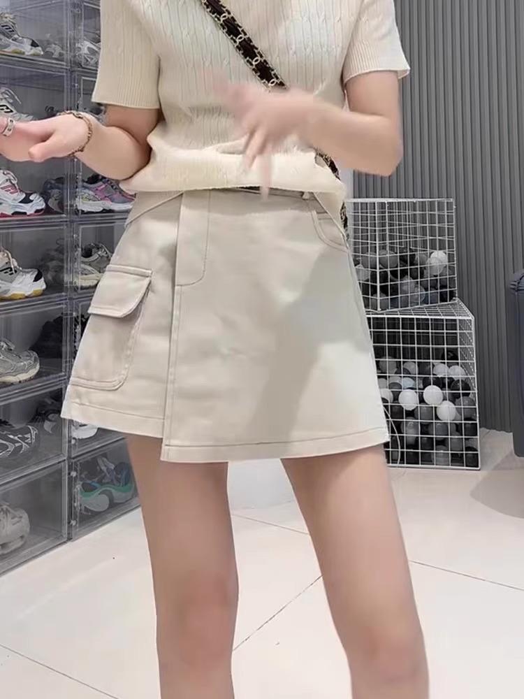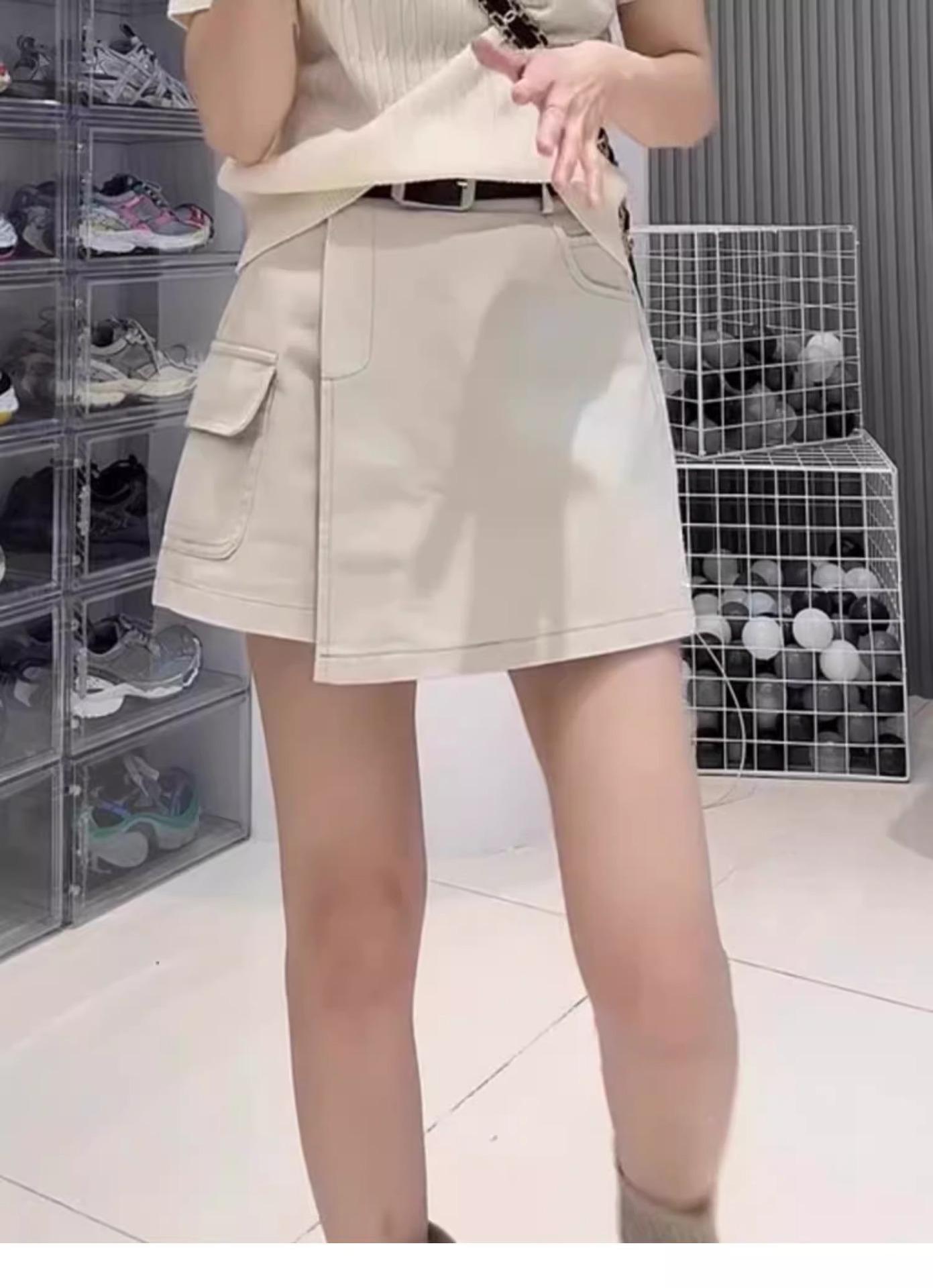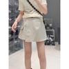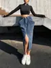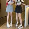 Falda de mezclilla retro irregular para mujer 2025 verano talla grande mm cintura alta adelgazante cubre caderas línea A falda corta pantalones