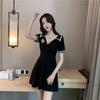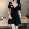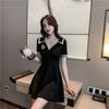 Vestido Corto Sexy de Club Nocturno para Mujer con Cuello en V Profundo, Escotado, Elegante, Estilo Hepburn Ajustado, Vestido Petite Ceñido a la Cintura para Verano
