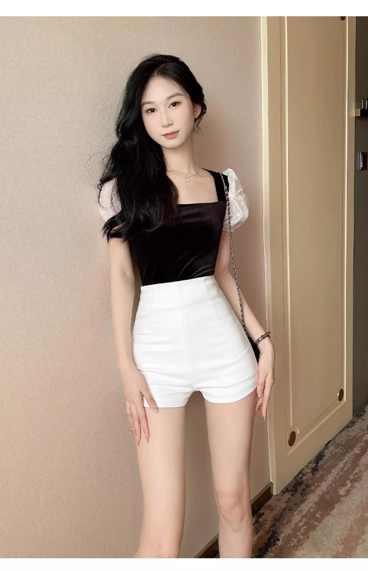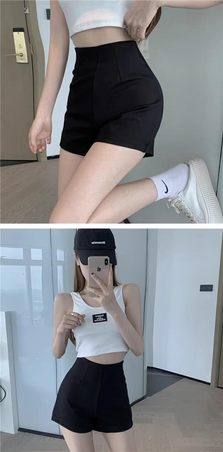 Shorts de Traje Negros para Mujer, Parte Inferior de Línea A para Grupo de Chicas Hot de Verano, Pantalones Casuales, Leggings, Ropa Exterior de Cintura Alta