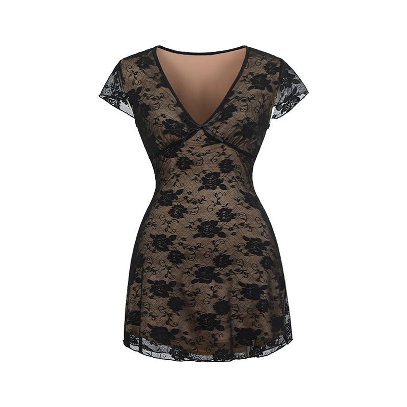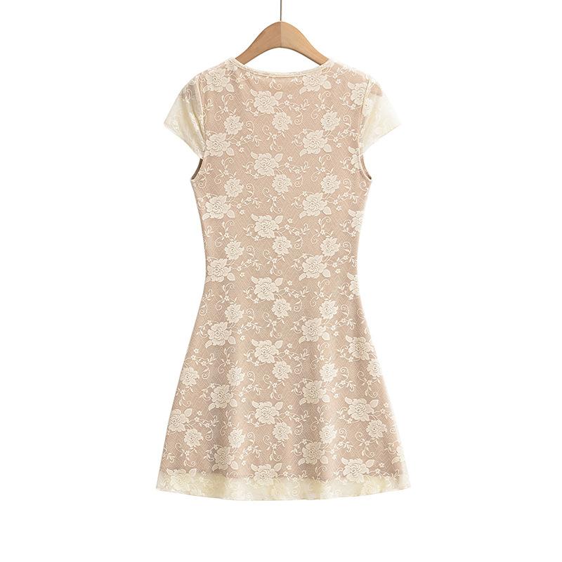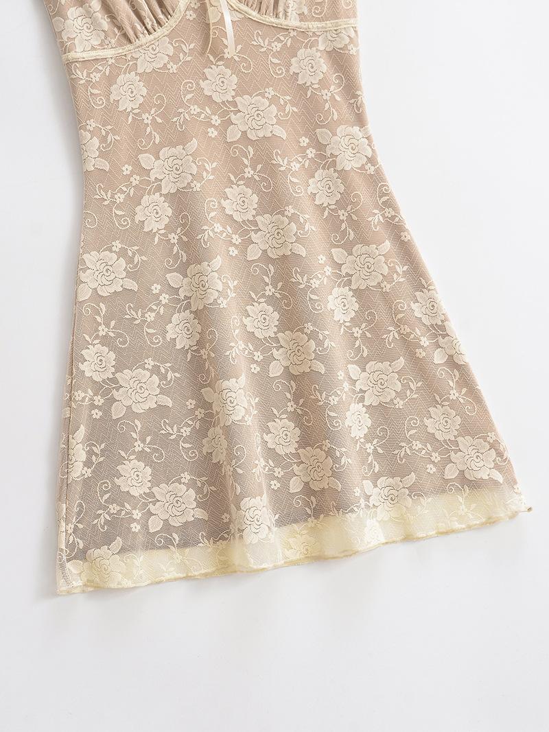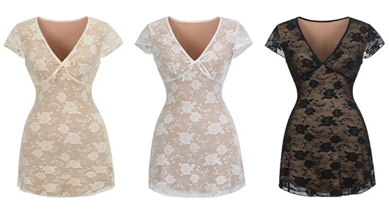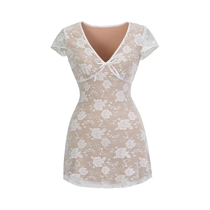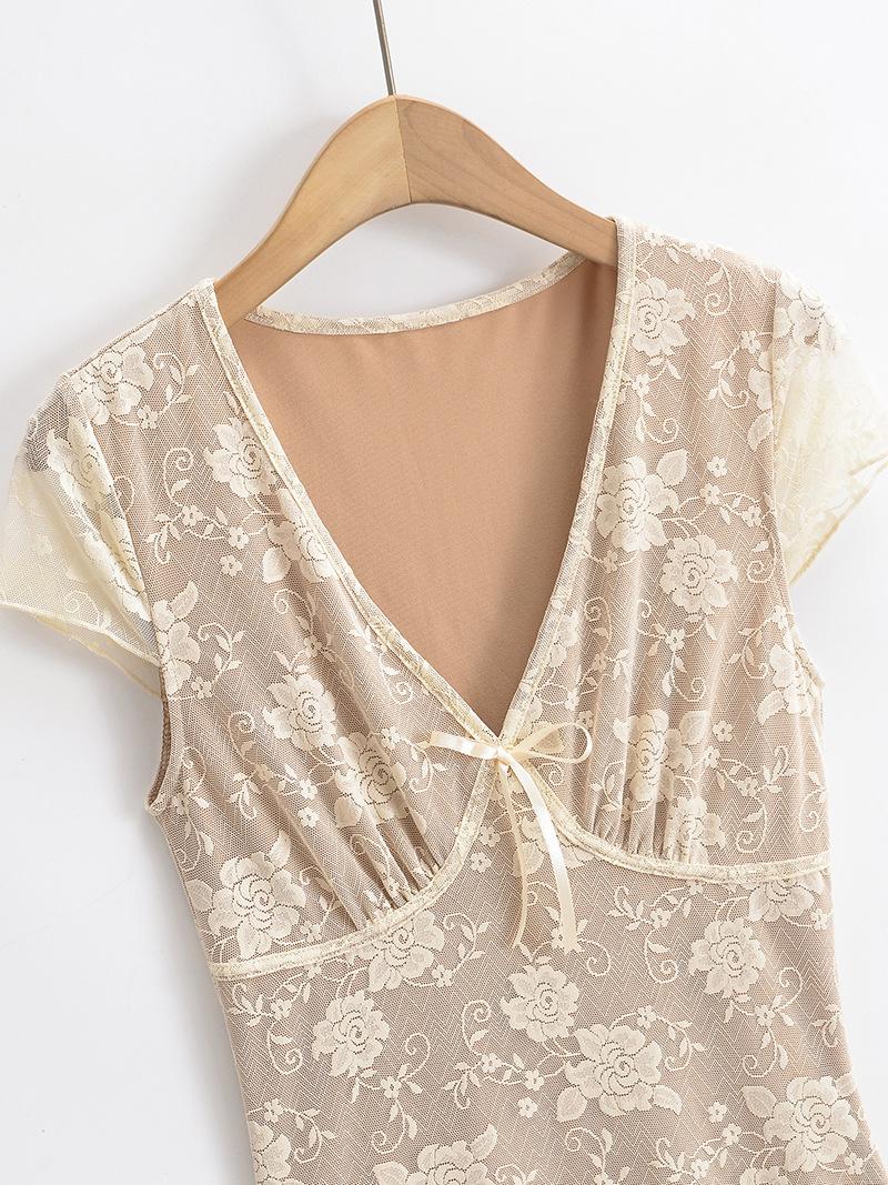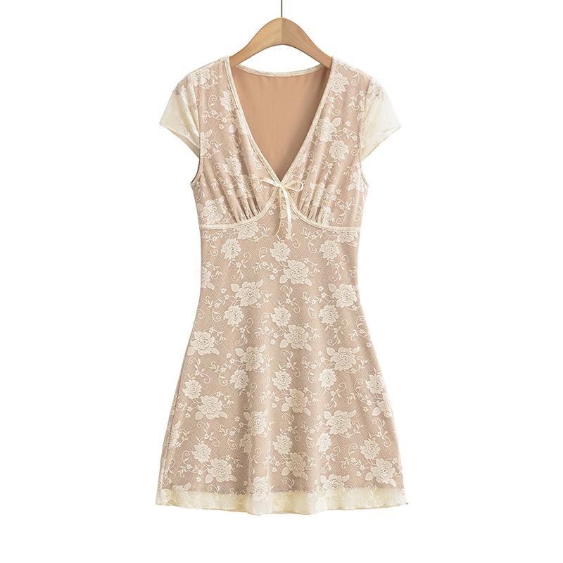 2025 Verano Nuevo Vestido de Mujer Estilo Francés Estilo Puro Chica Caliente Sexy Cuello en V Profundo con Lazo en la Cintura y Volantes