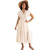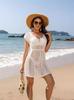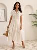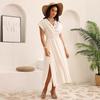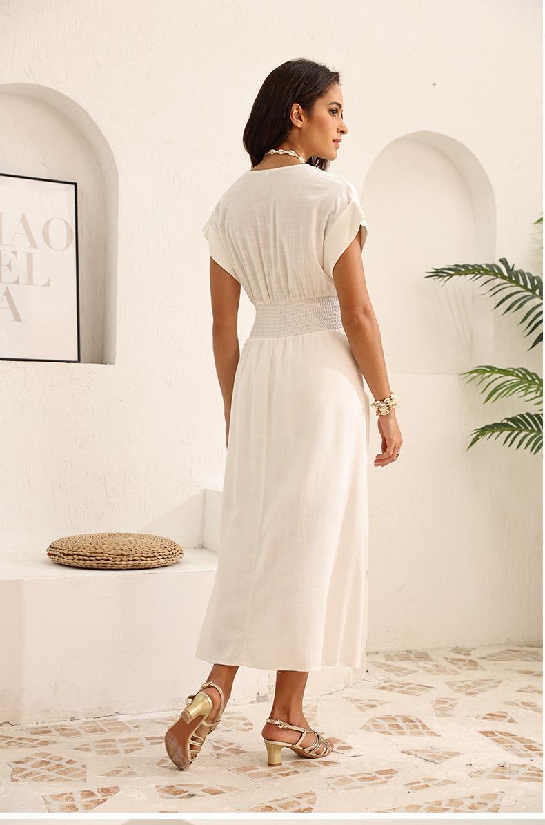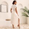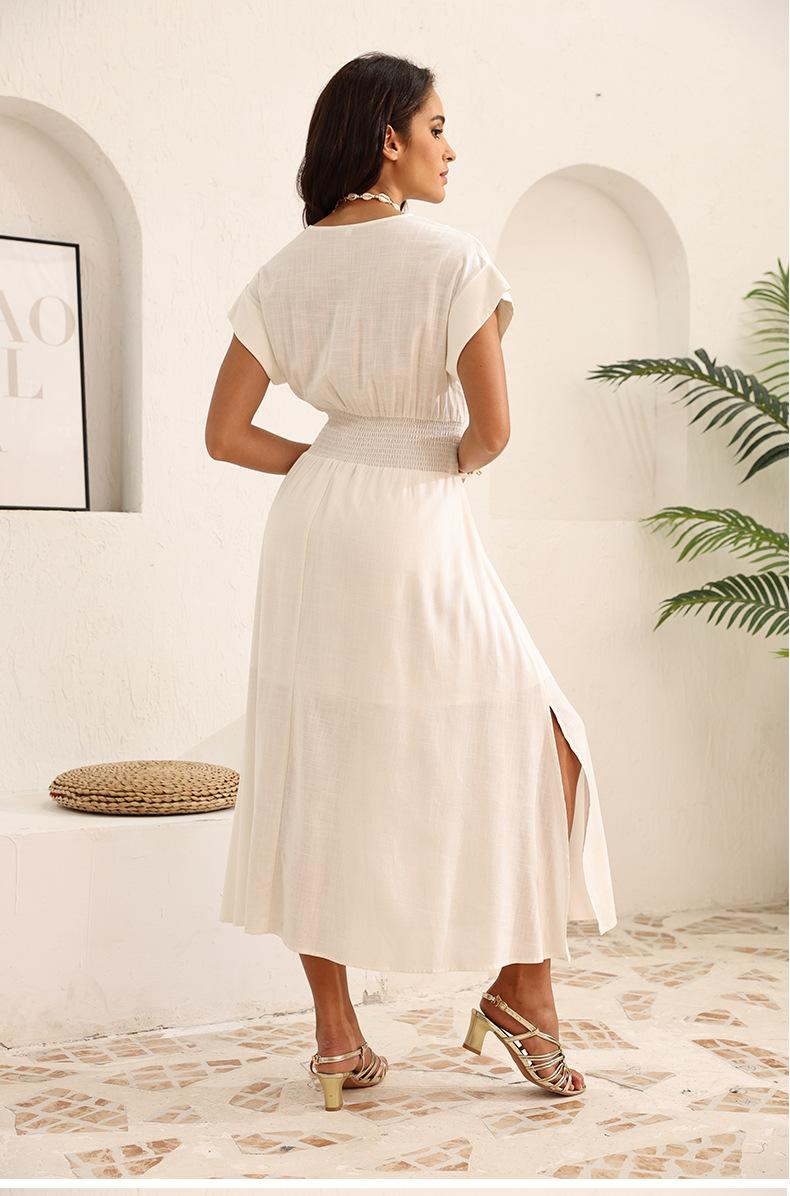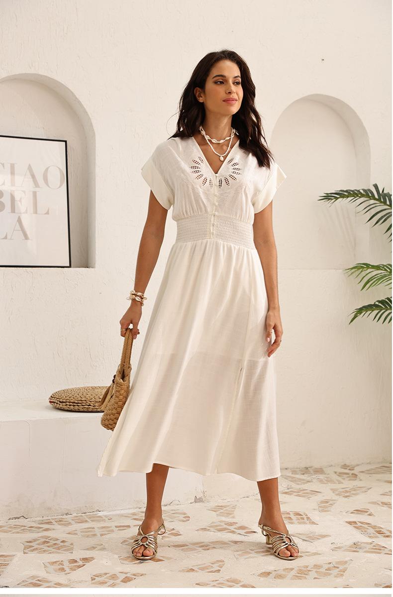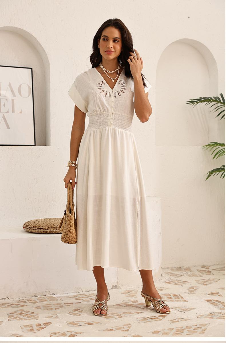 Europeo y Americano Transfronterizo Verano Nuevo Estilo Recorte Bordado Cintura Cuello en V Vestido Estilo Resort Francés Elegante Abertura Falda Larga