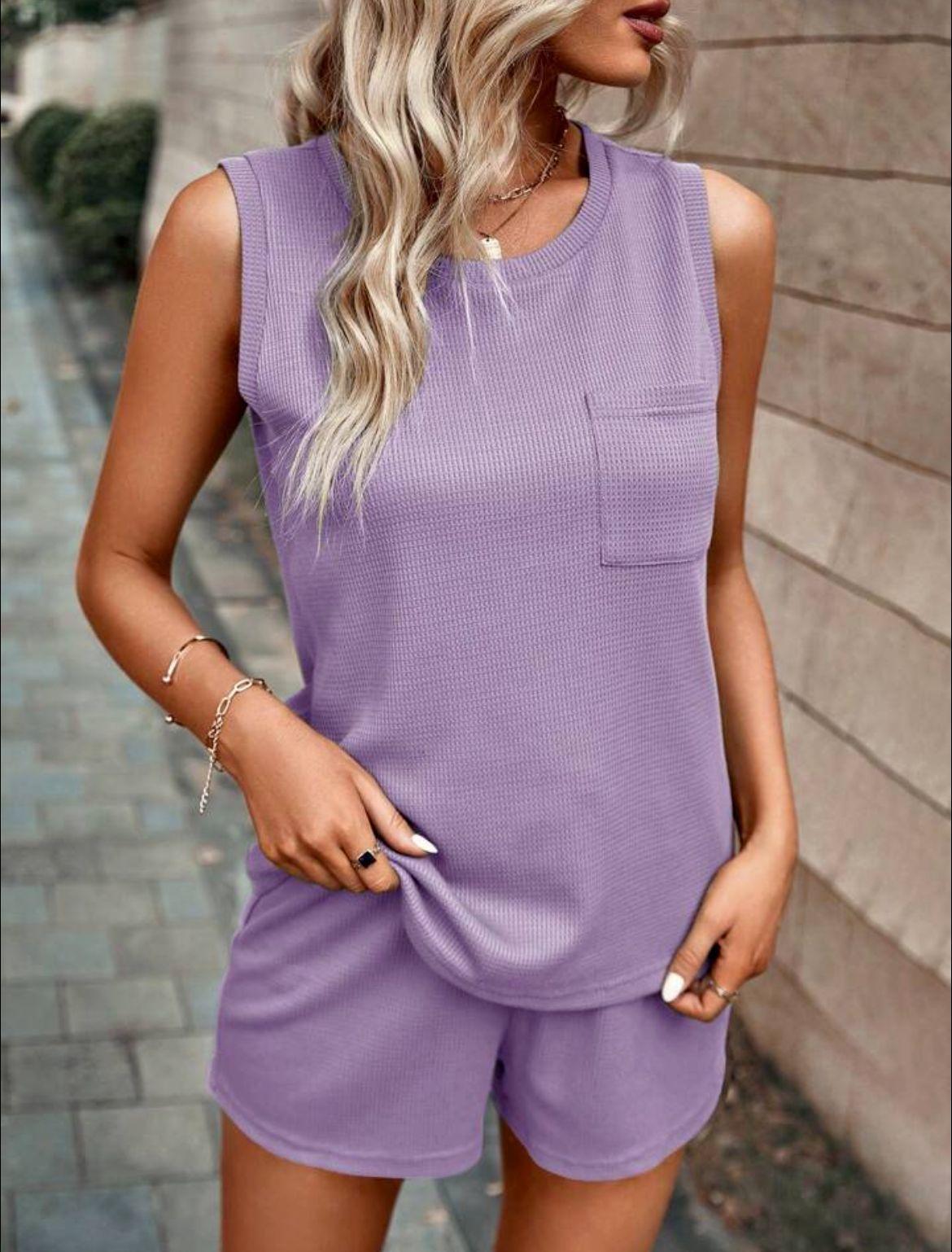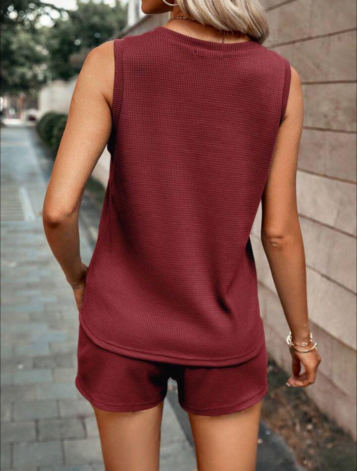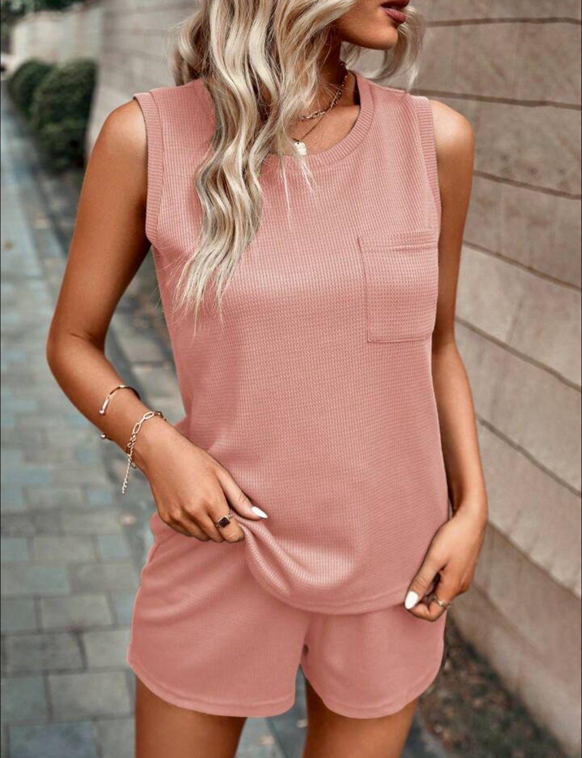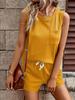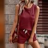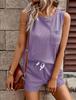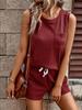 2025 Amazon Primavera y Otoño Nuevo Traje de Shorts de Cuello Redondo de Color Sólido para Mujer Transfronterizo Europeo y Americano