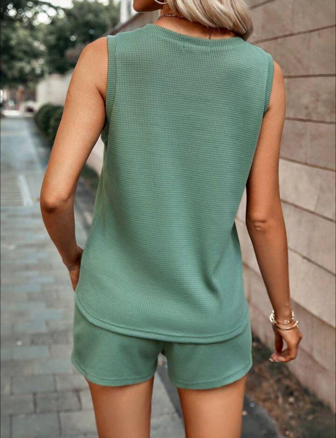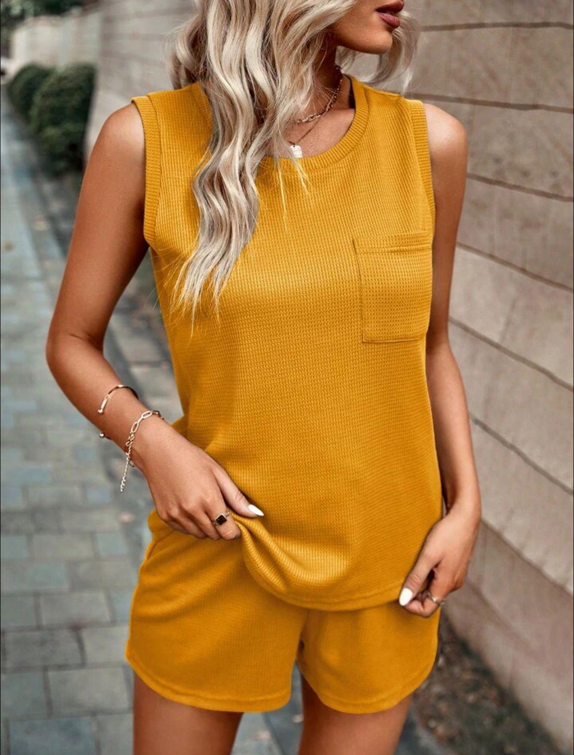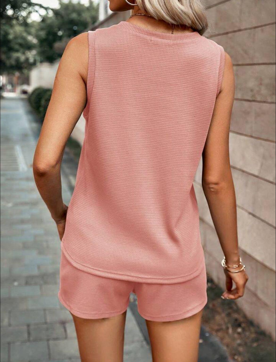 2025 Amazon Primavera y Otoño Nuevo Traje de Shorts de Cuello Redondo de Color Sólido para Mujer Transfronterizo Europeo y Americano