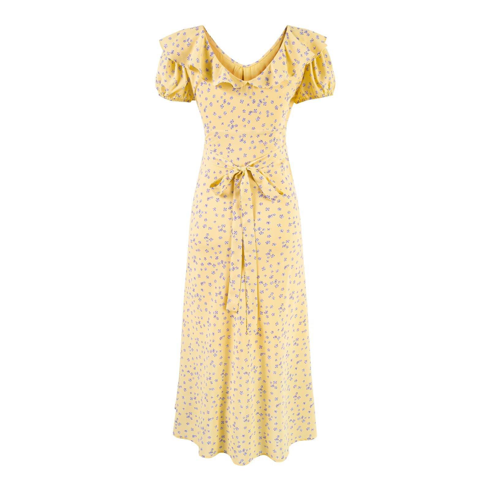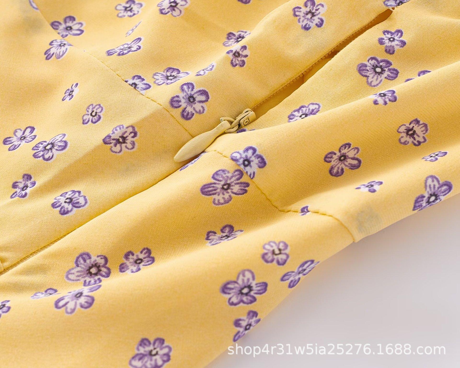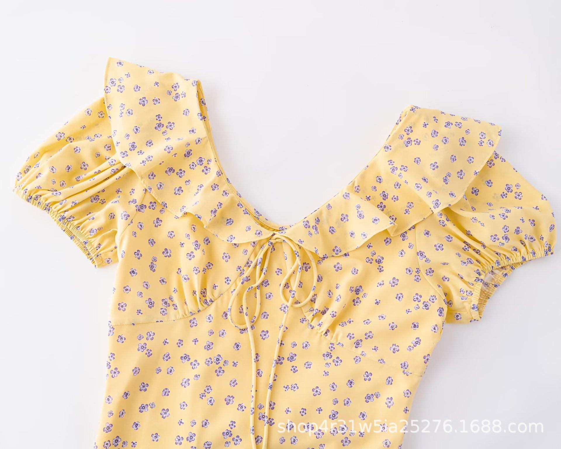 Estilo Francés Suave, Vestido Floral de Estilo Pastoral Dulce y Rejuvenecedor, Falda Elegante de Largo Medio con Volantes y Cuello en V para Mujer