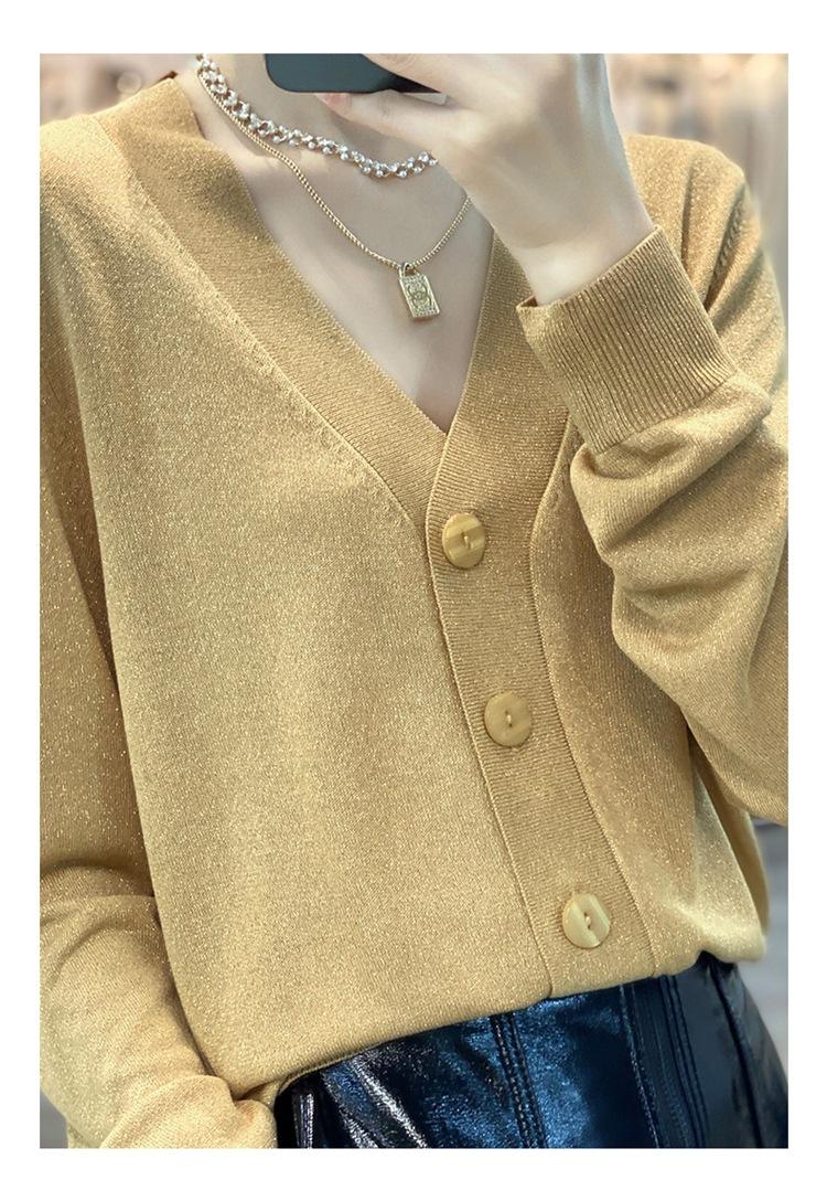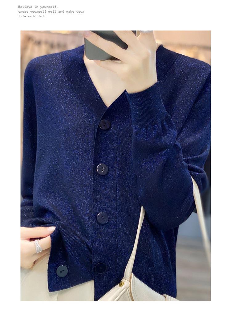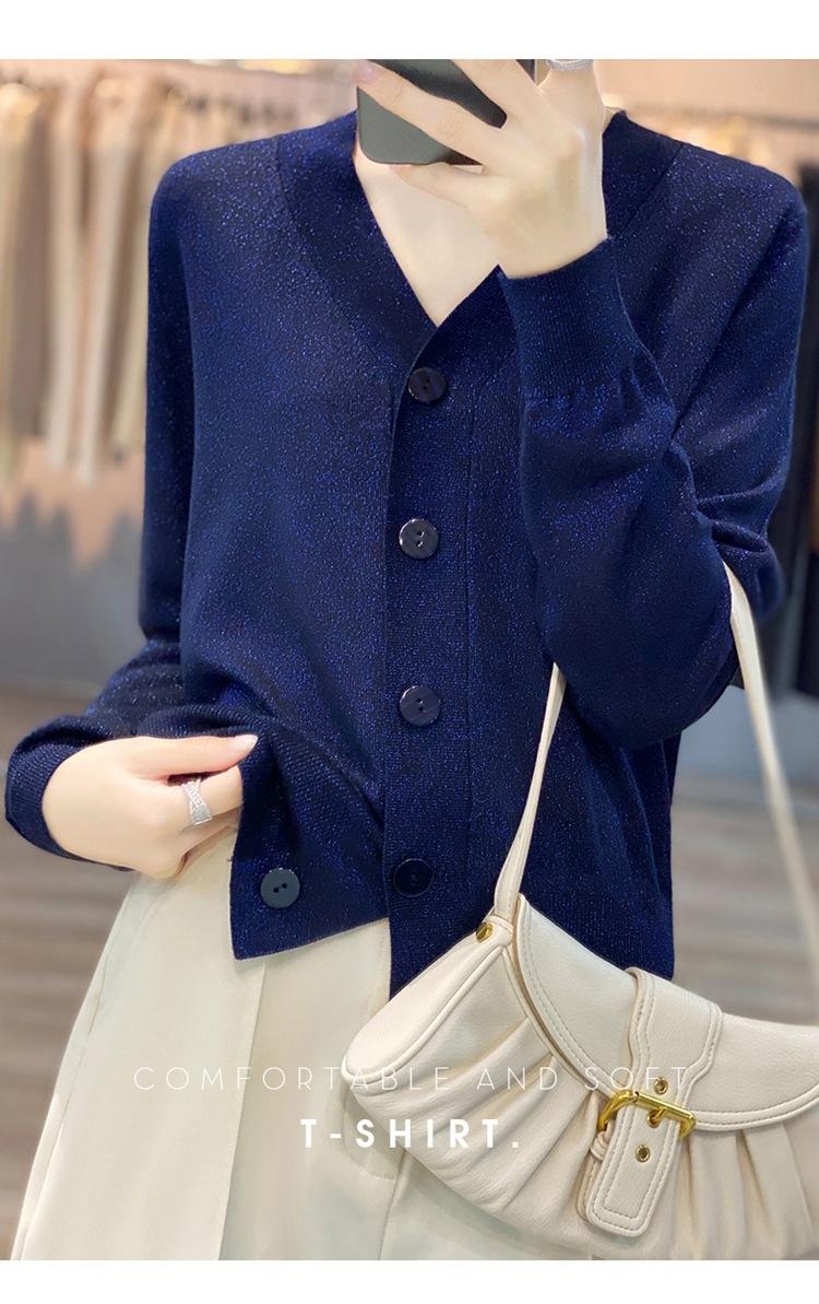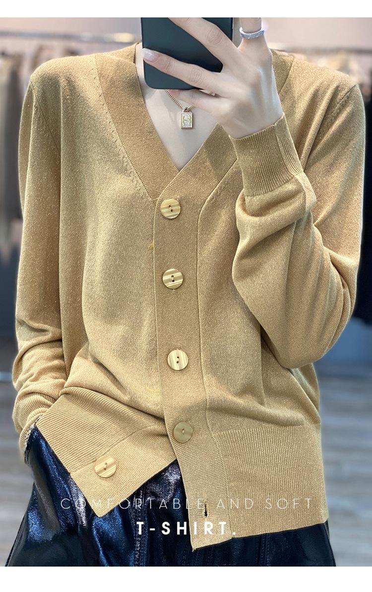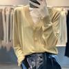 Cárdigan nuevo de primavera y otoño 2024 para mujer, cuello en V, color sólido, manga larga, top holgado, suéter, abrigo, top