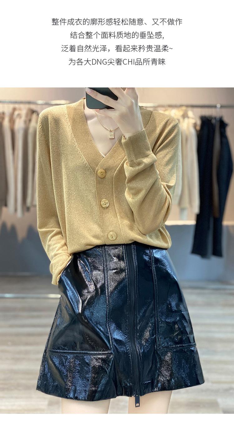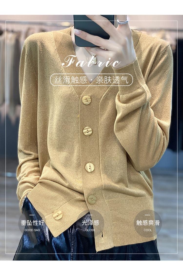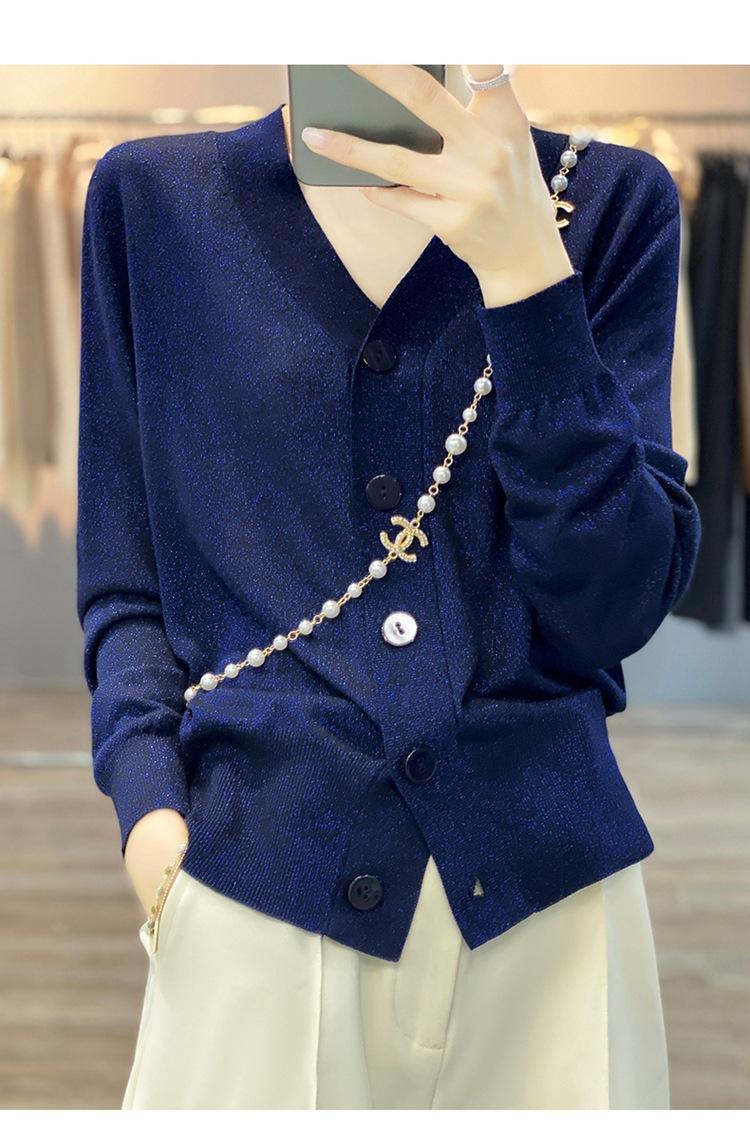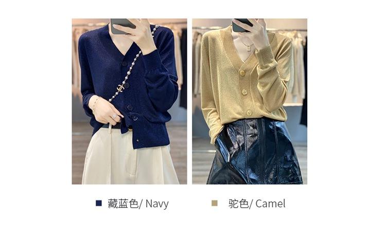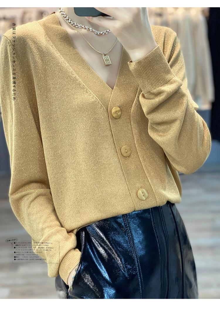 Cárdigan nuevo de primavera y otoño 2024 para mujer, cuello en V, color sólido, manga larga, top holgado, suéter, abrigo, top