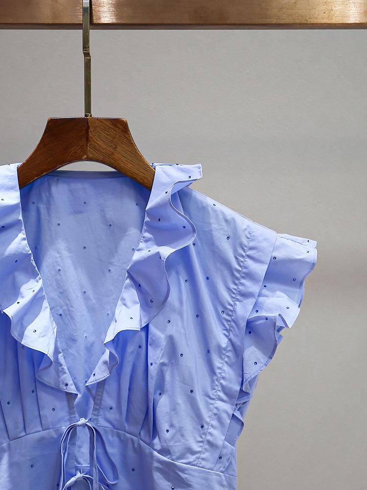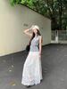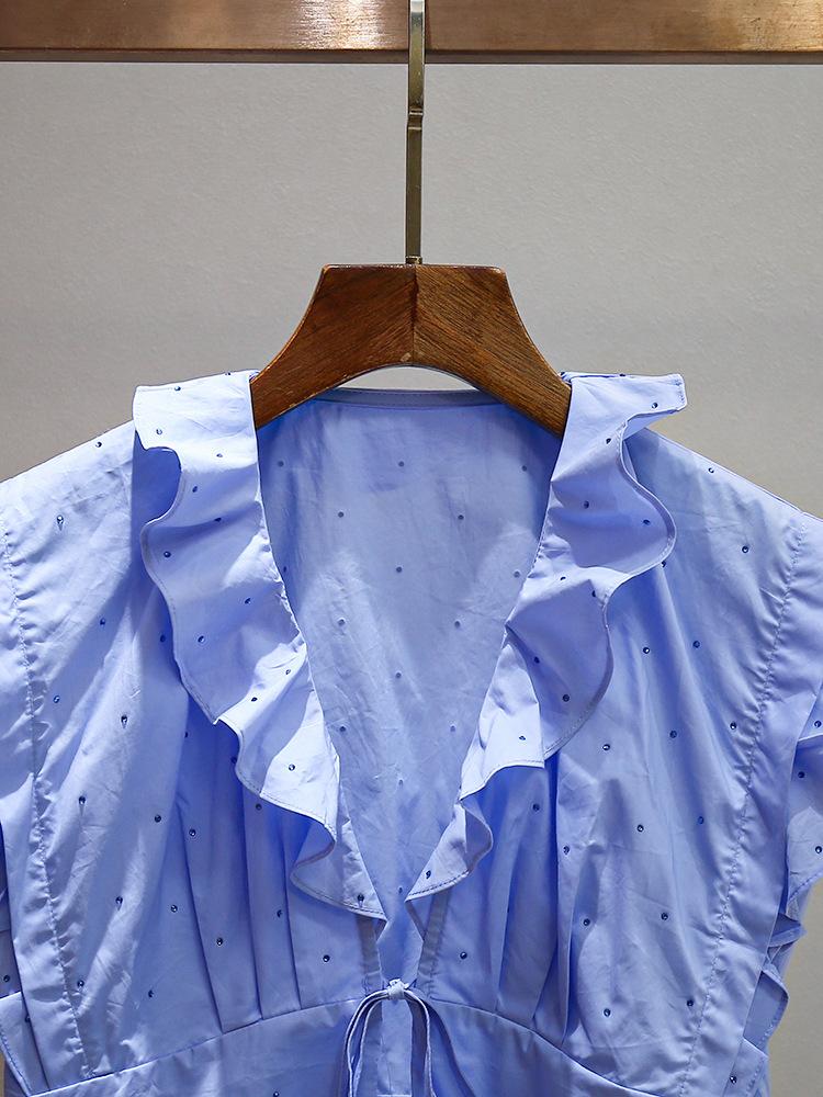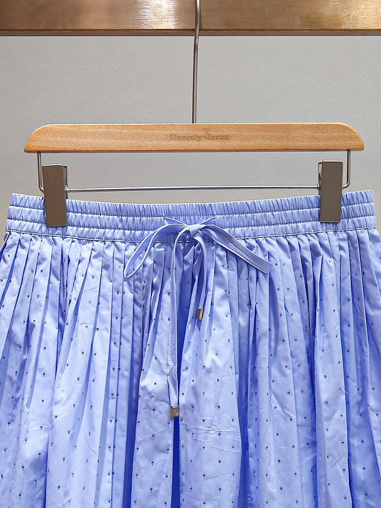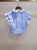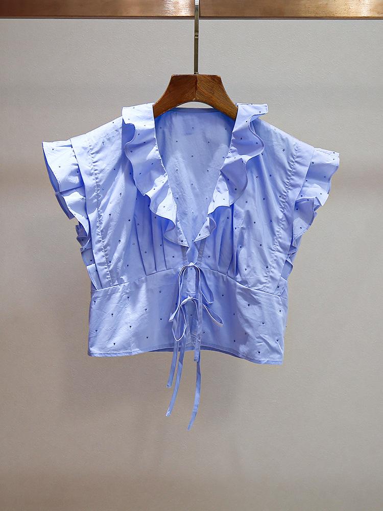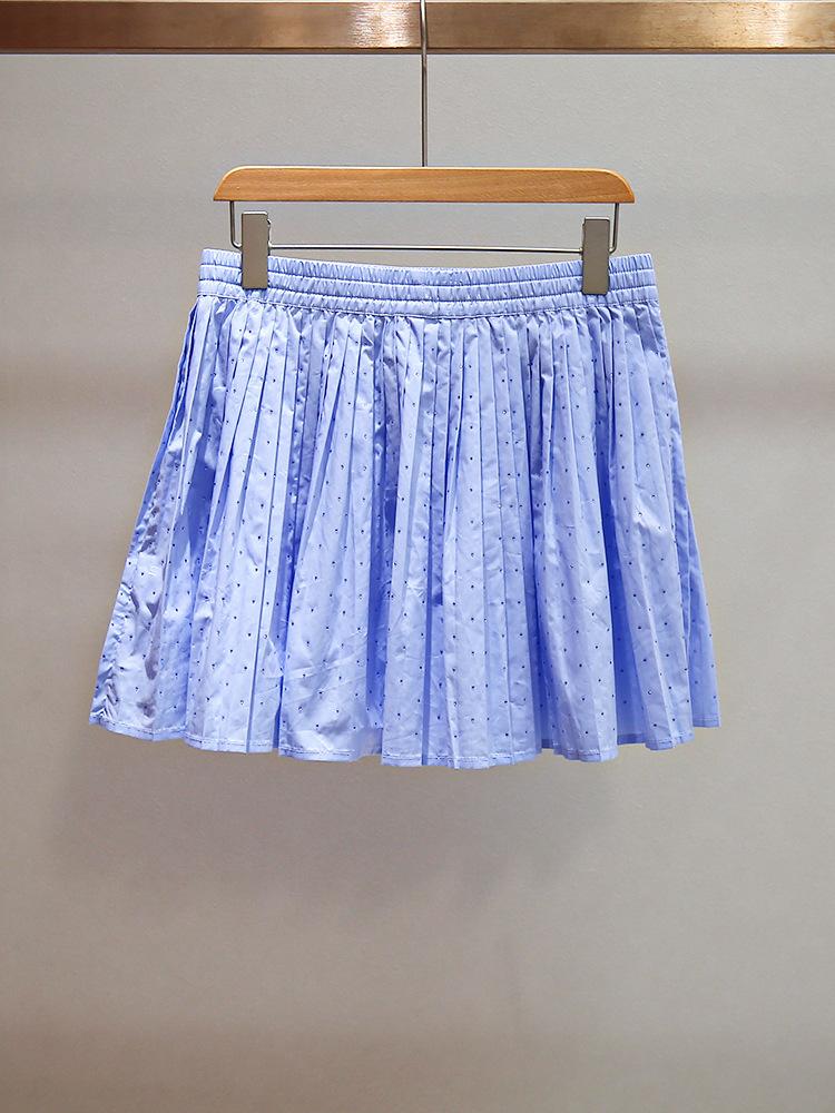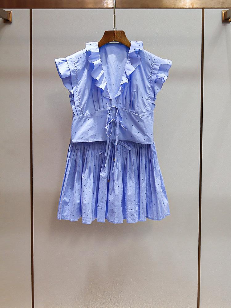Nuevo Estilo de Verano para Mujer Top Nicho Francés con Lazo y Volantes + Falda Plisada con Diamantes Traje de Dos Piezas