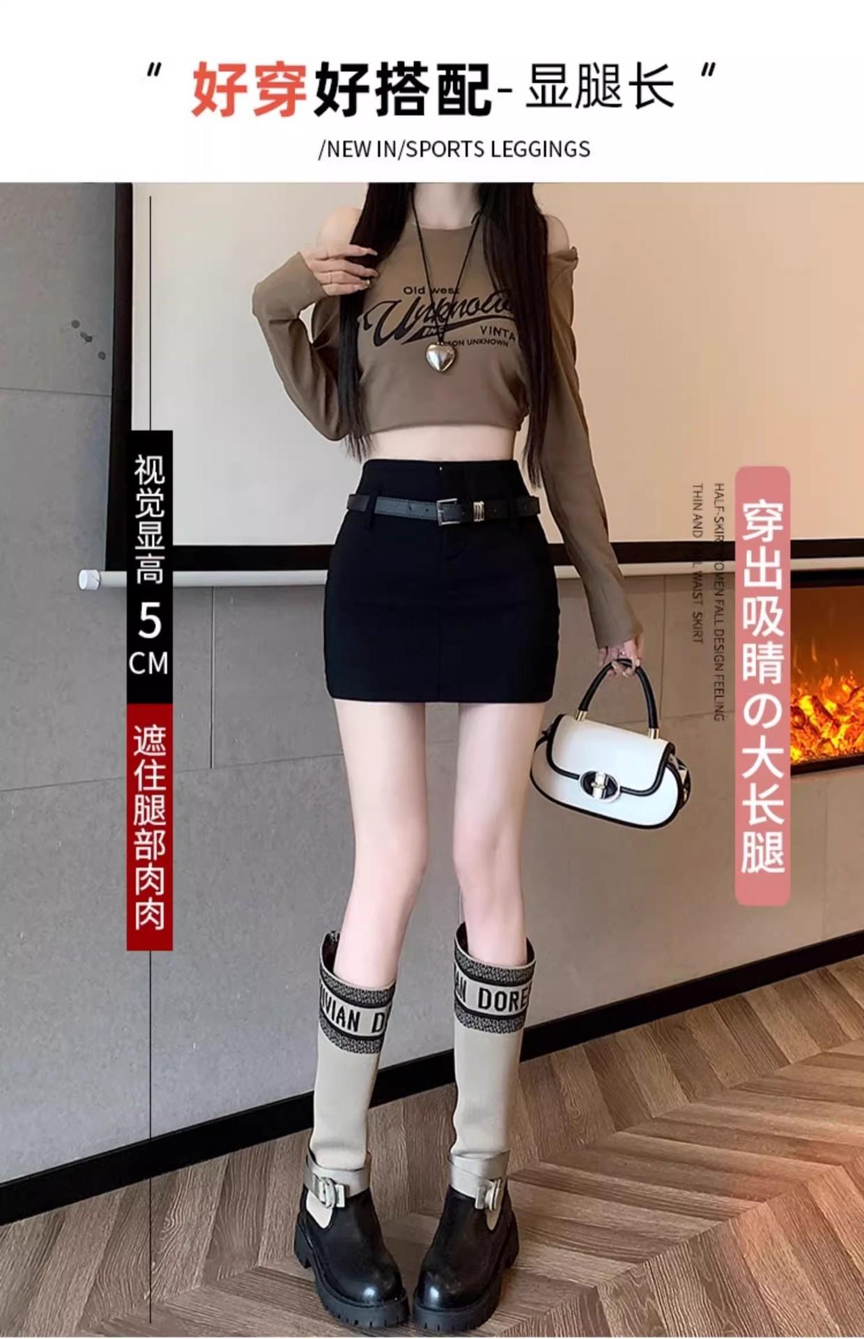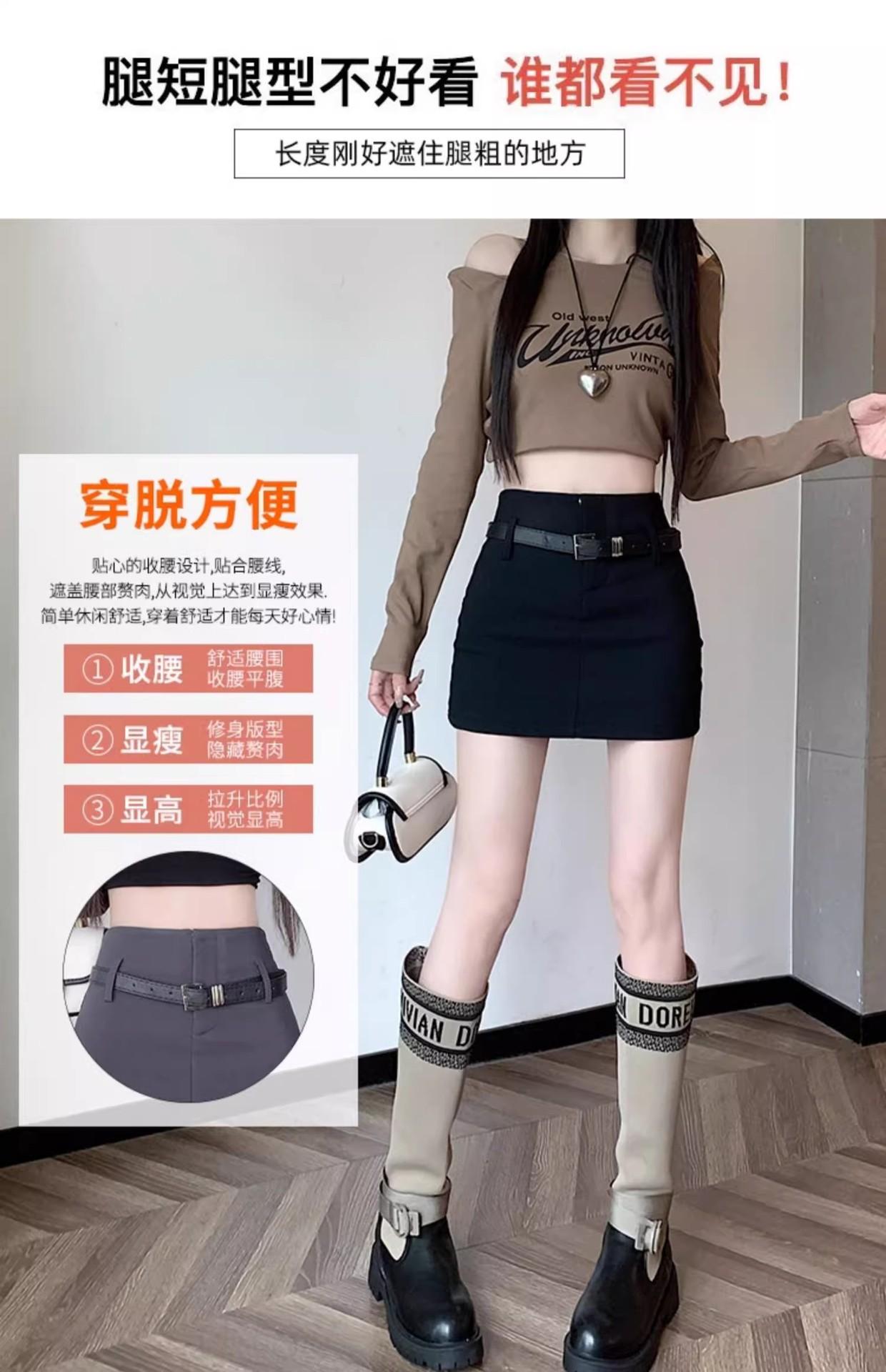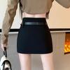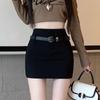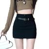 Falda Midi de Traje Negro Mujer 2024 Nuevo Verano Cintura Alta Petite Chica Caliente Sexy Línea A Bodycon Falda Corta
