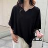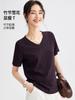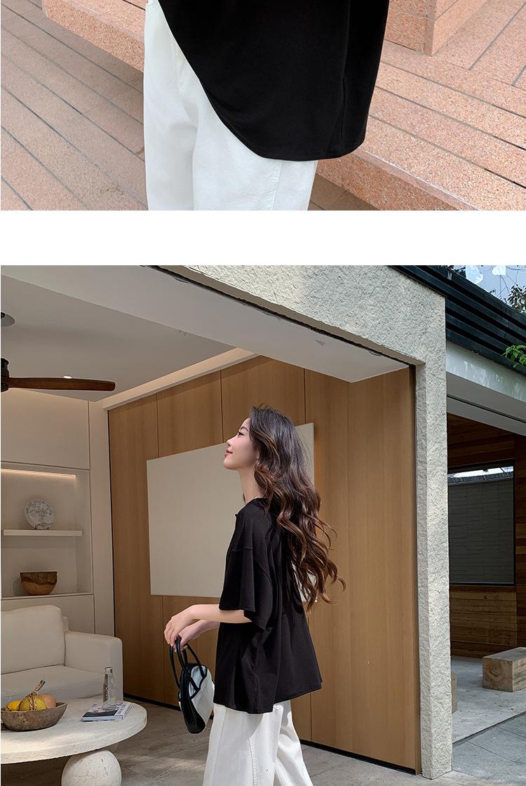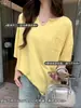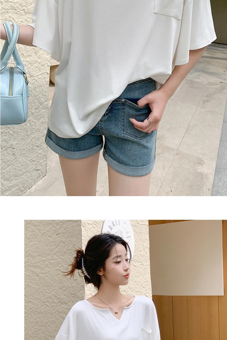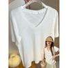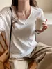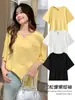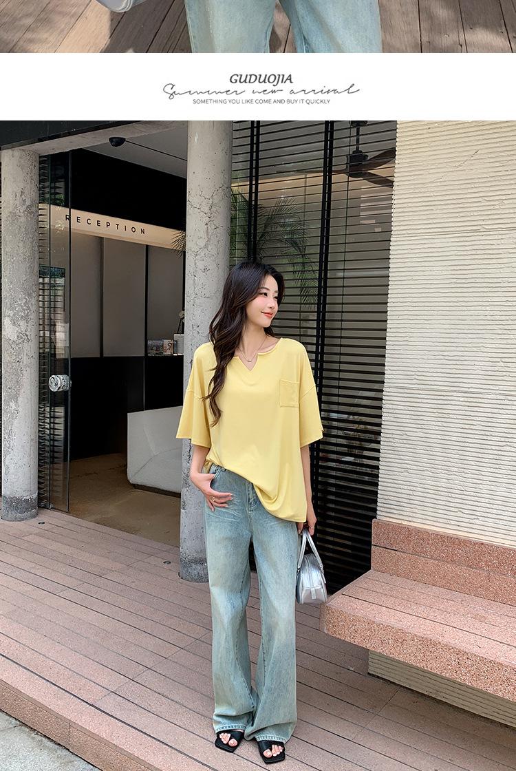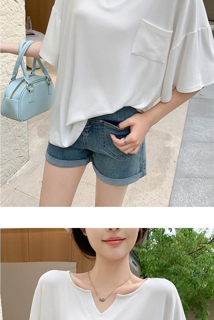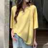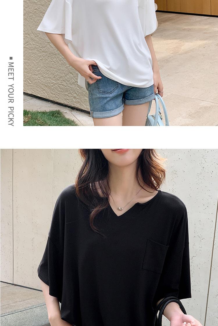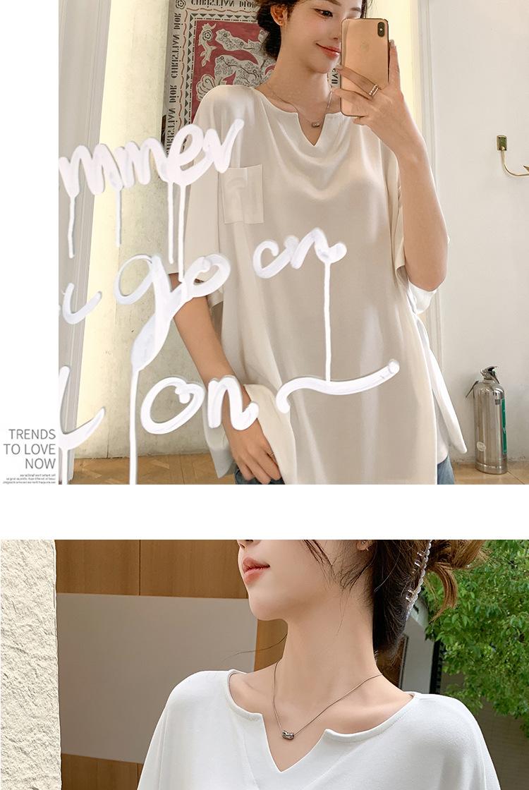 H591 Camiseta de Bolsillo Personalizada con Cuello en V y Manga Corta para Mujer, Estilo Veraniego Relajado, Holgada Adelgazante Color Sólido Top Simple Versátil