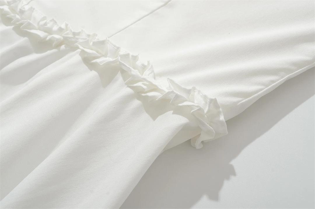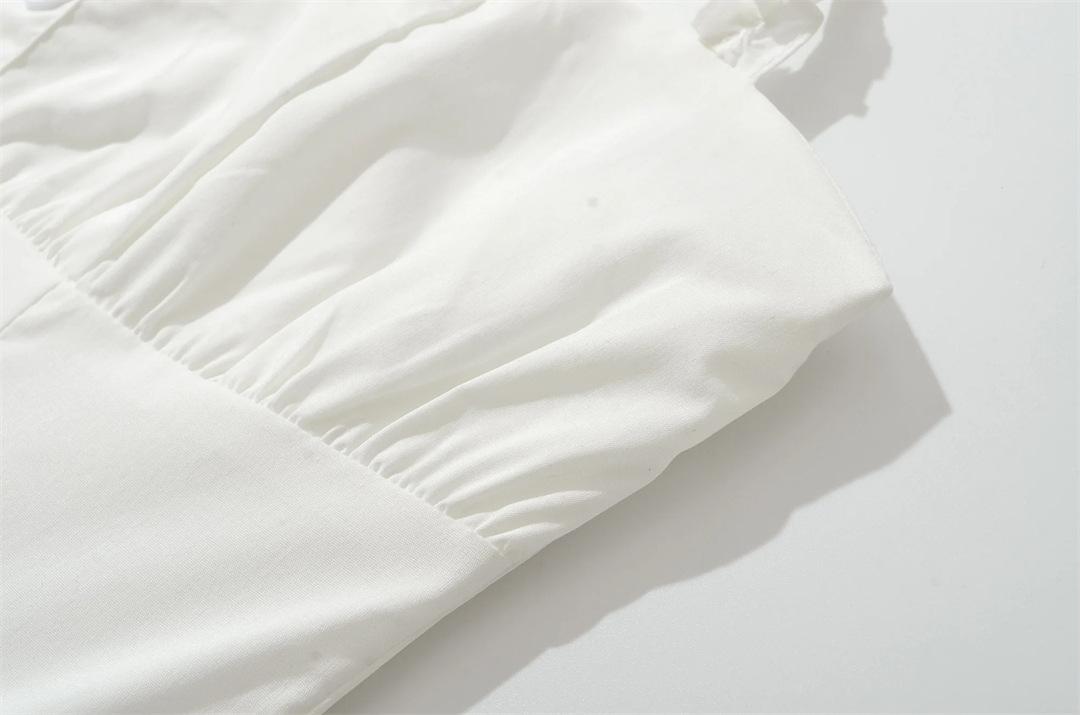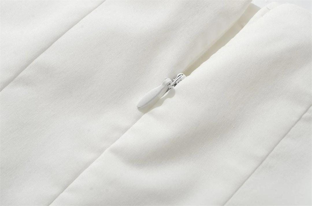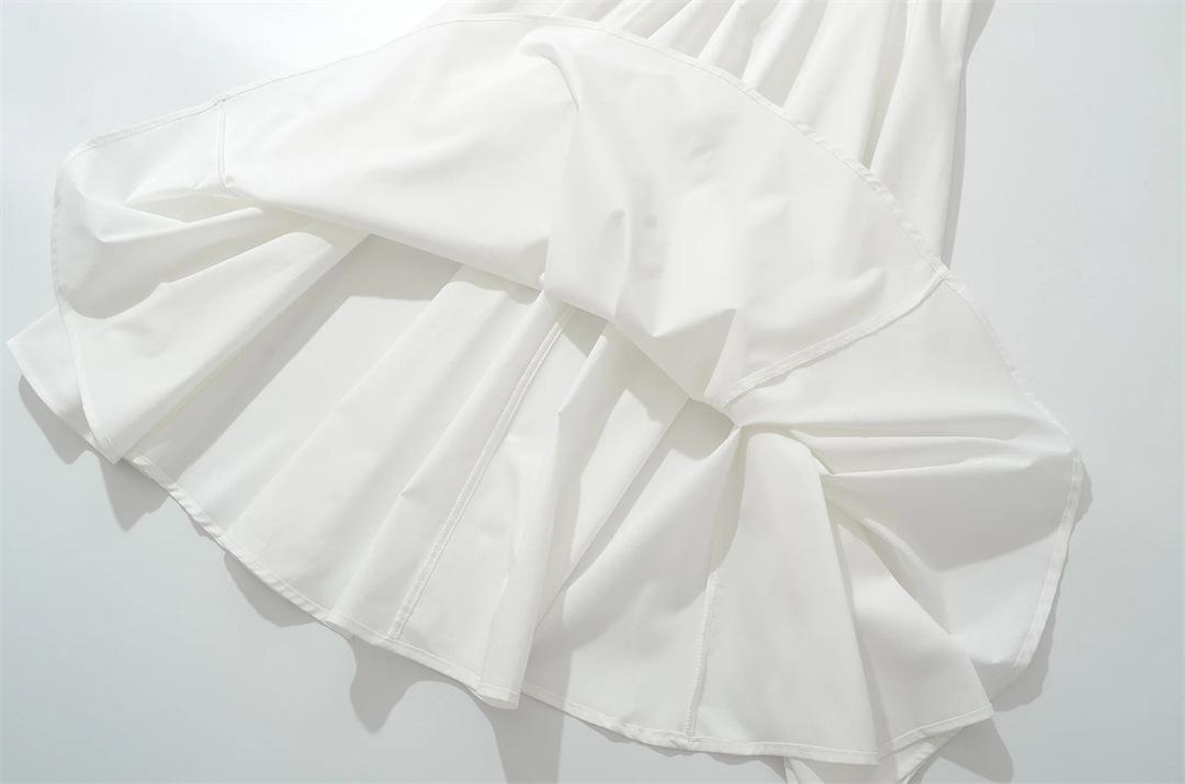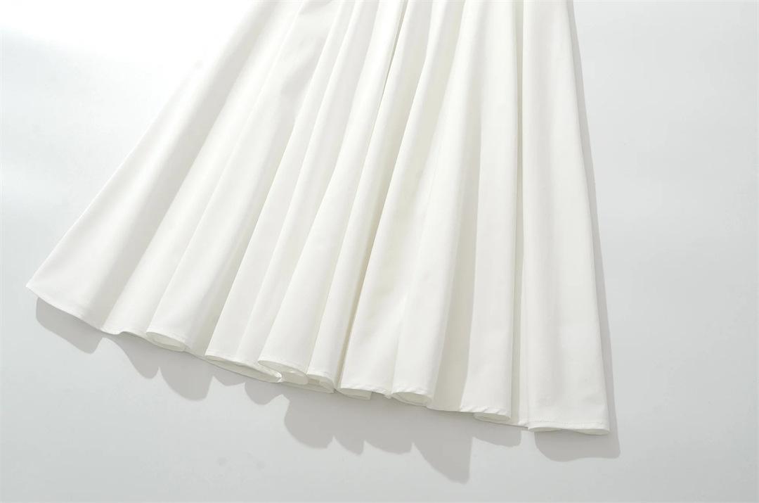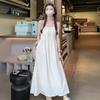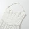 Vacaciones Francesas en la Costa Vestido Blanco con Tirantes Halter para Mujer Sexy Espalda Descubierta Fruncido Recogido en la Cintura Vestido Largo de Gran Vuelo Plisado