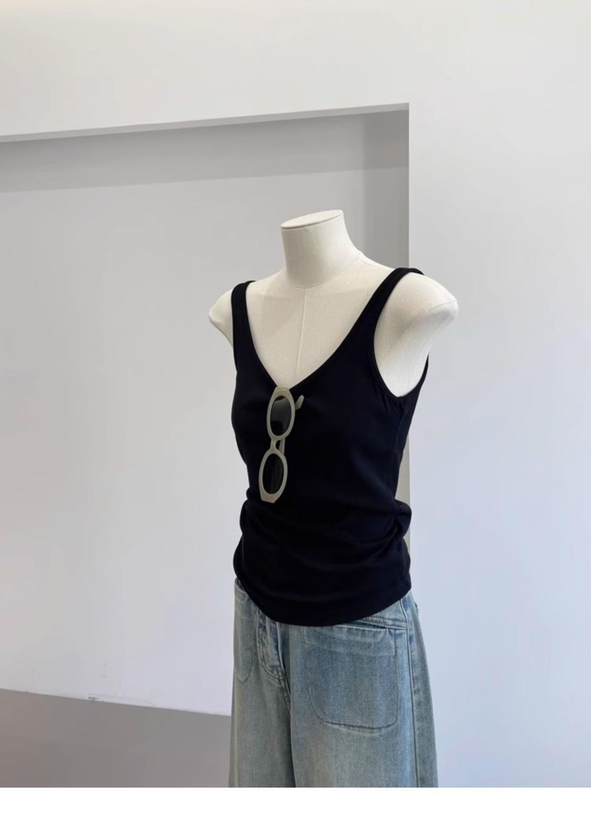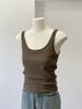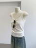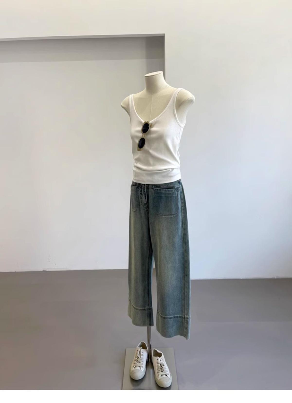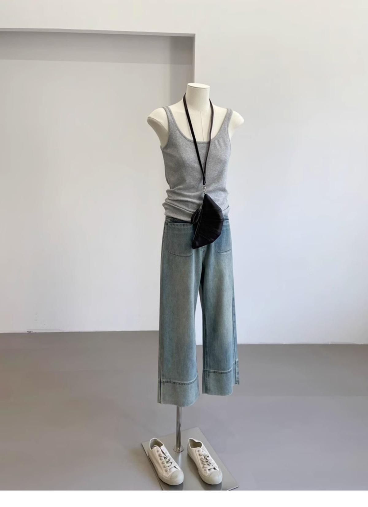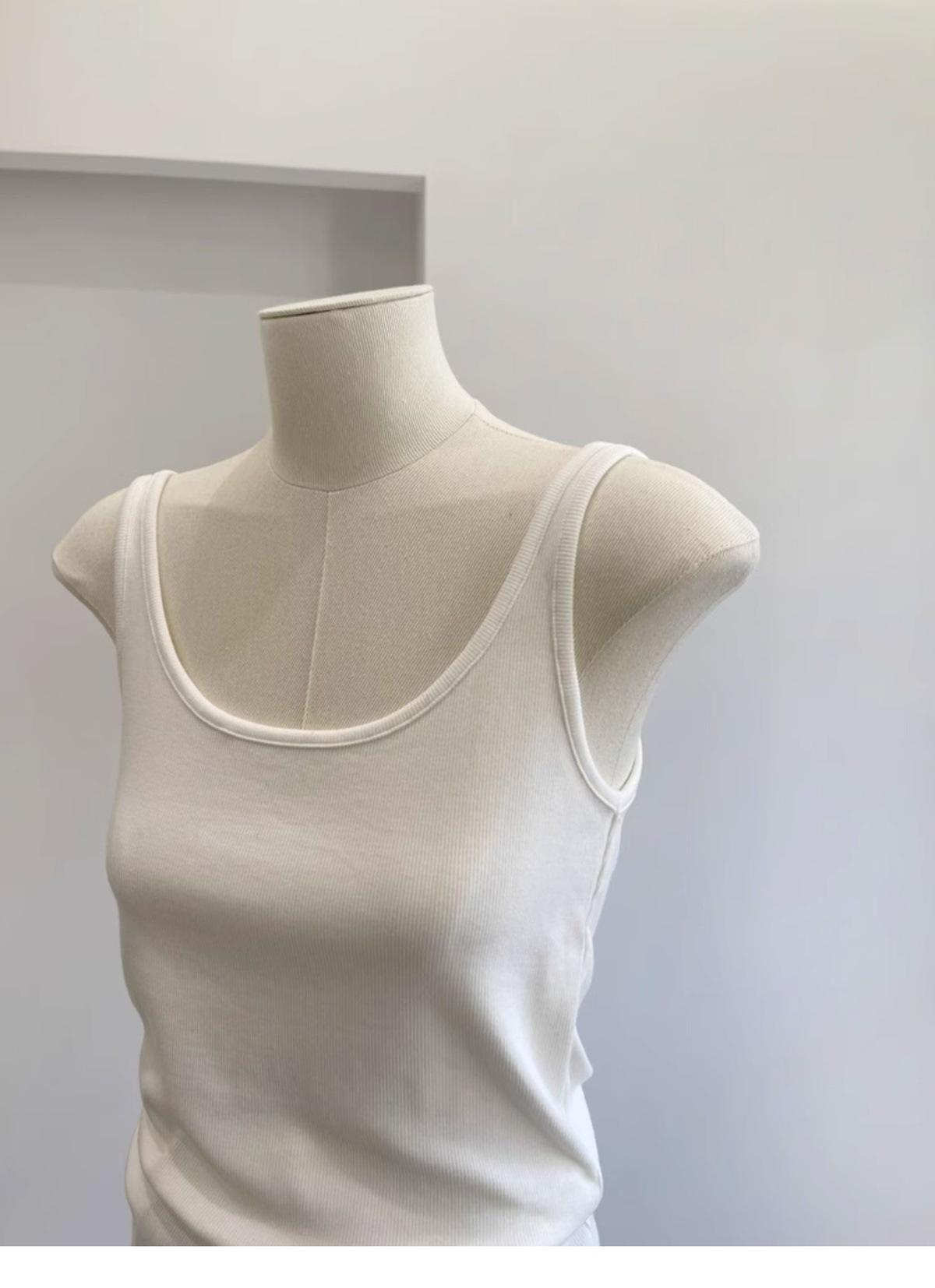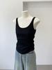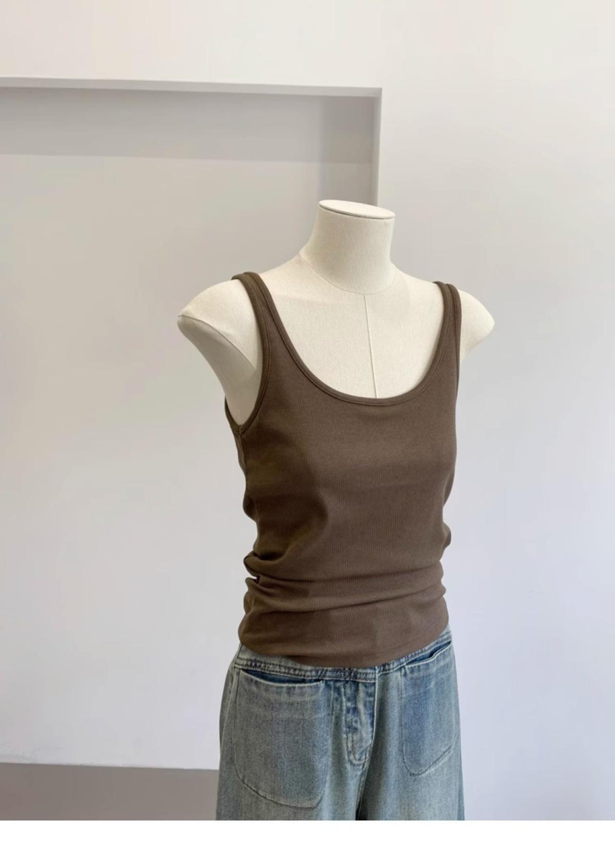 Camisola de Algodón Acanalado con Cuello en U Gris para Mujer, Verano Versión Coreana, Top Básico Blanco Adelgazante Versátil Sencillo sin Mangas