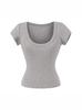 Camiseta de Manga Corta con Cuello U y Hombro Regular Estilo Deseo Puro 2025 Verano Nueva Versátil Ajustada Corta Top Básico para Chica Hot