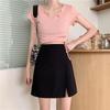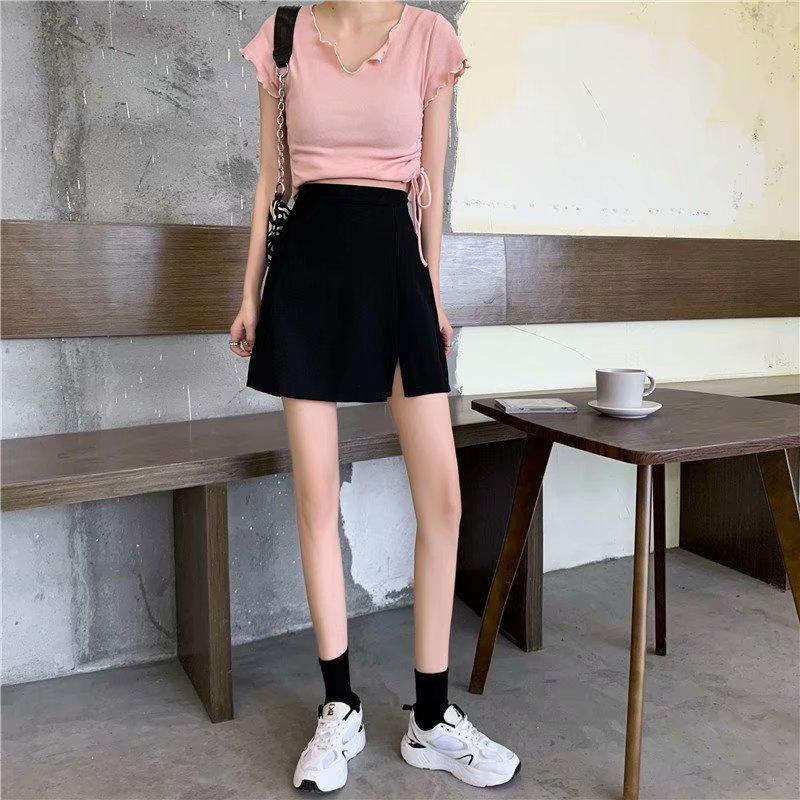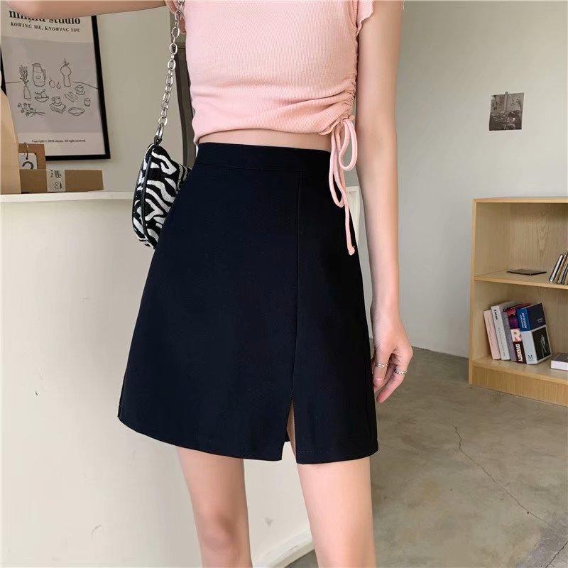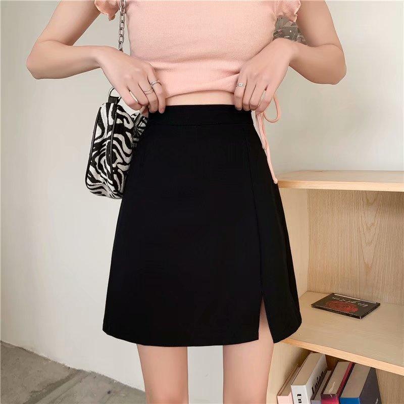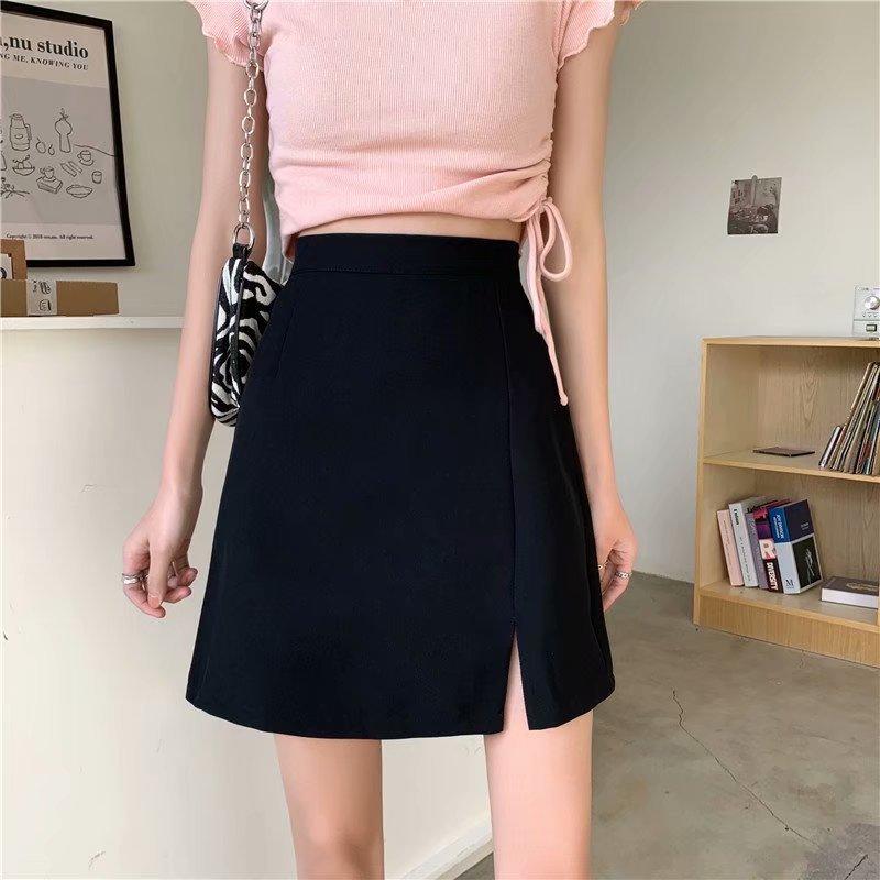 2025 Nueva Falda de Verano de Cintura Alta Corte A para Mujer Cubriendo el Tramo Primavera y Otoño Talla Grande Cubre Caderas Tela de Traje Falda Corta Negra