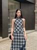 Interpretación de la Belleza Newopen 25 Otoño Retro Chaleco sin Mangas a Cuadros Cuello Alto Camiseta Interior Pequeña F6016