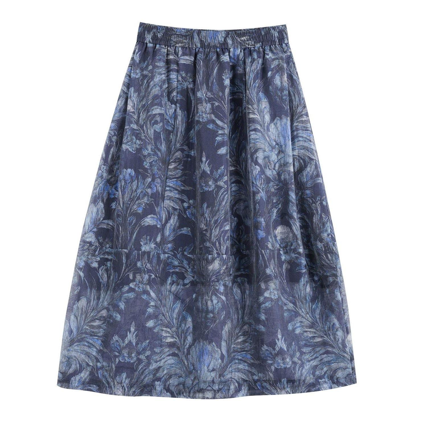 Falda Midi A-line Adelgazante de Malla Iris Moda Francesa Verano 2025 Falda Estampada Versátil A5273