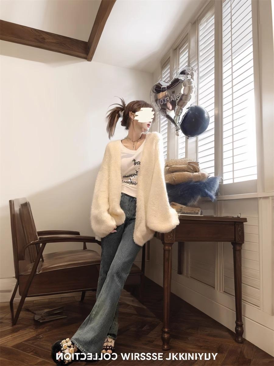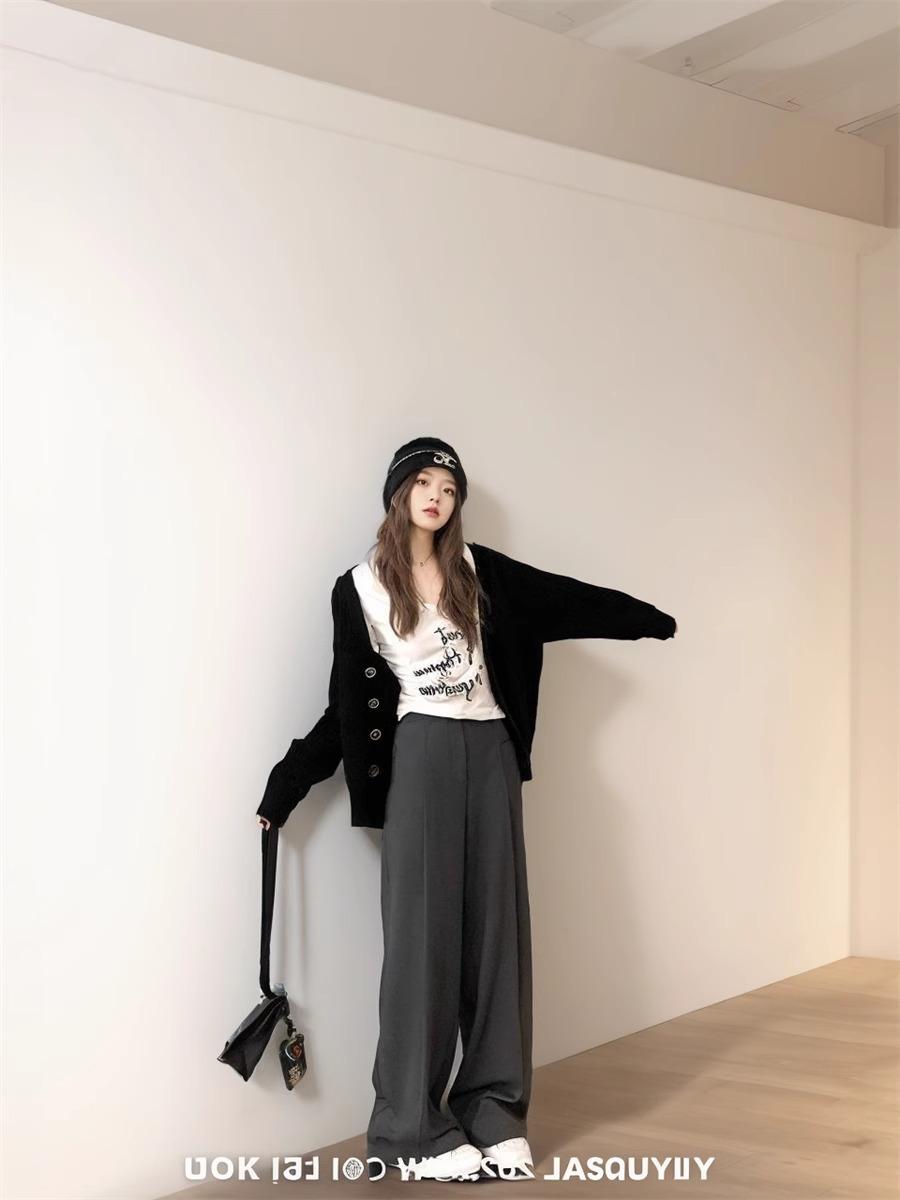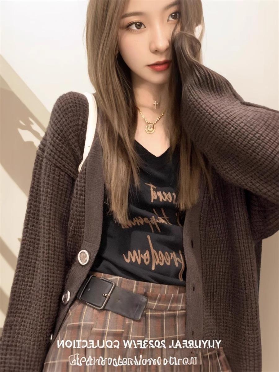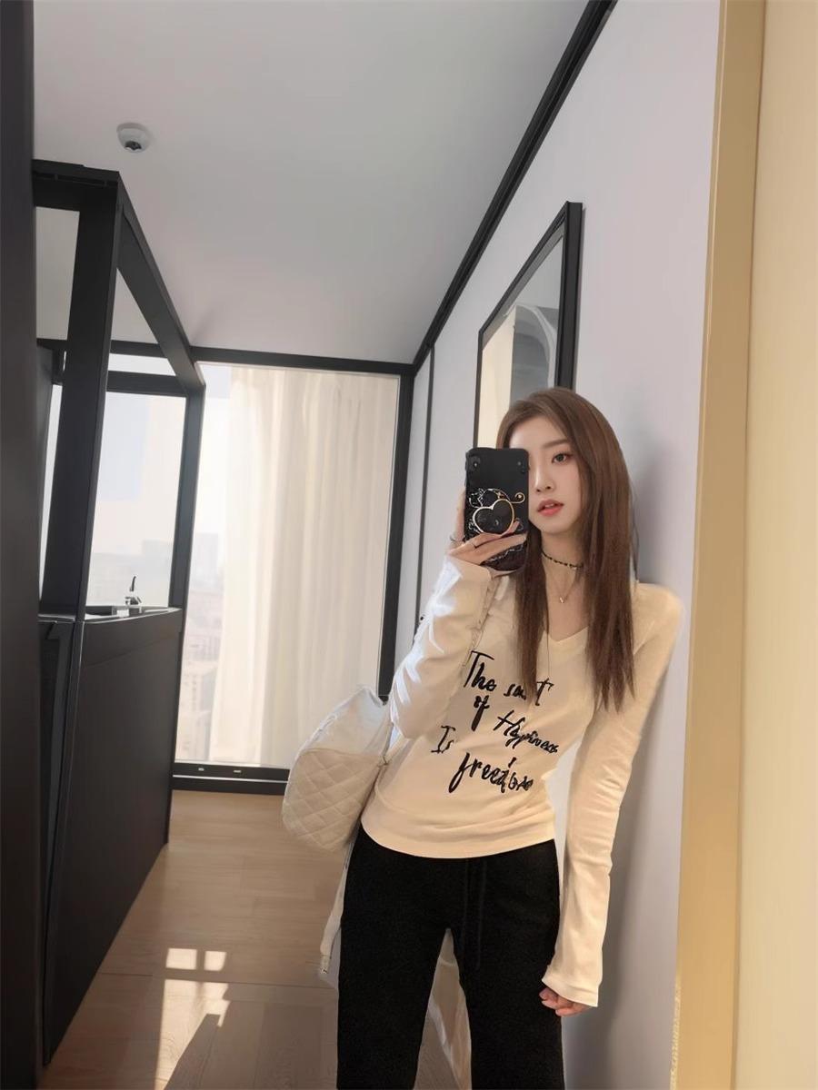 Diseño Flocado Letra Cuello en V Camiseta Base Mujer Primavera 2025 Estilo Americano Retro Camiseta Manga Larga Top Interior Spice Girls