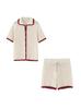 Comercio Exterior Transfronterizo 2025 Nueva Ropa de Mujer Cómodo Casual Bloque de Color Cárdigan de Punto Cuello Polo Manga Corta Top Shorts