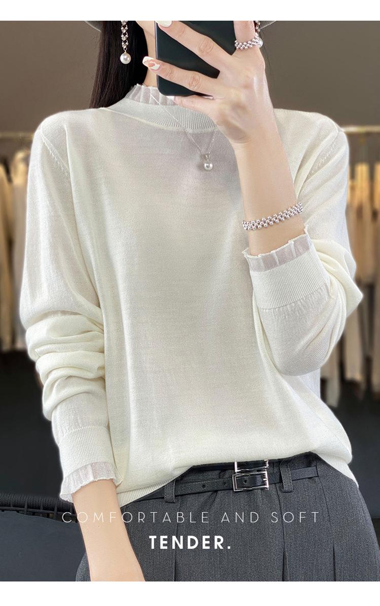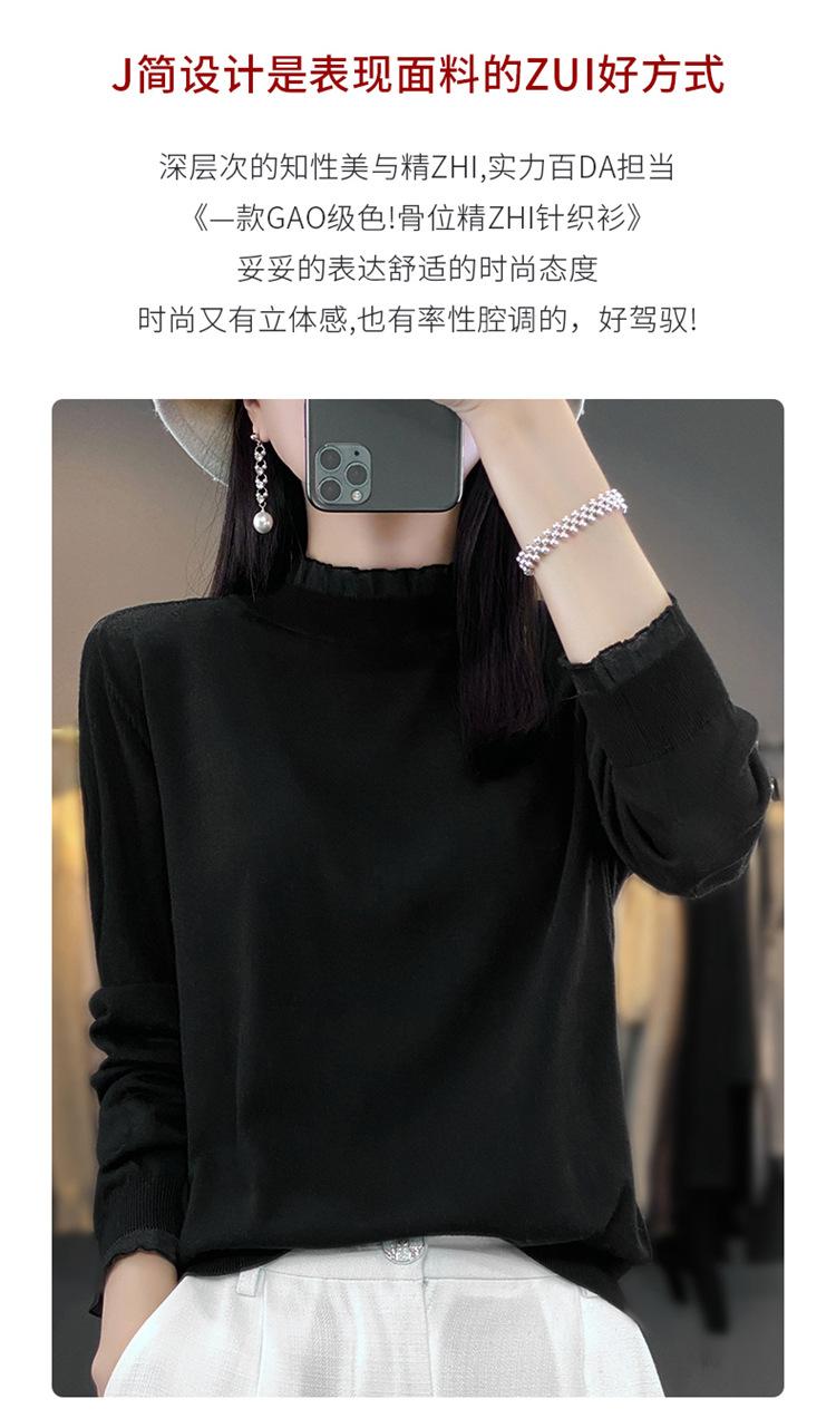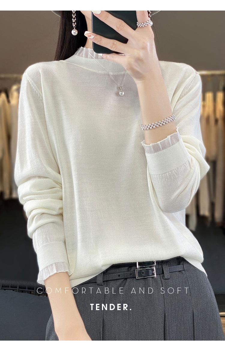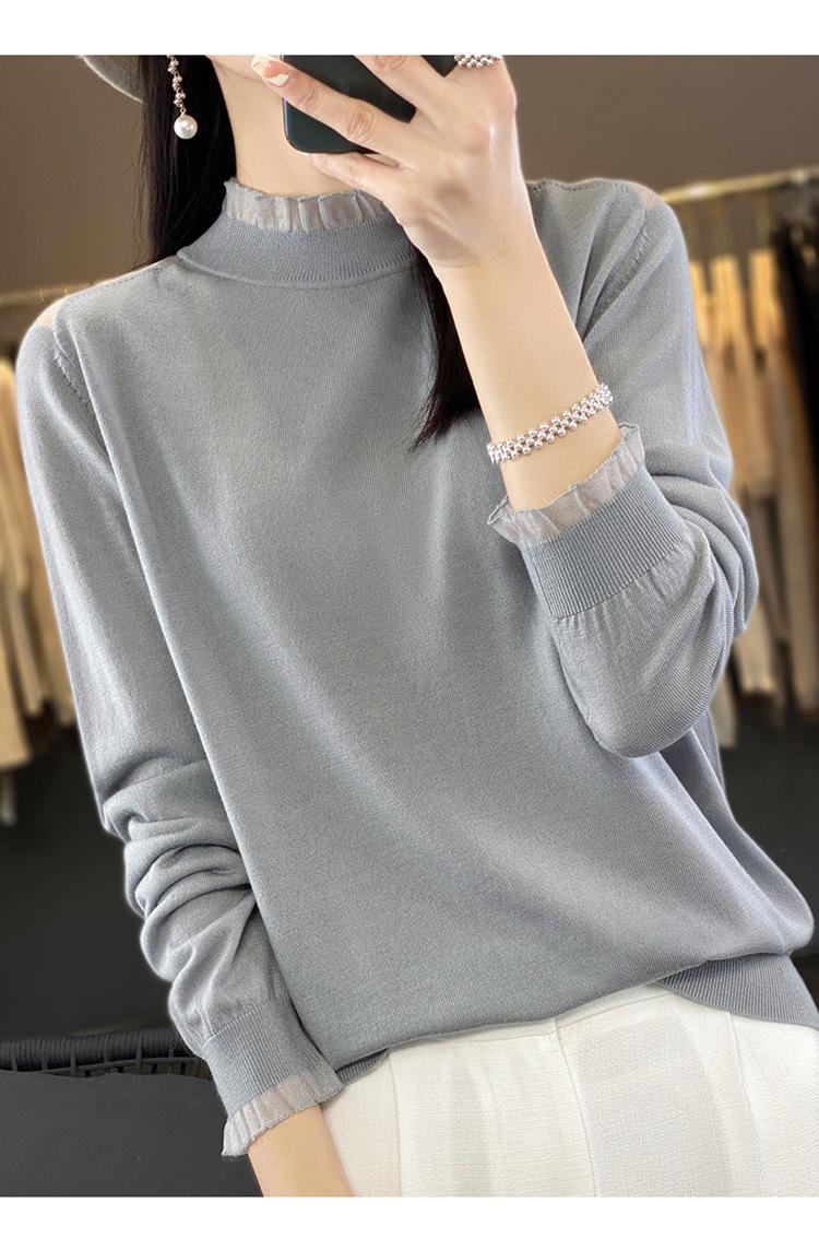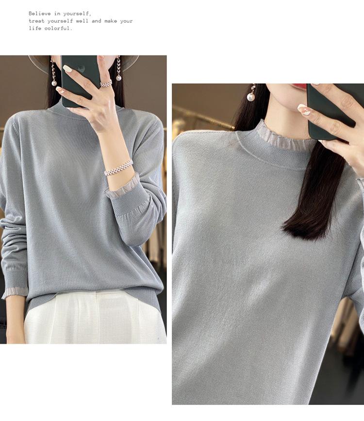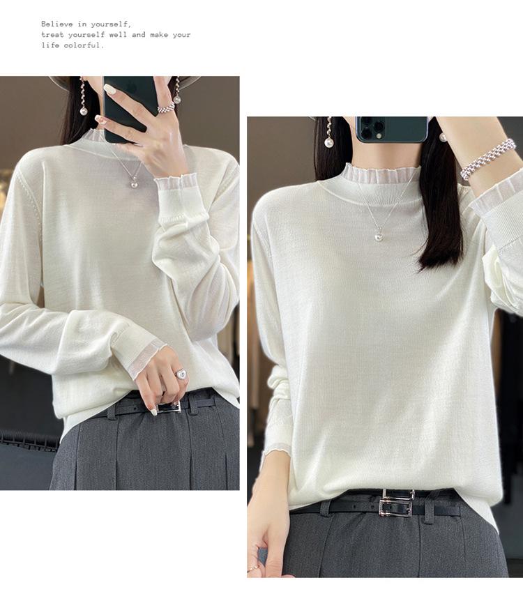 Otoño Temprano 2025 Nueva Prendas de Punto de Lana Peinada Cuello Medio Alto Encaje de Hongo Suéter Holgado Prendas de Punto Aspecto Adelgazante